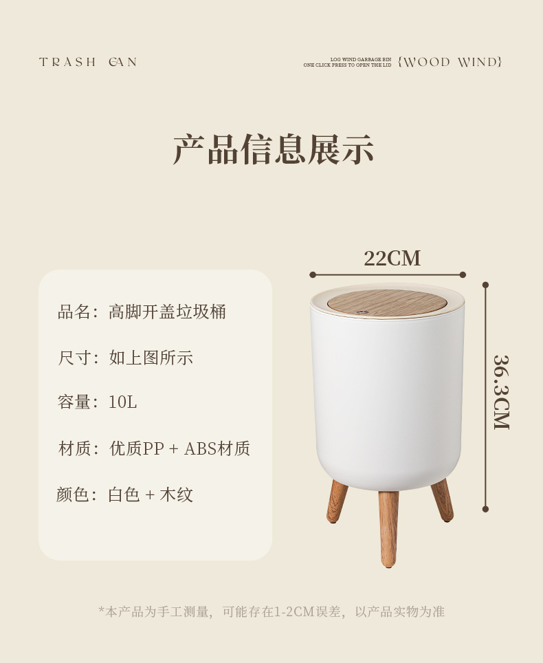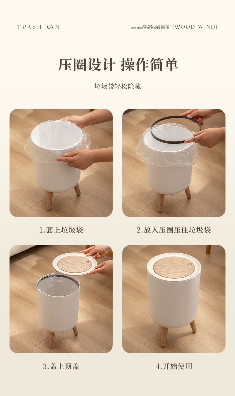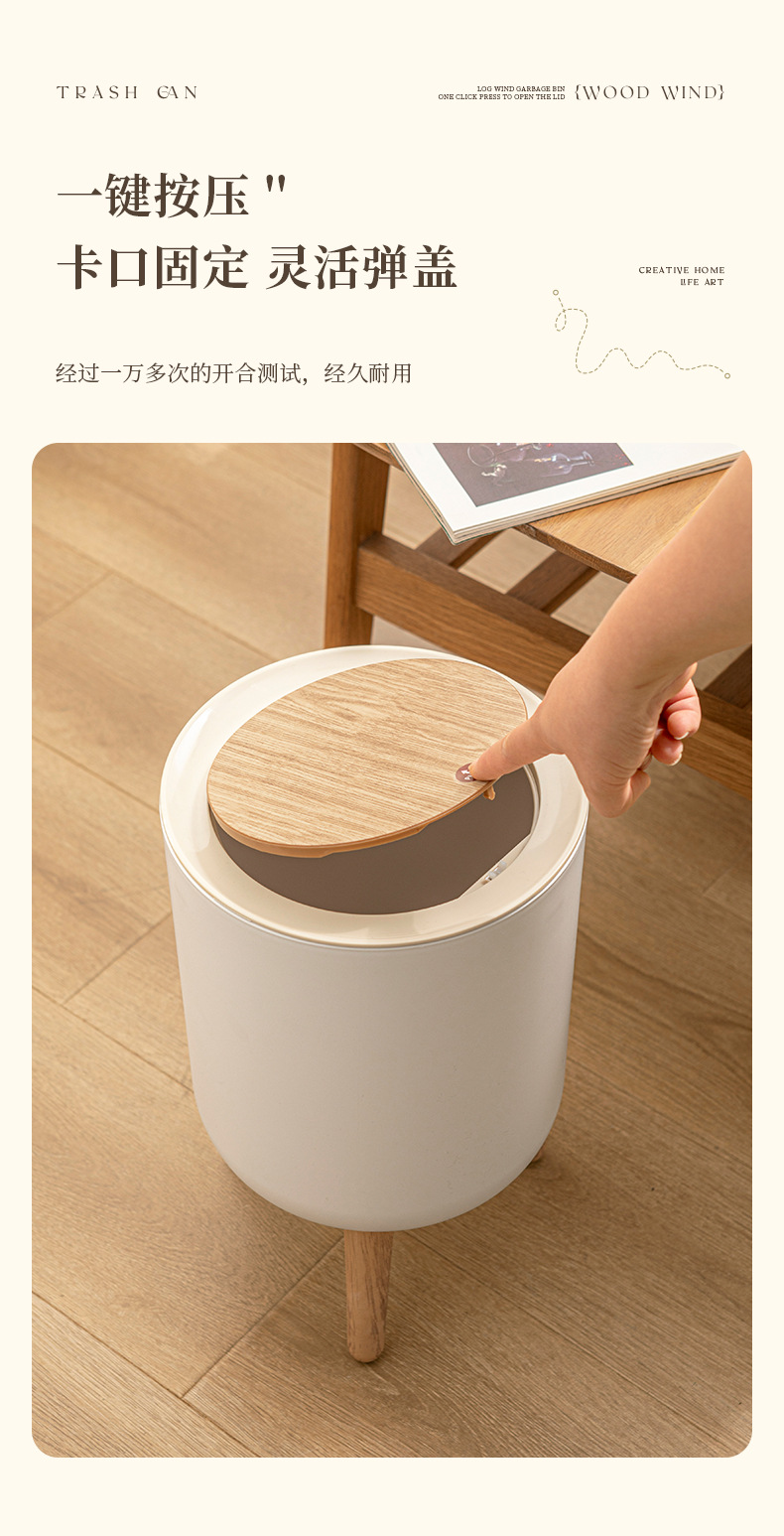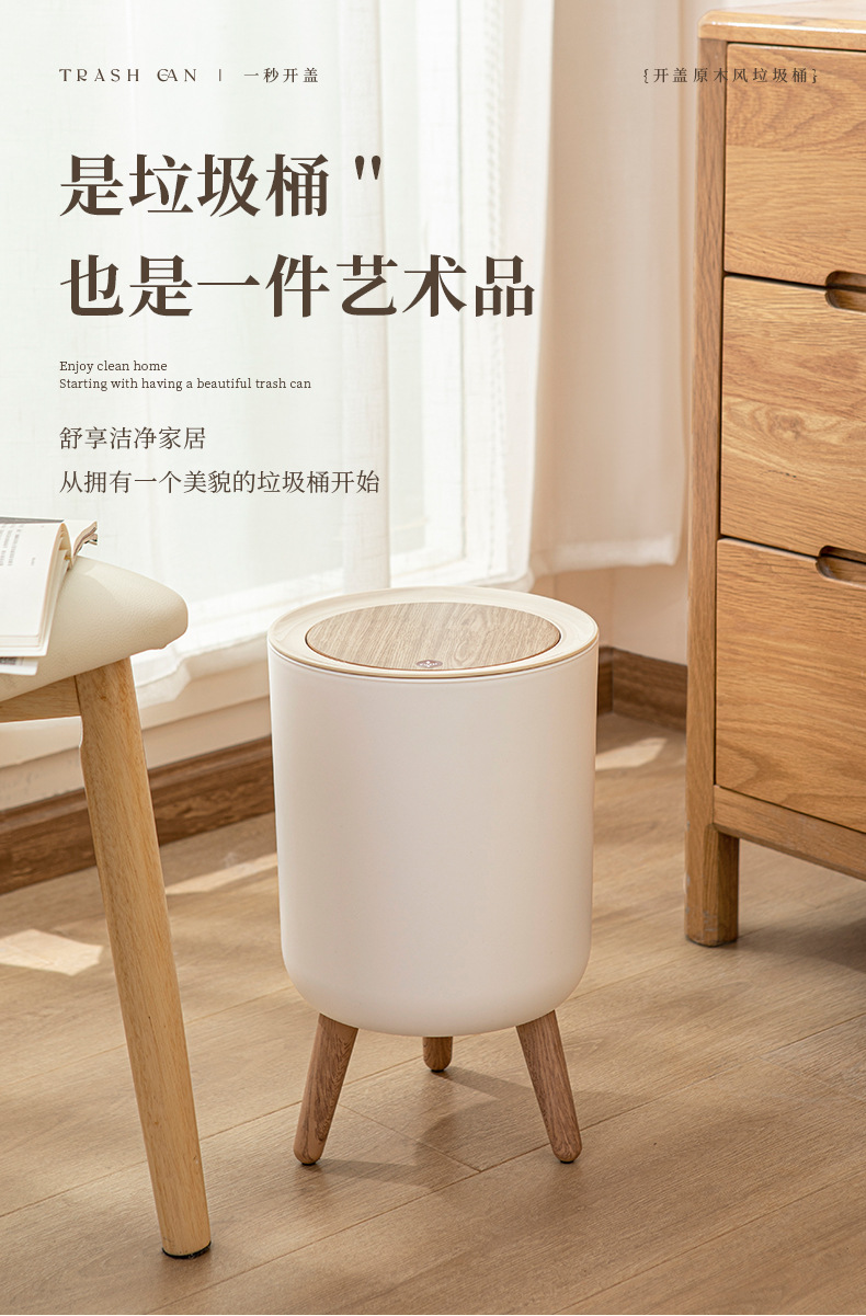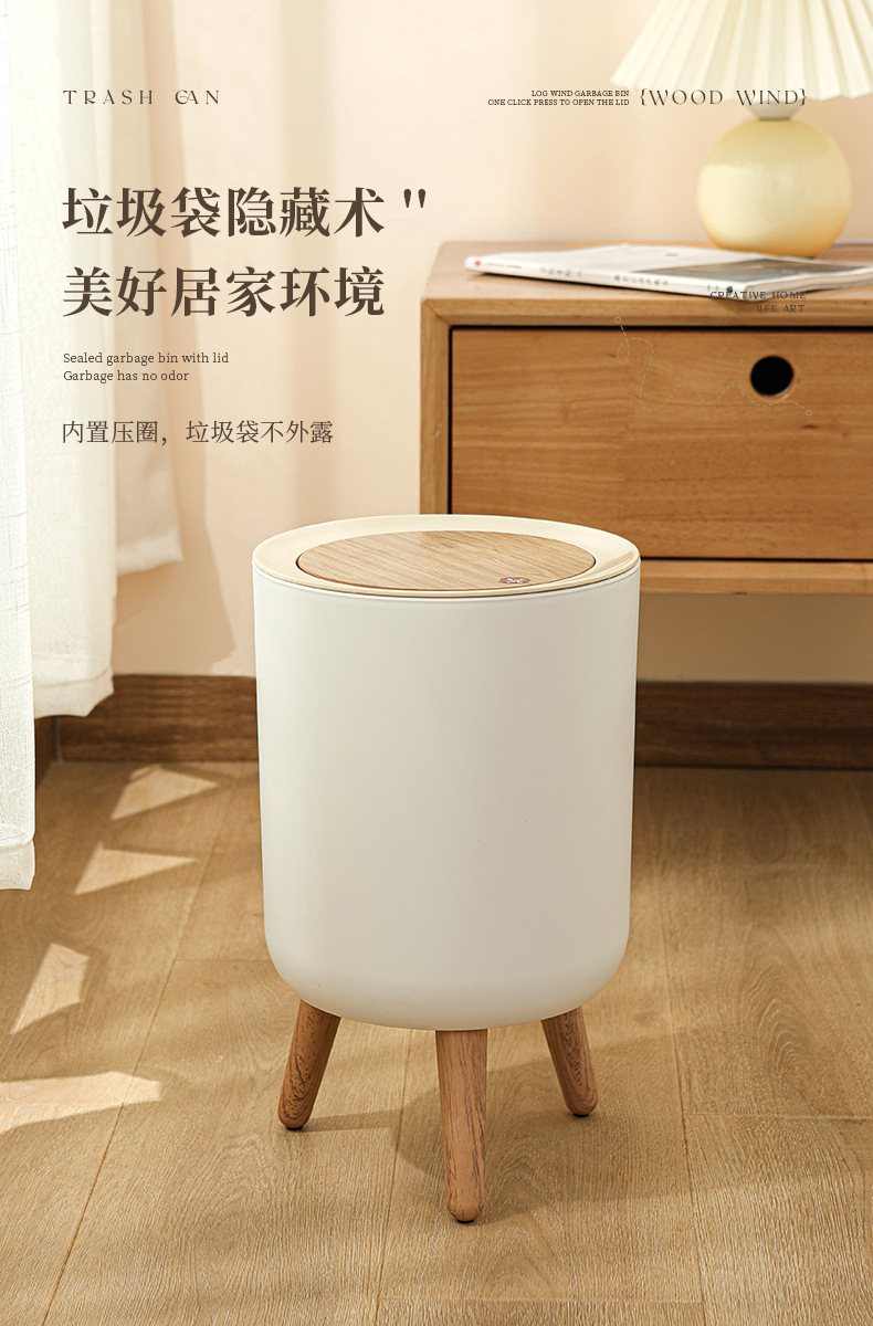 家用高级感垃圾桶客厅高脚带盖按压式垃圾桶卧室桌面创意风收纳桶