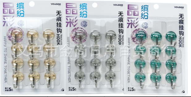 水晶图案多功能自粘式厨房浴室免钉简约创意粘钩批发出售
