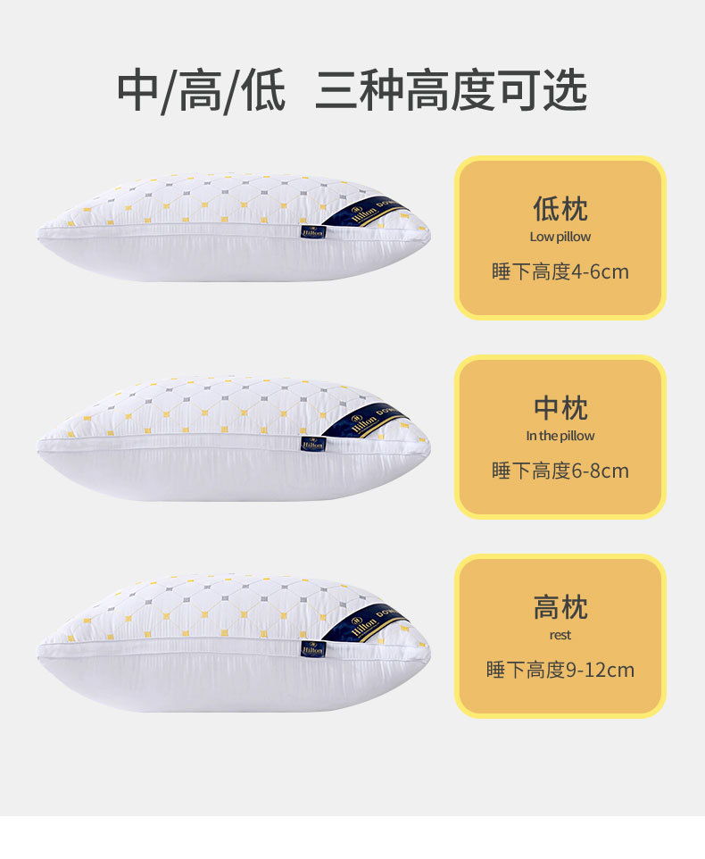 厂家批发五星级酒店枕芯满天星单人护颈椎家用羽丝绒低高枕头礼品