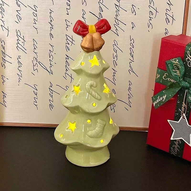 圣诞节礼物陶瓷透光圣诞树夜灯可爱陶瓷星星圣诞树小夜灯装饰摆件