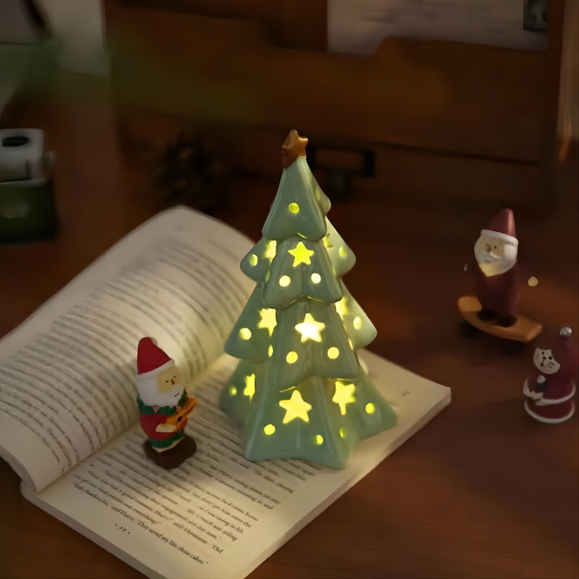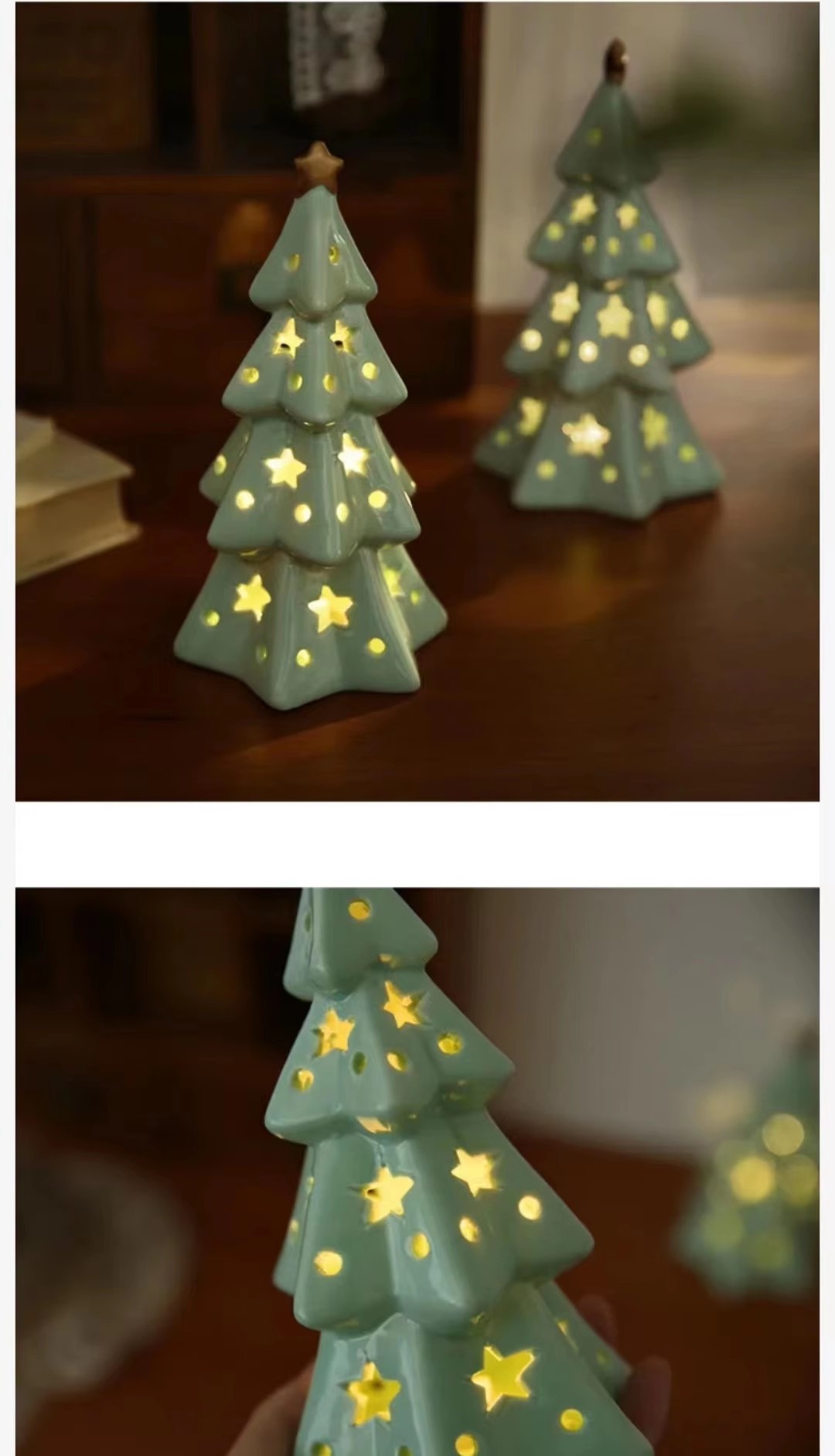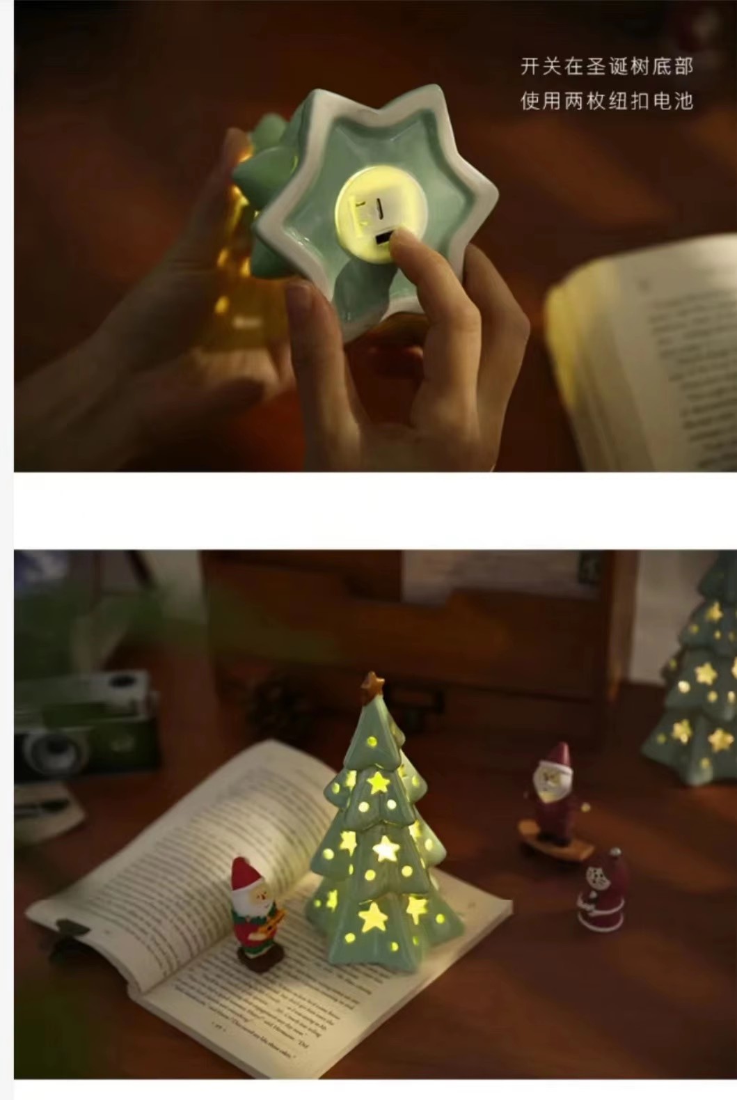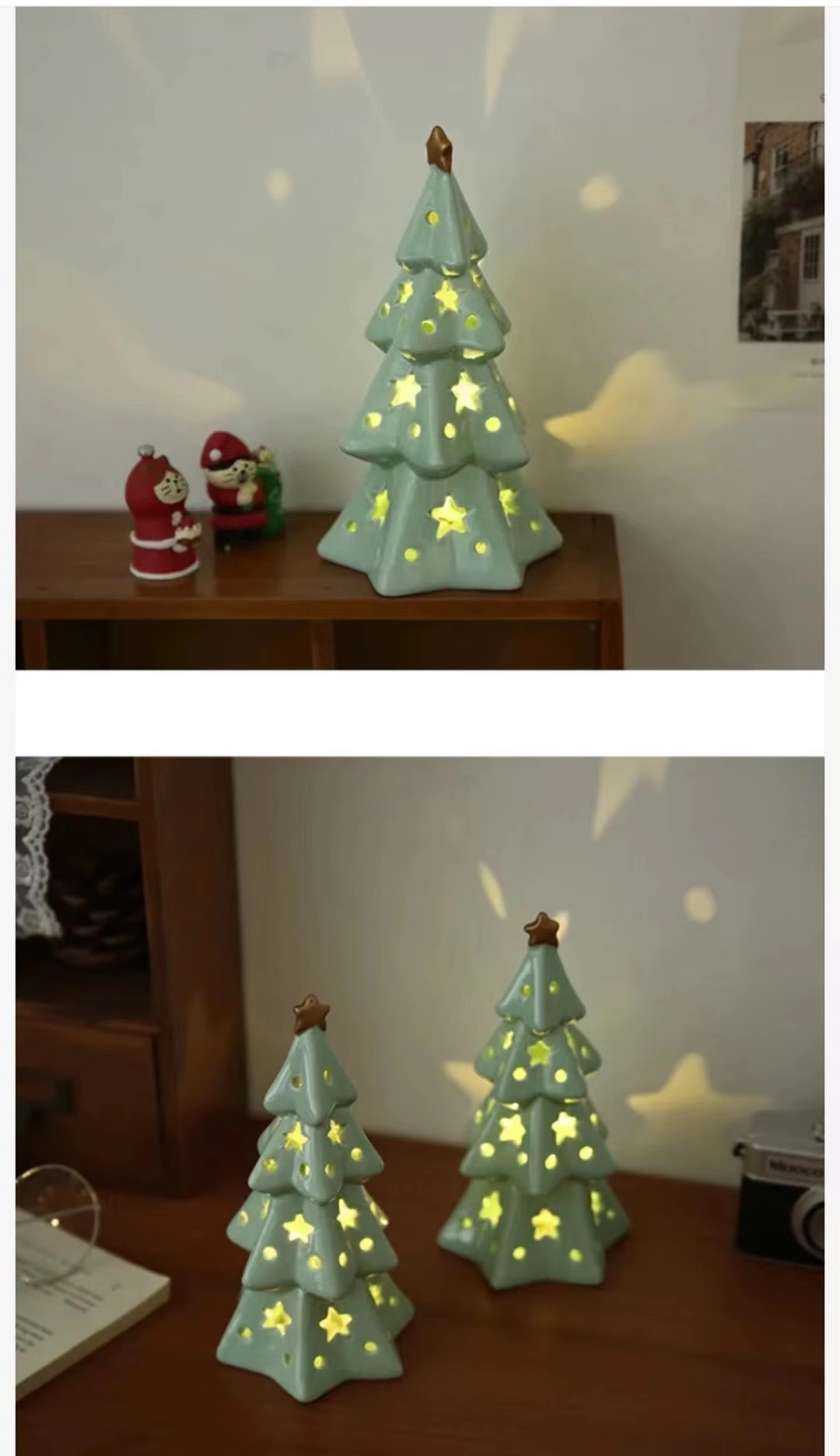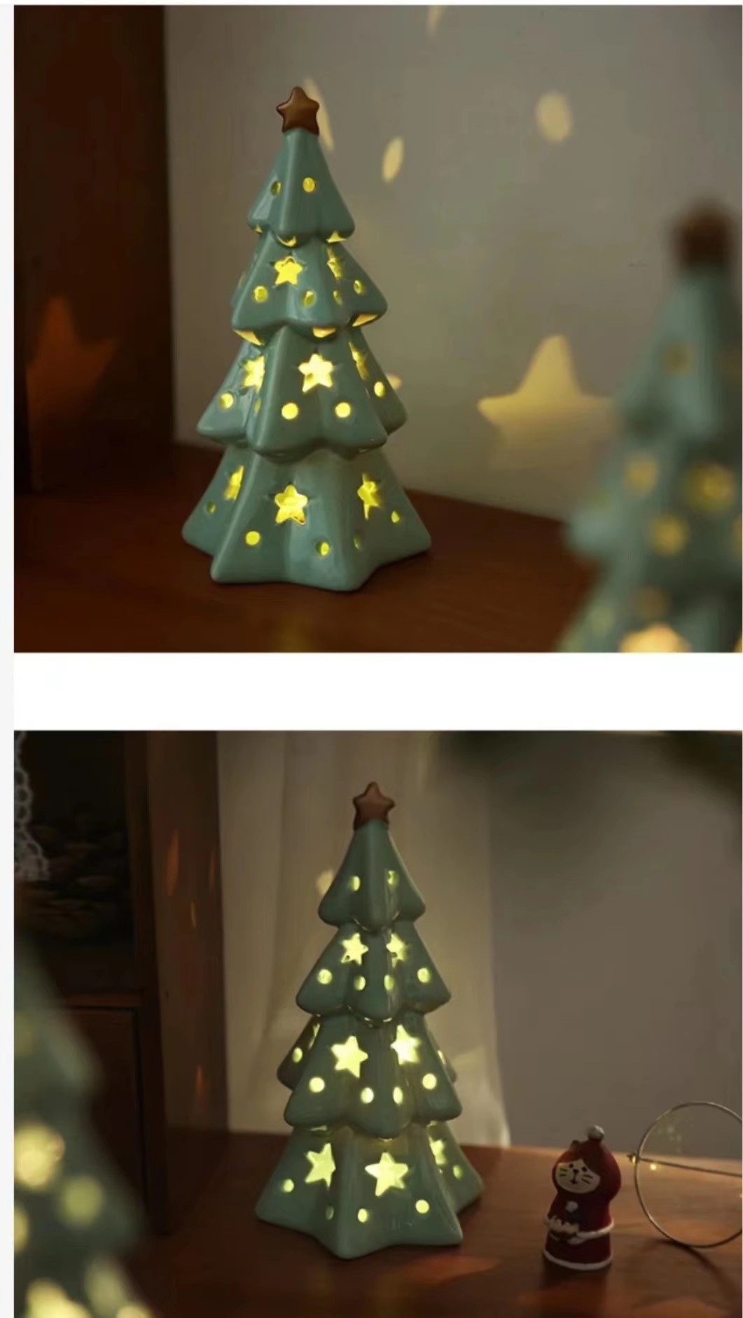 圣诞节可爱陶瓷星星圣诞树小夜灯卧室桌面装饰摆件氛围灯生日礼物