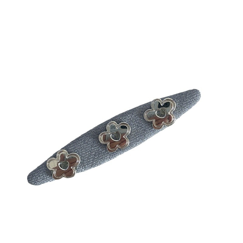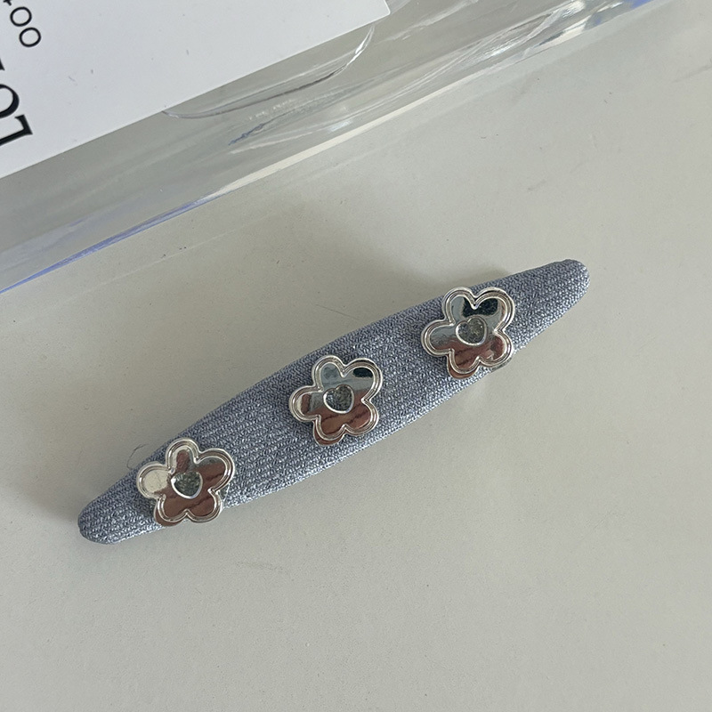 设计感镜面花牛仔蓝发夹一字夹小众文艺感优雅刘海夹新款侧边夹发
