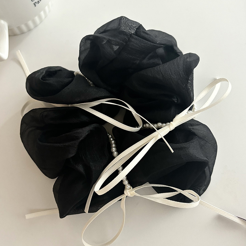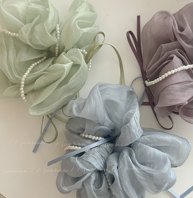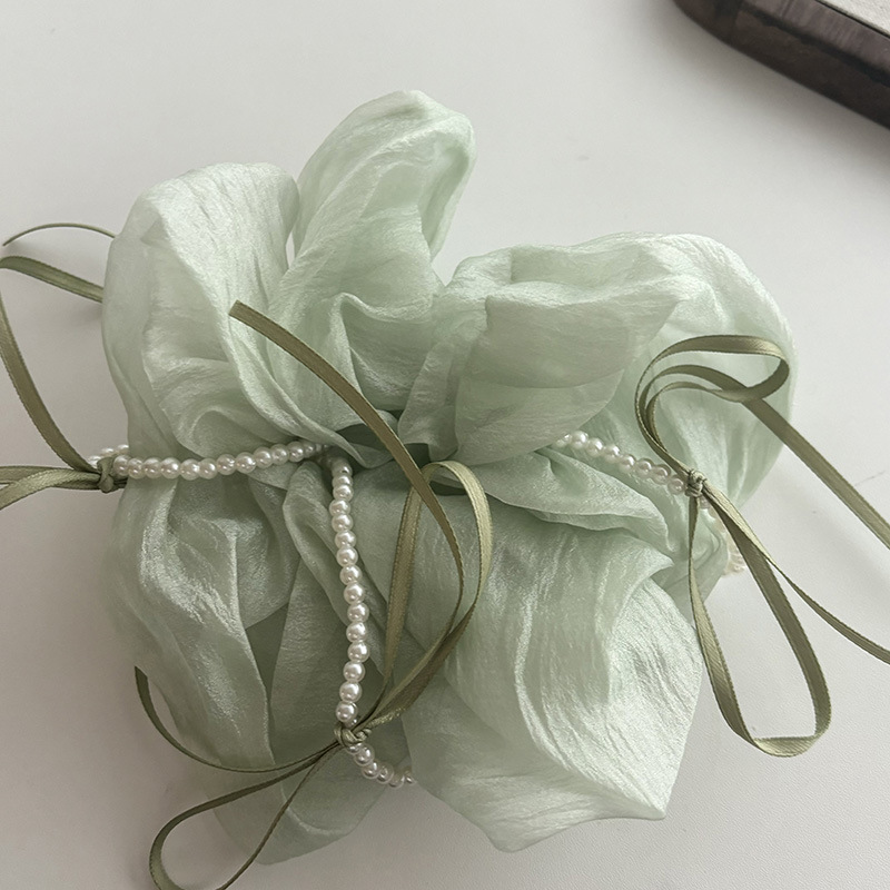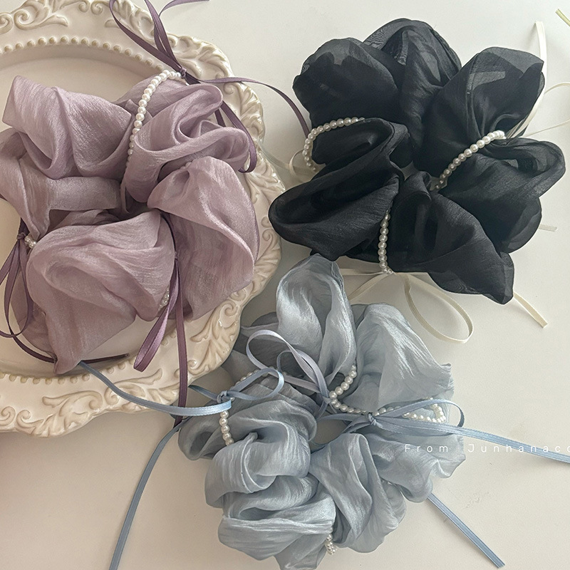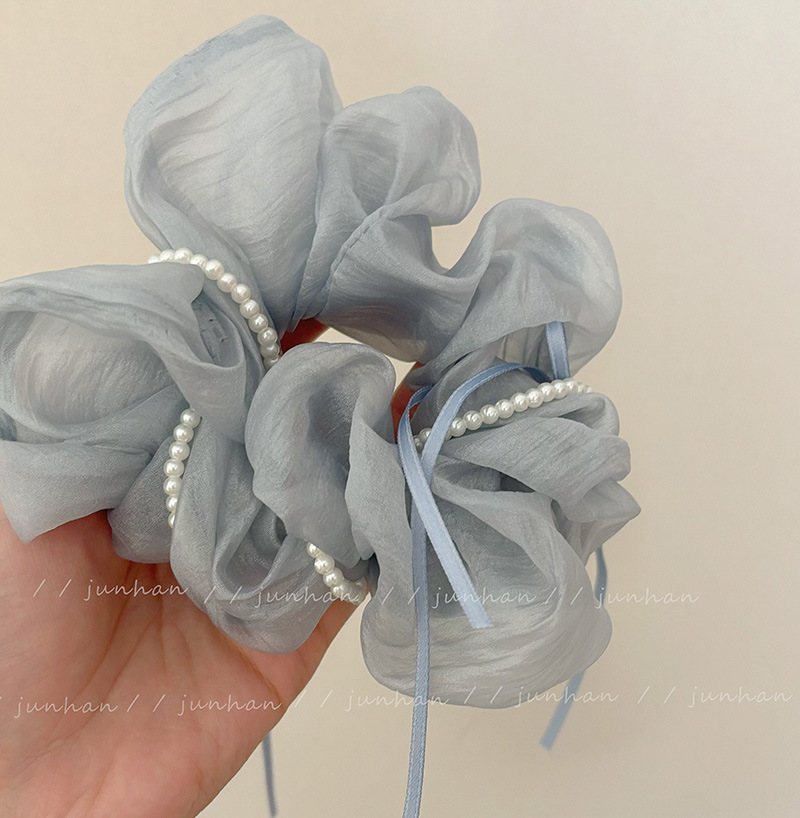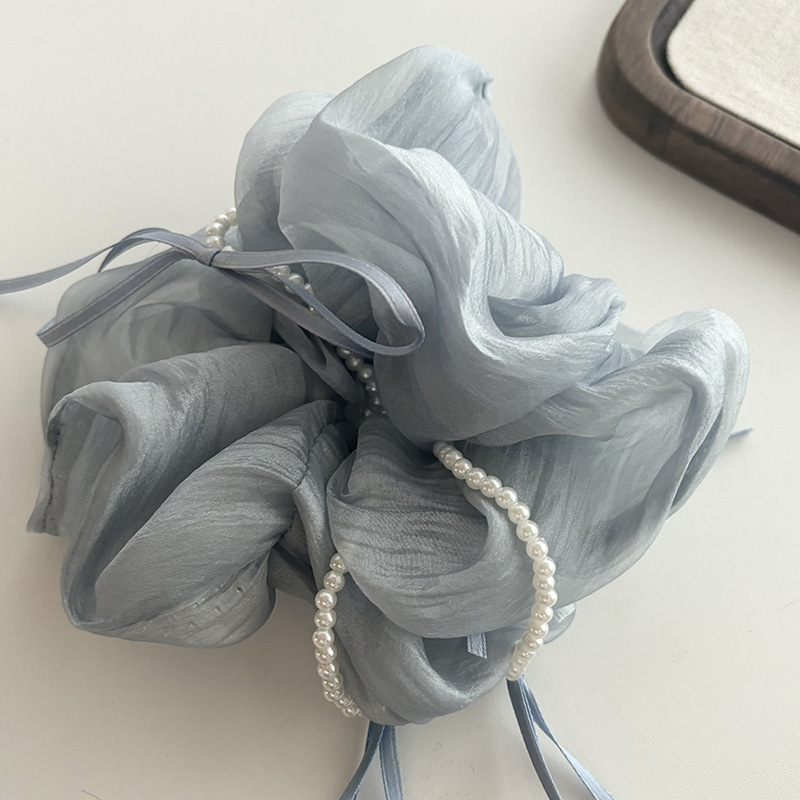 静谧星空蓝色蝴蝶结珍珠大肠发圈女高级感韩系缎面头绳发饰发饰