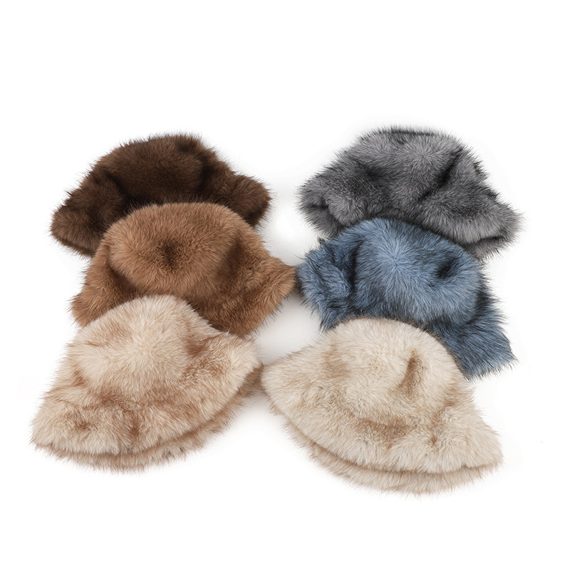秋冬仿貂帽子女韩版潮保暖貂皮草渔夫帽时尚轻奢长毛绒盆帽