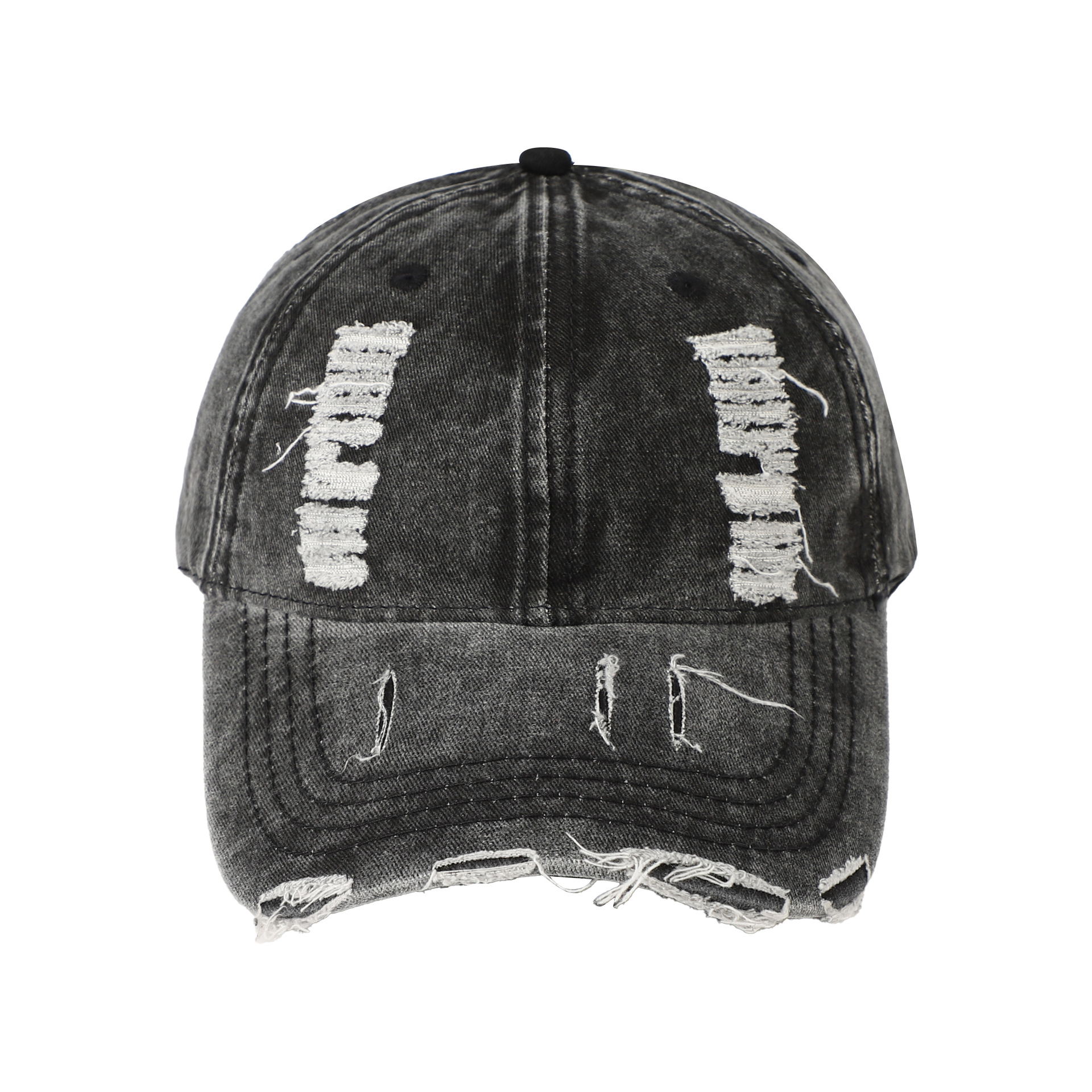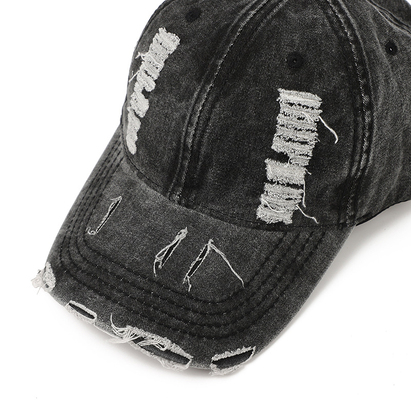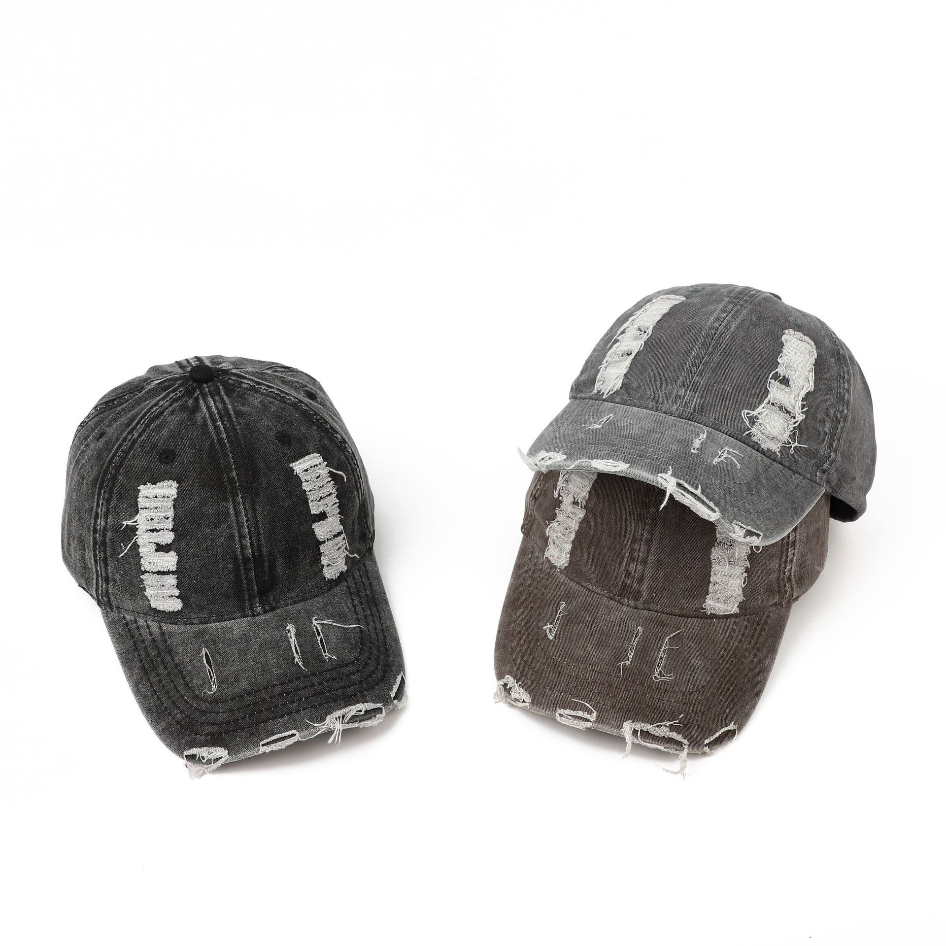欧美街头做旧破洞嘻哈棒球帽男女同款水洗牛仔布软顶鸭舌帽显脸小