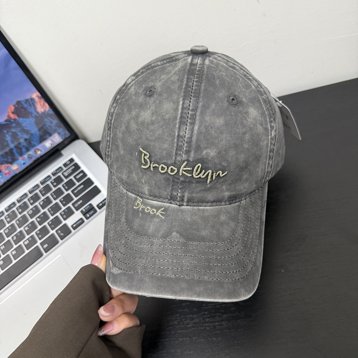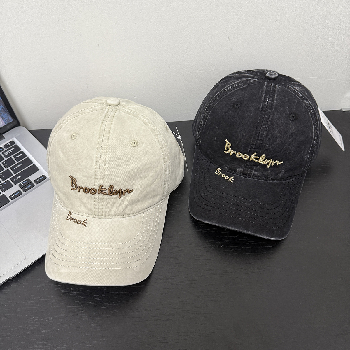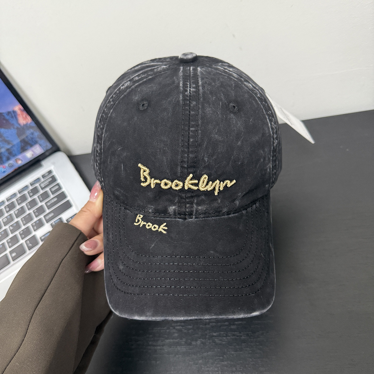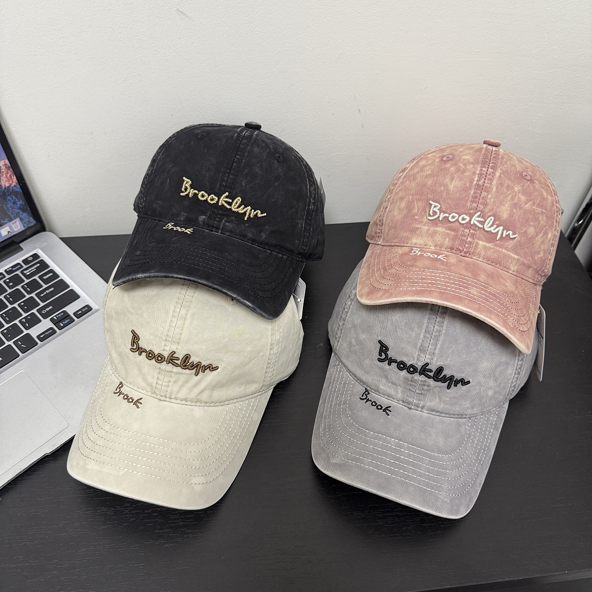 帽子美式复古水洗显脸小鸭舌帽牛仔棒球帽女韩版百搭宽帽檐大头围