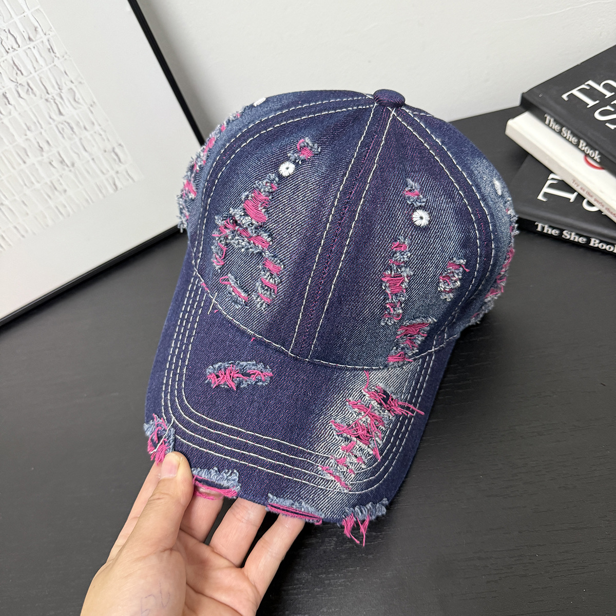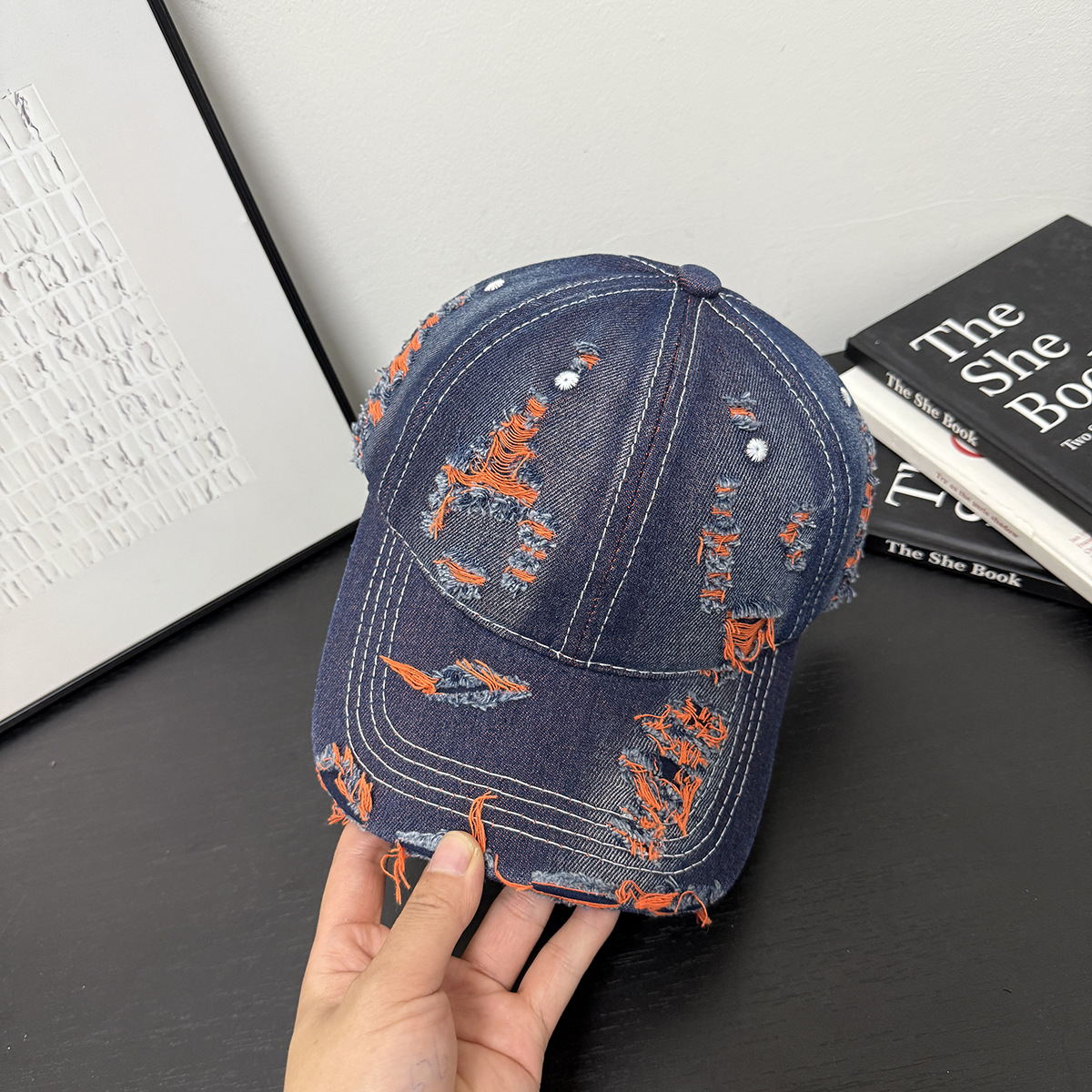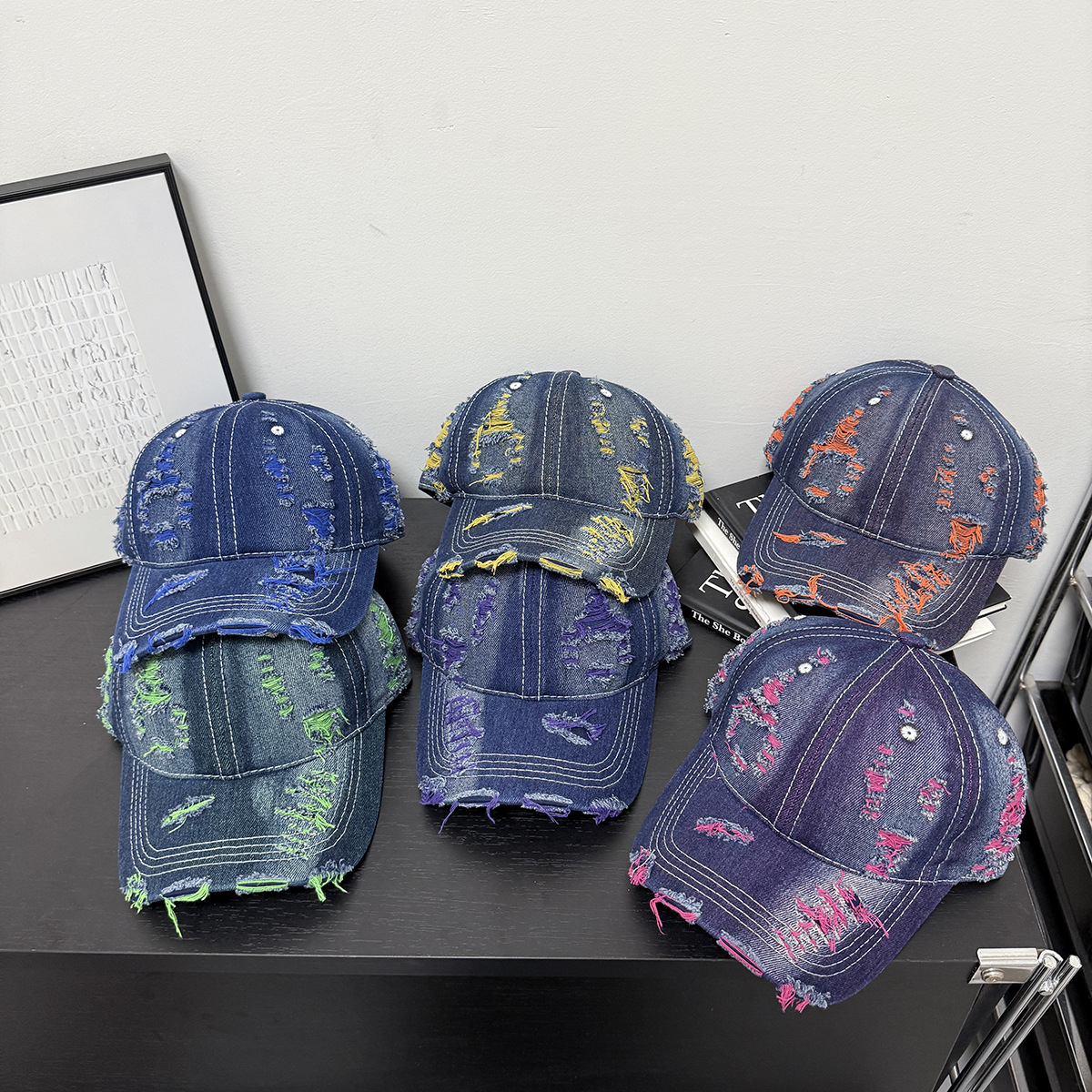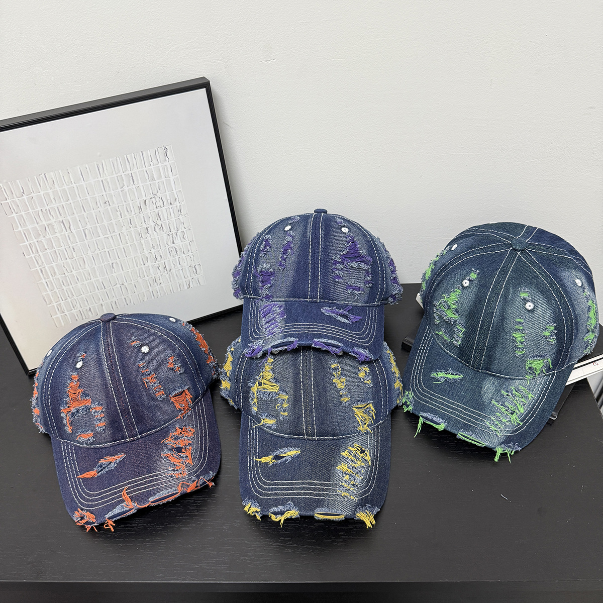 成人做旧破洞彩色牛仔个性可定制LOGO棒球帽男女新款鸭舌帽遮阳