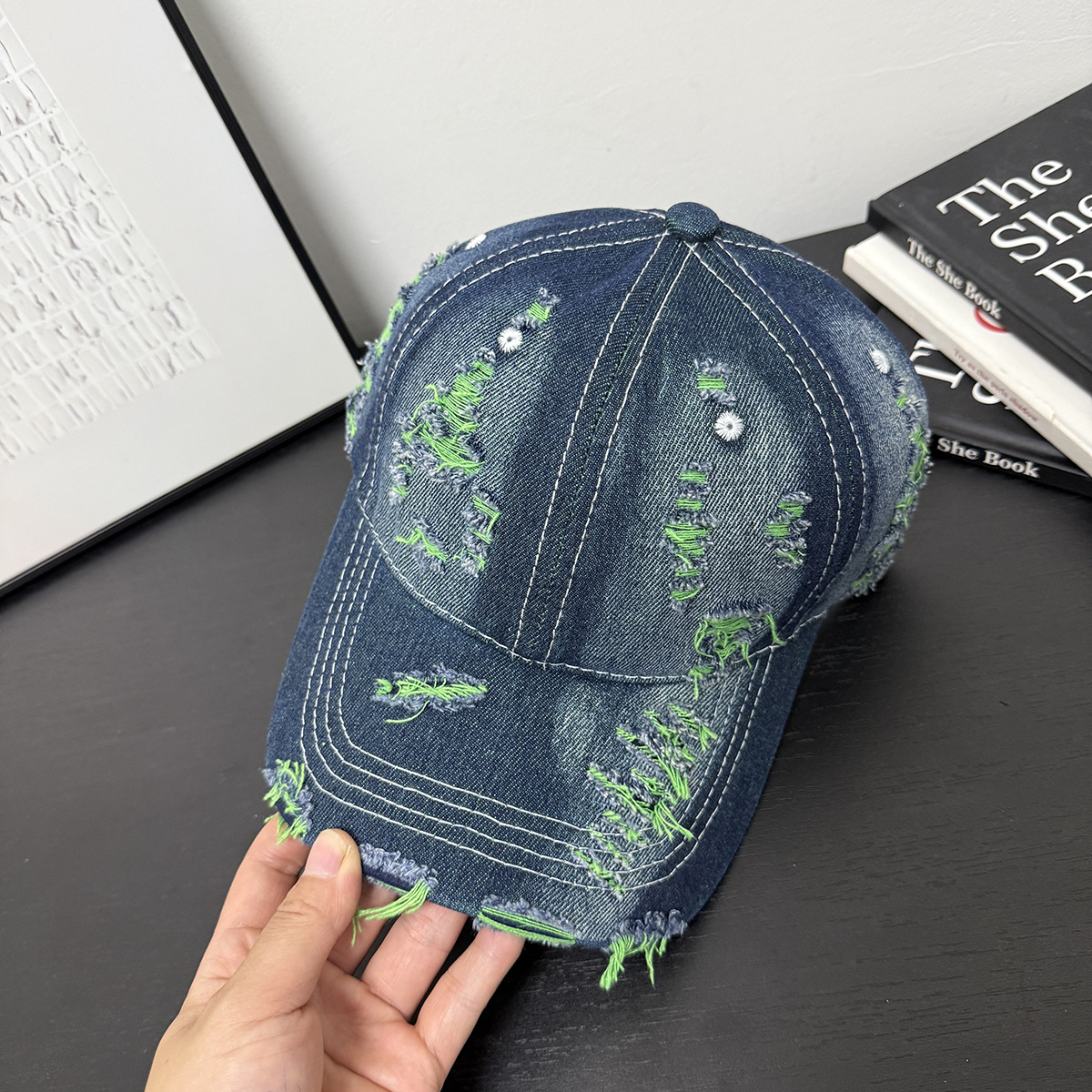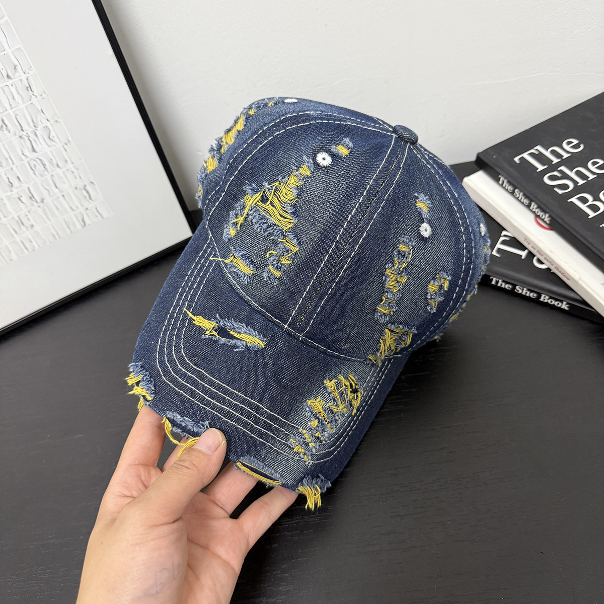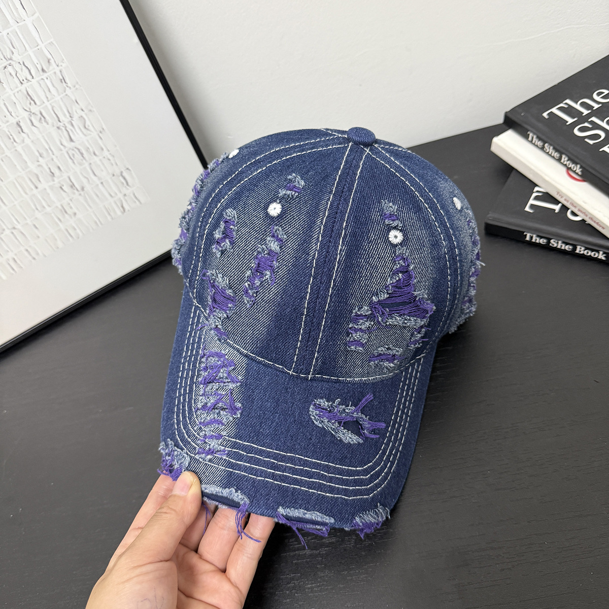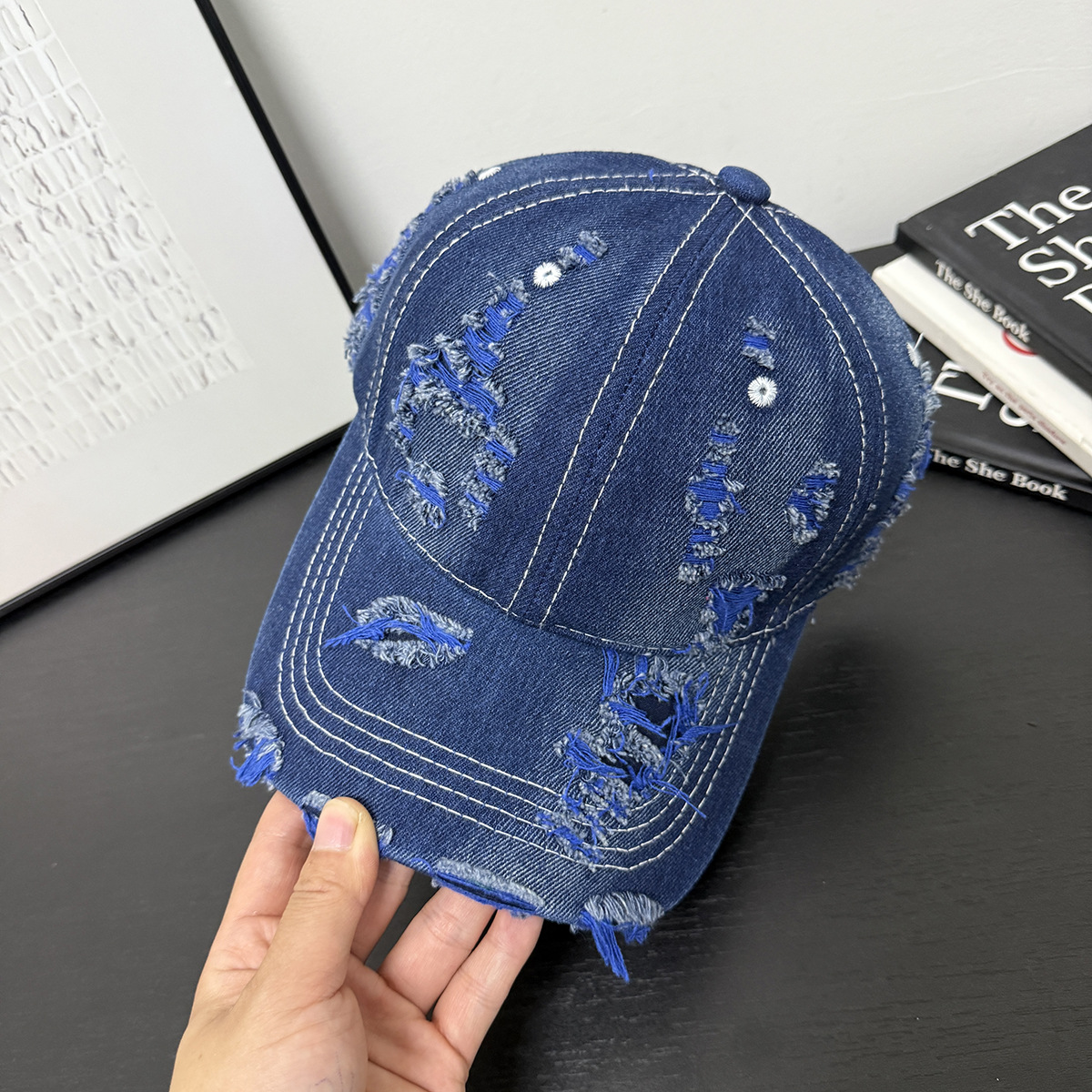成人做旧破洞彩色牛仔个性可定制LOGO棒球帽男女新款鸭舌帽遮阳