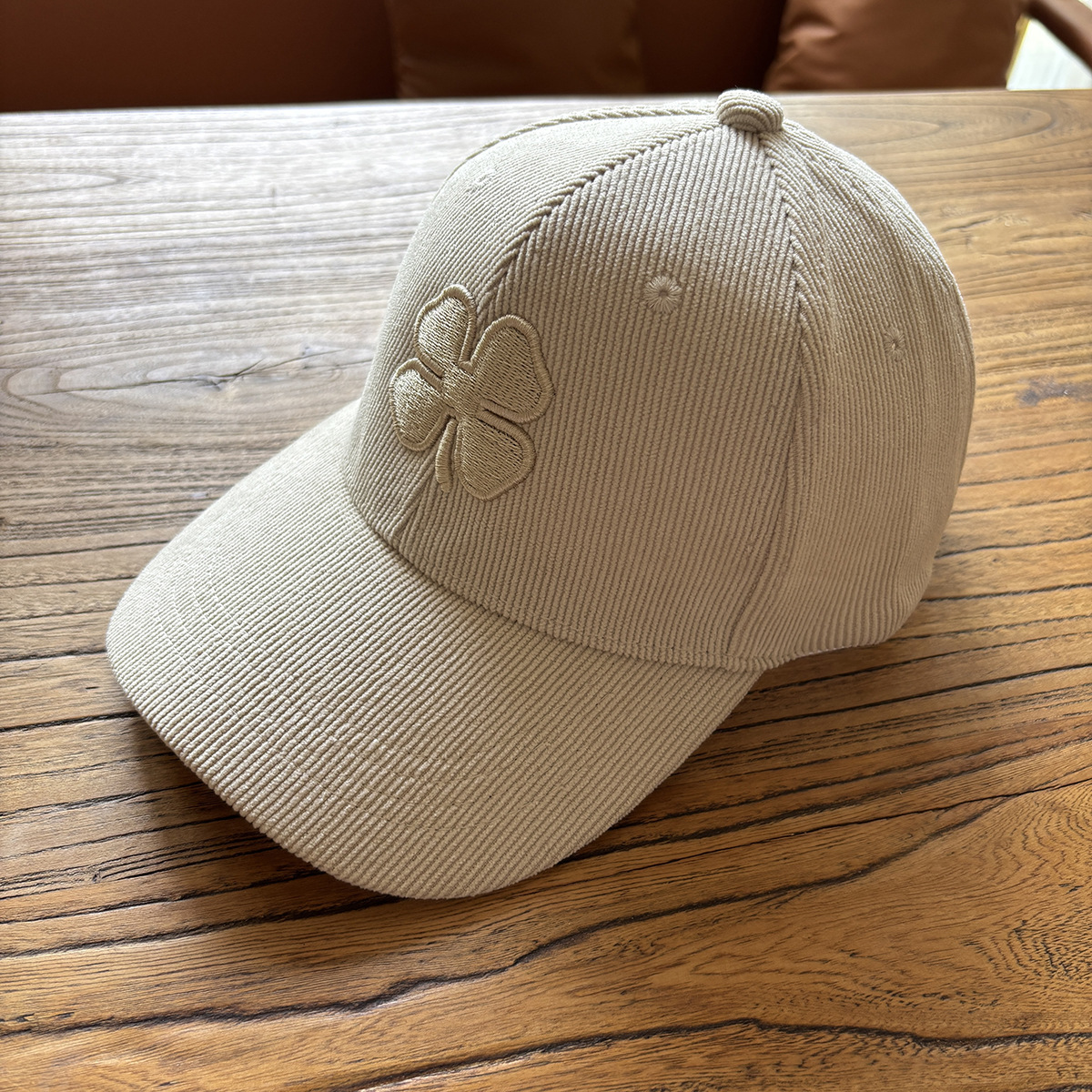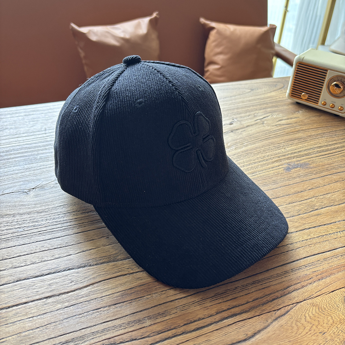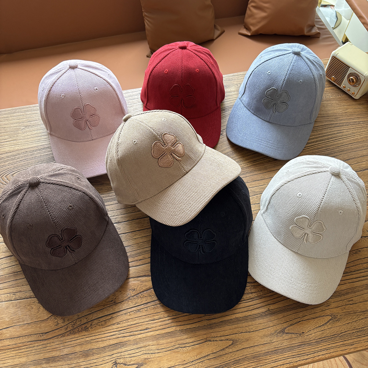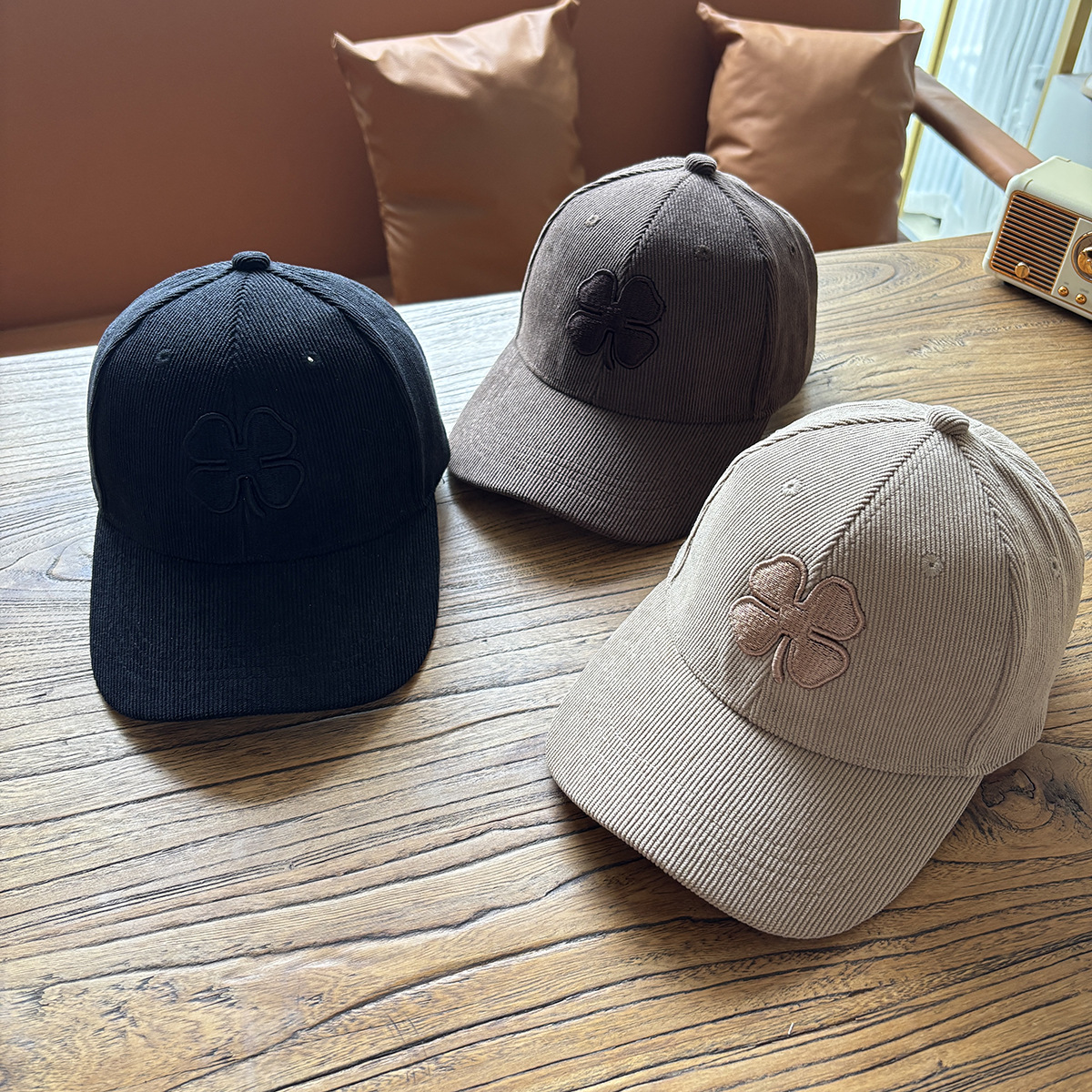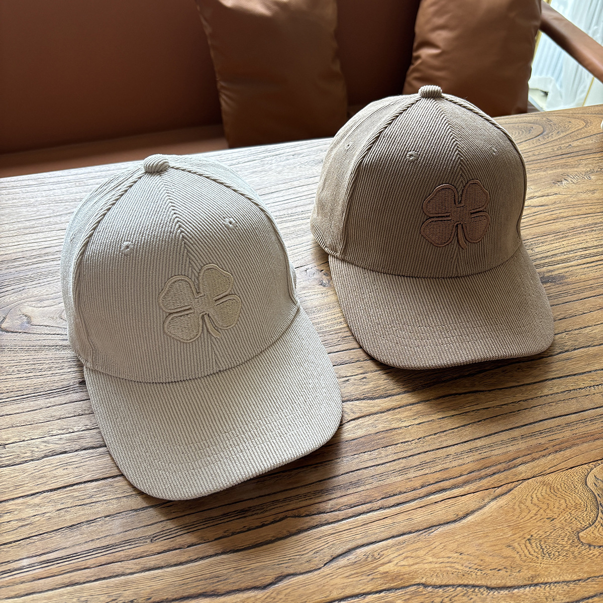 帽子秋冬欧美风亲子款幸运四叶草灯芯绒棒球帽硬顶刺绣鸭舌帽女