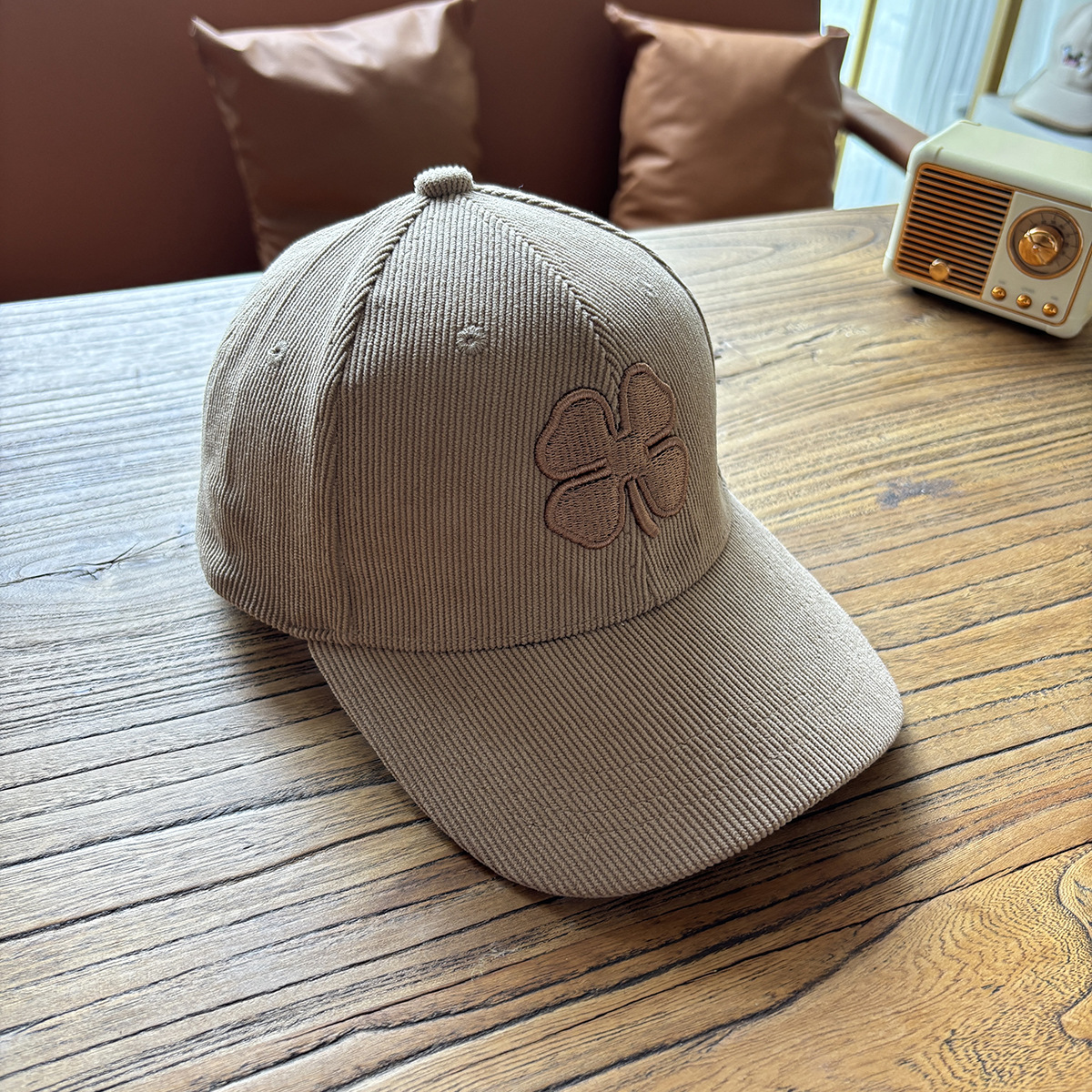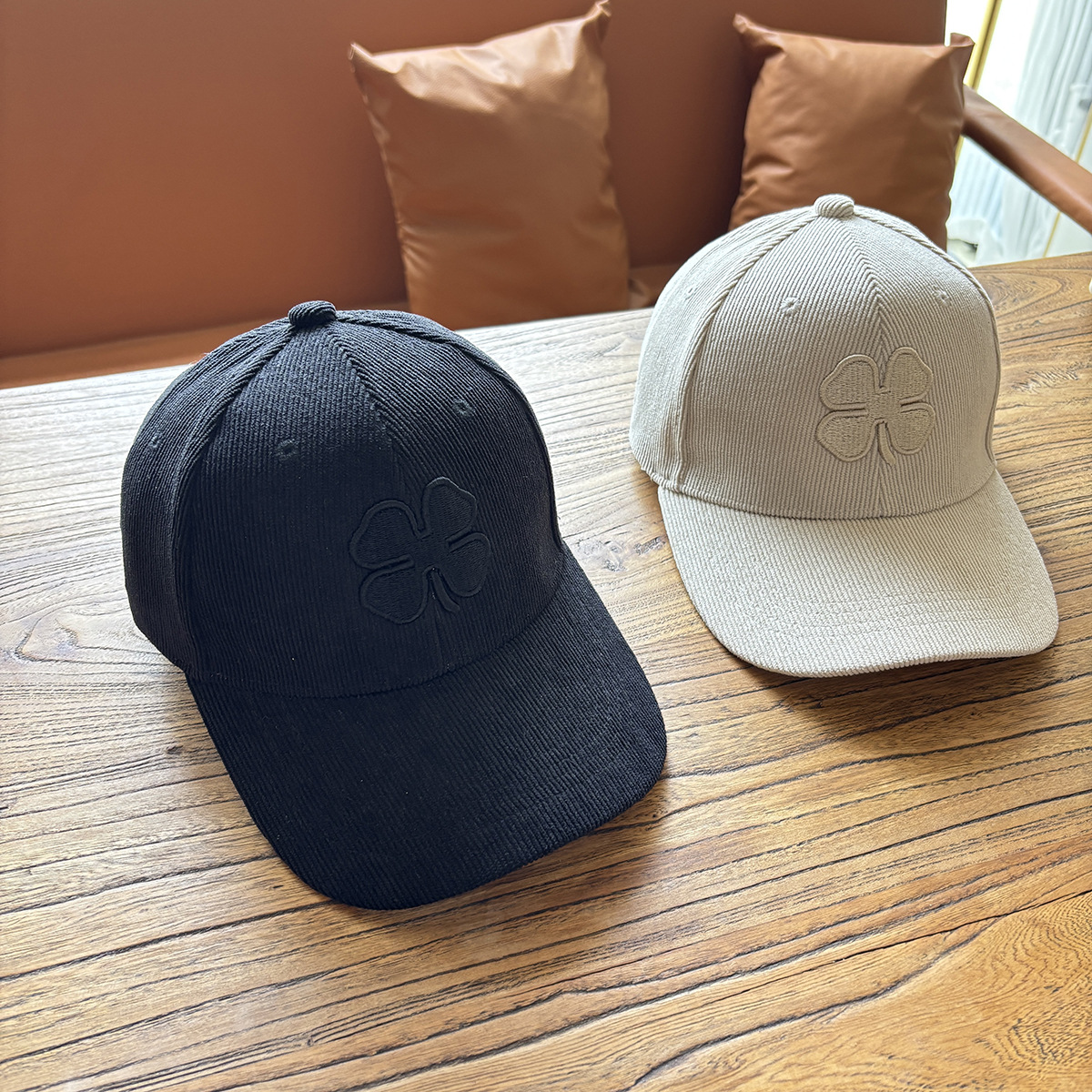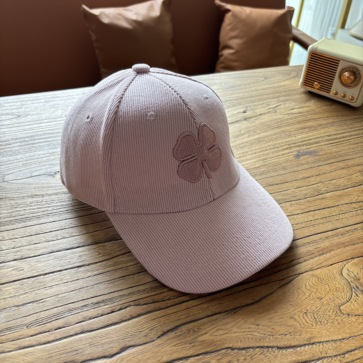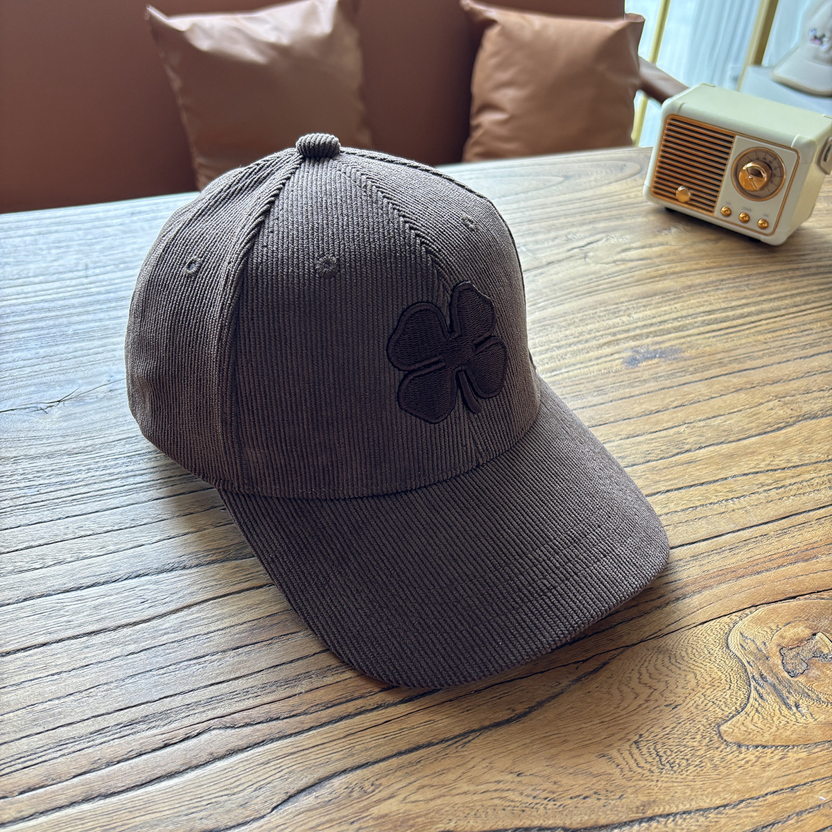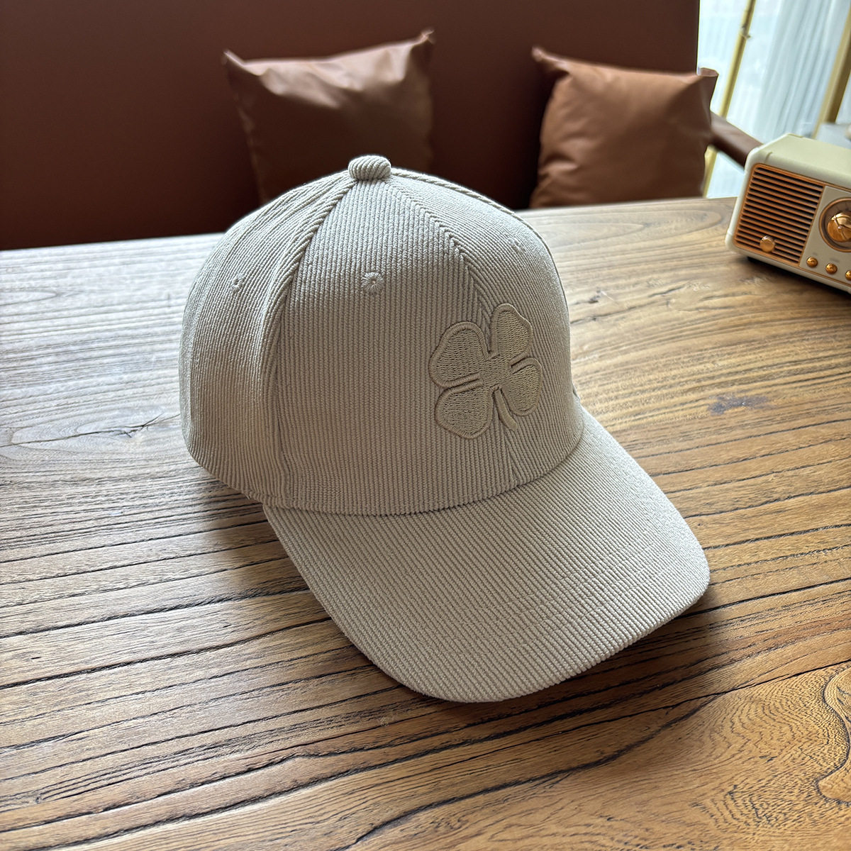帽子秋冬欧美风亲子款幸运四叶草灯芯绒棒球帽硬顶刺绣鸭舌帽女