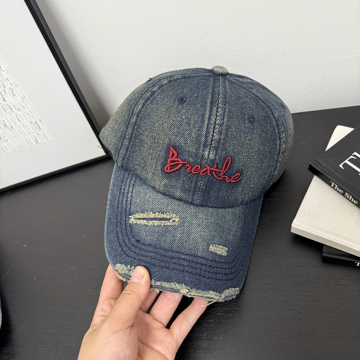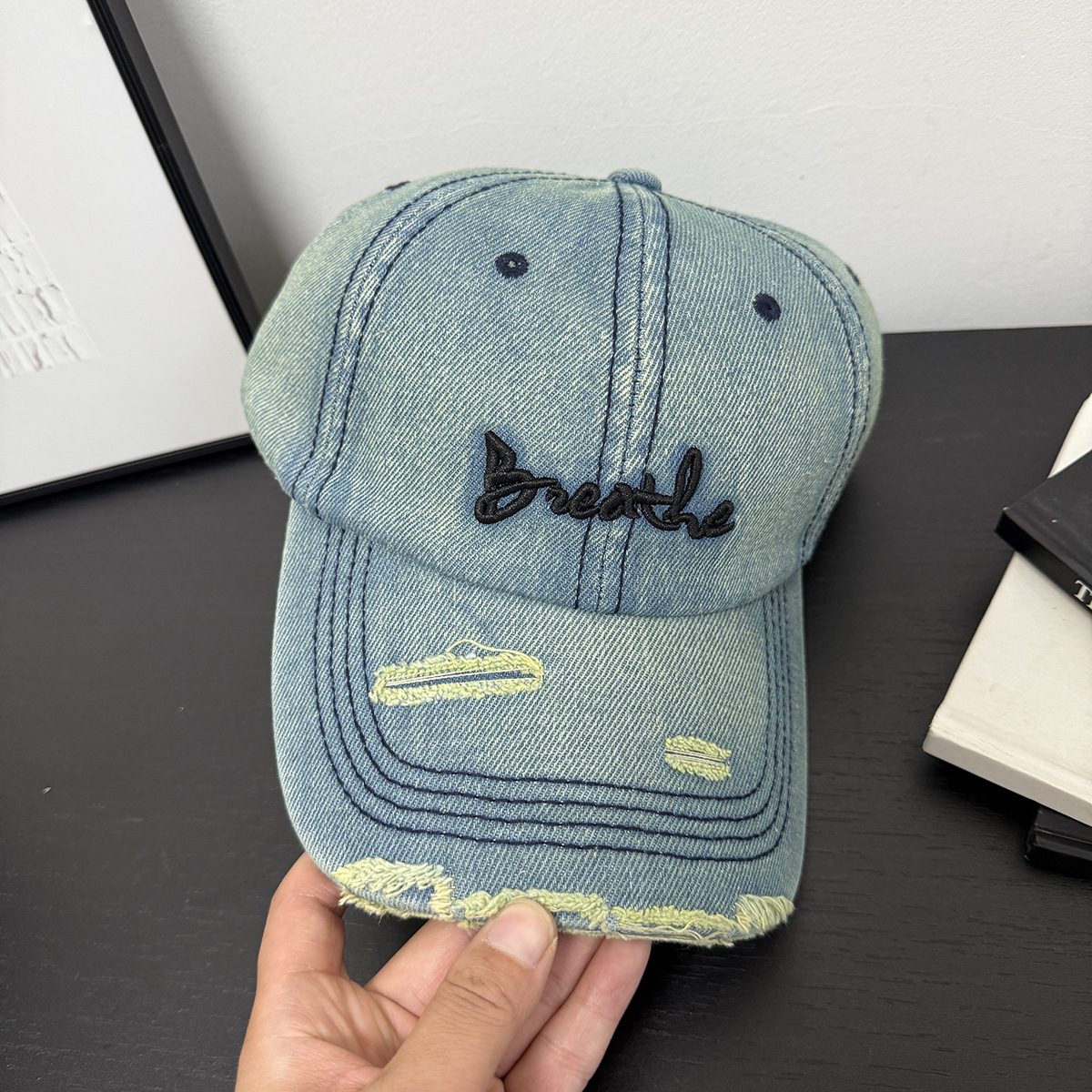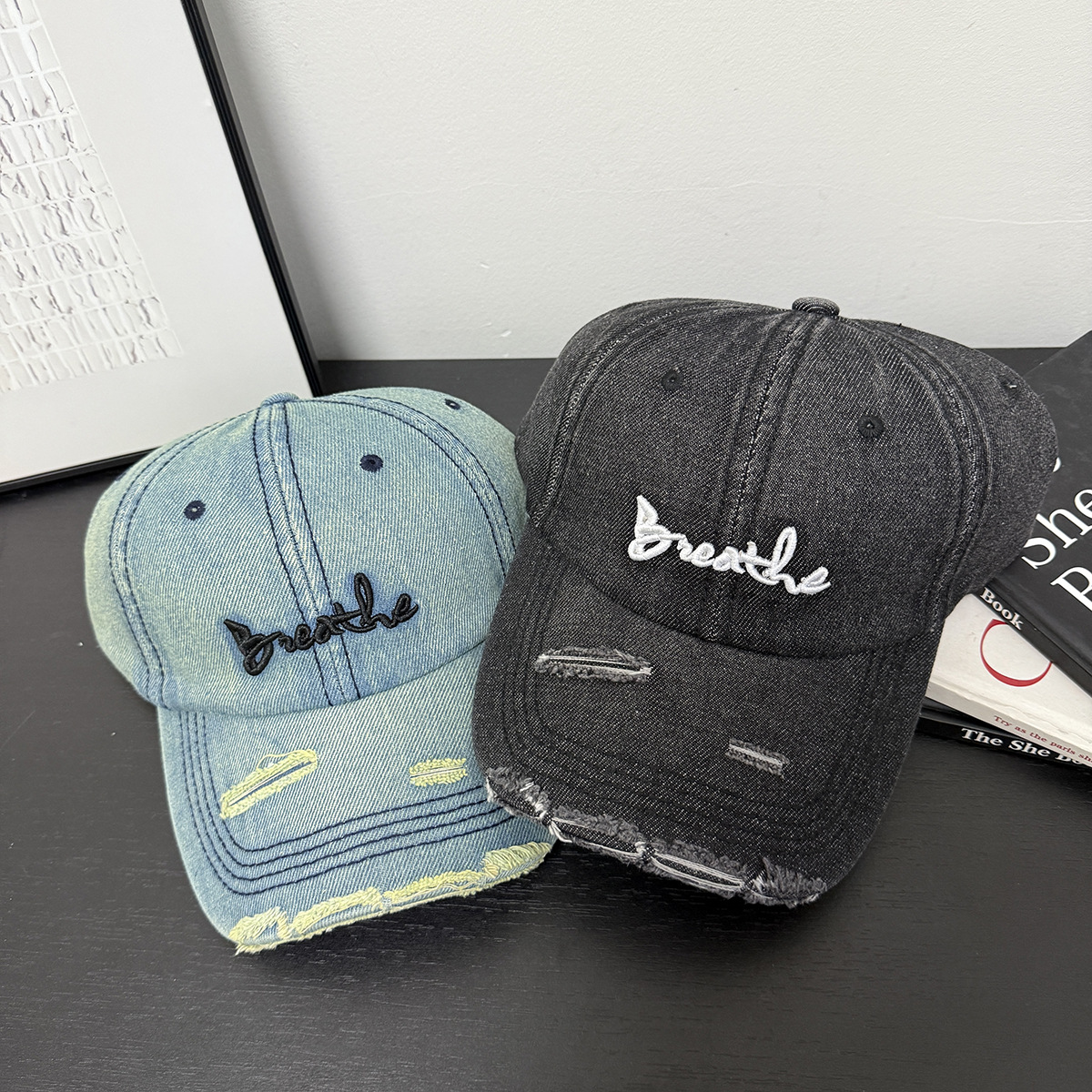 帽子男女士秋季新款磨破做旧水洗牛仔布棒球帽户外休闲百搭鸭舌帽