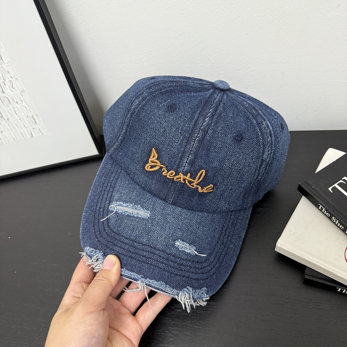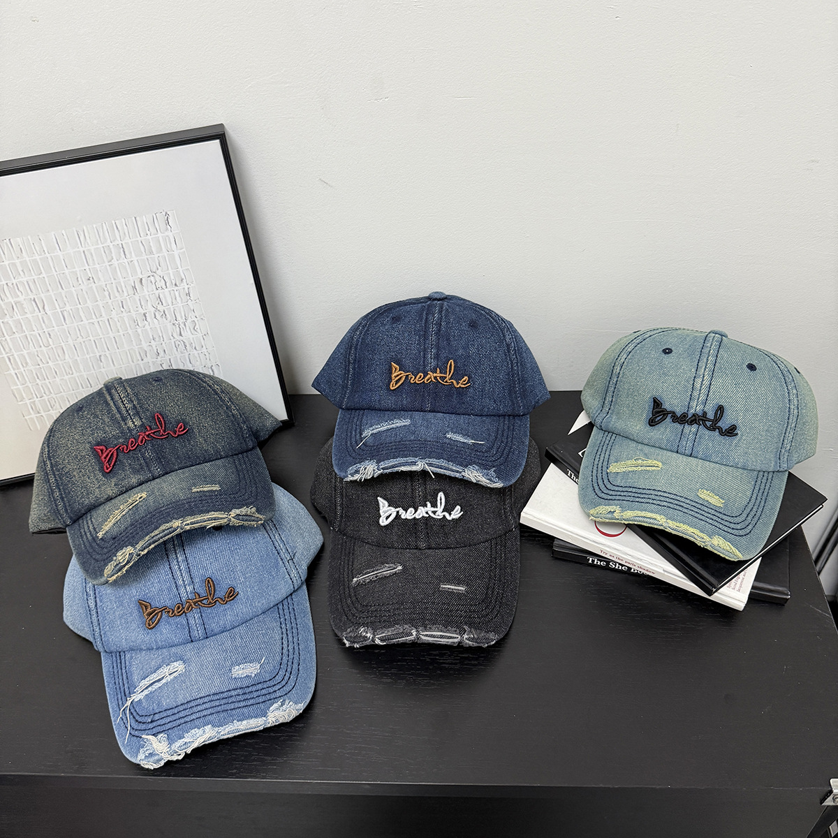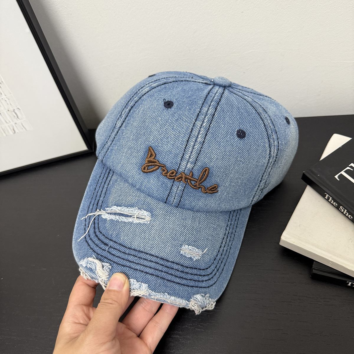 帽子男女士秋季新款磨破做旧水洗牛仔布棒球帽户外休闲百搭鸭舌帽