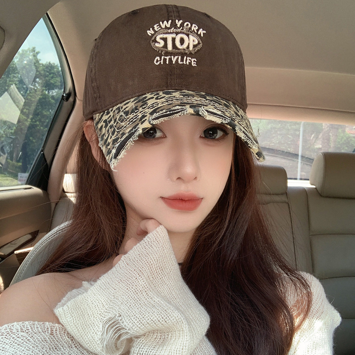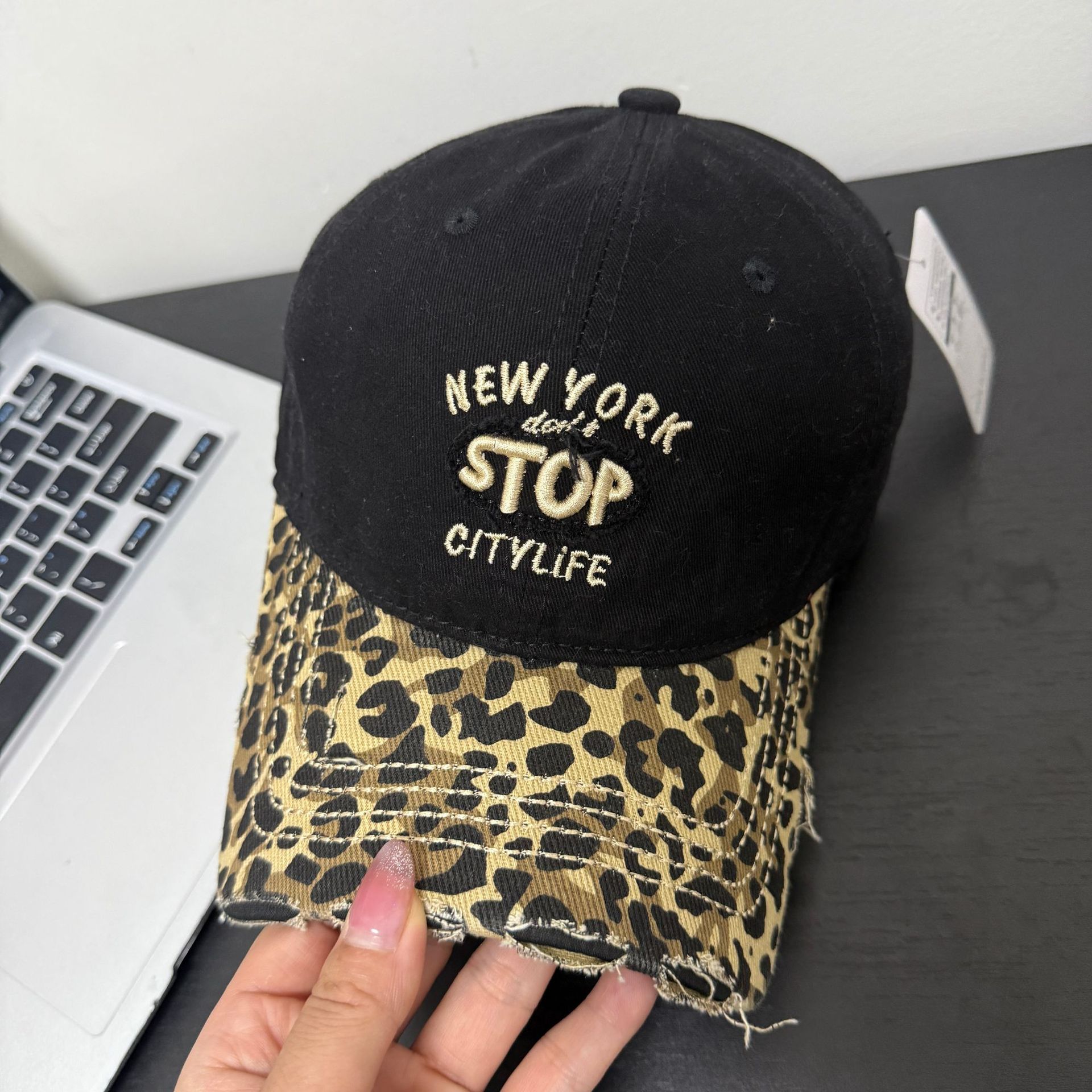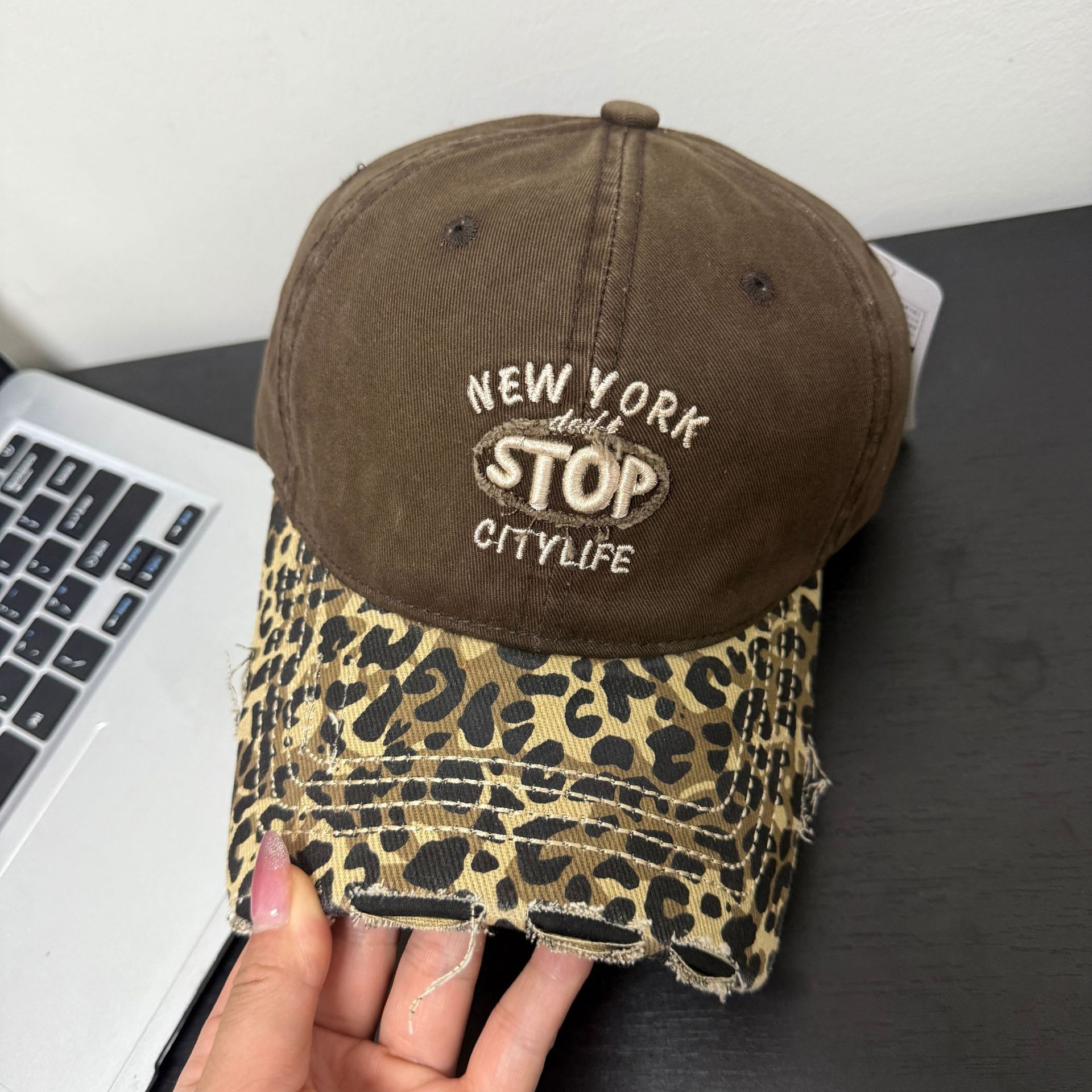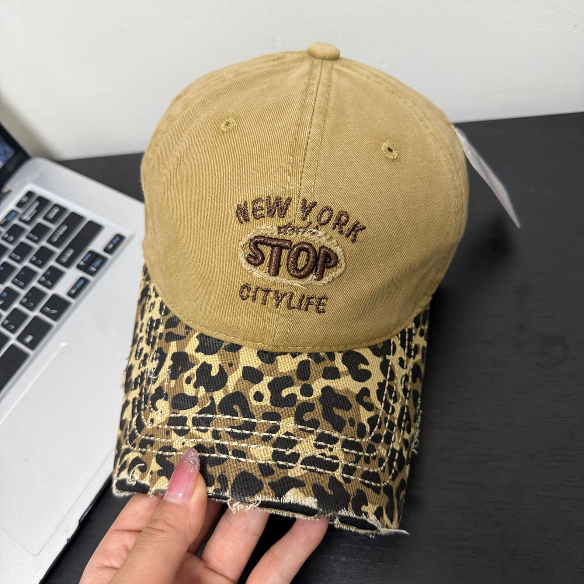 帽子韩版甜酷风潮牌美式豹纹水洗棒球帽女潮牌stop刺绣鸭舌帽