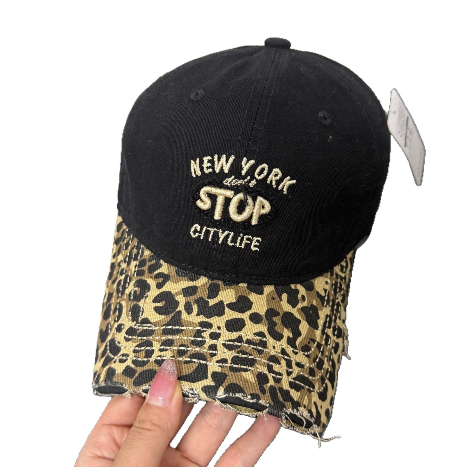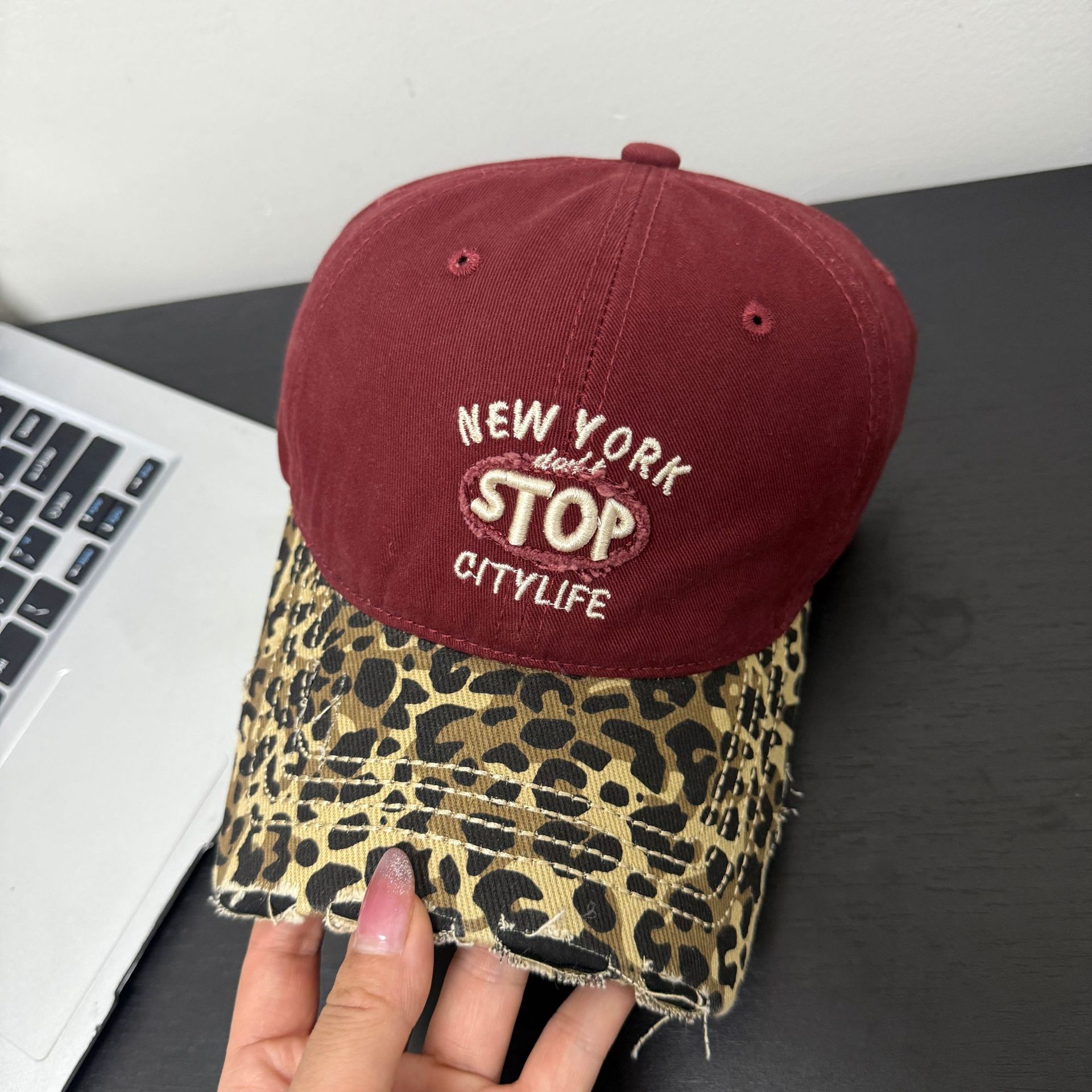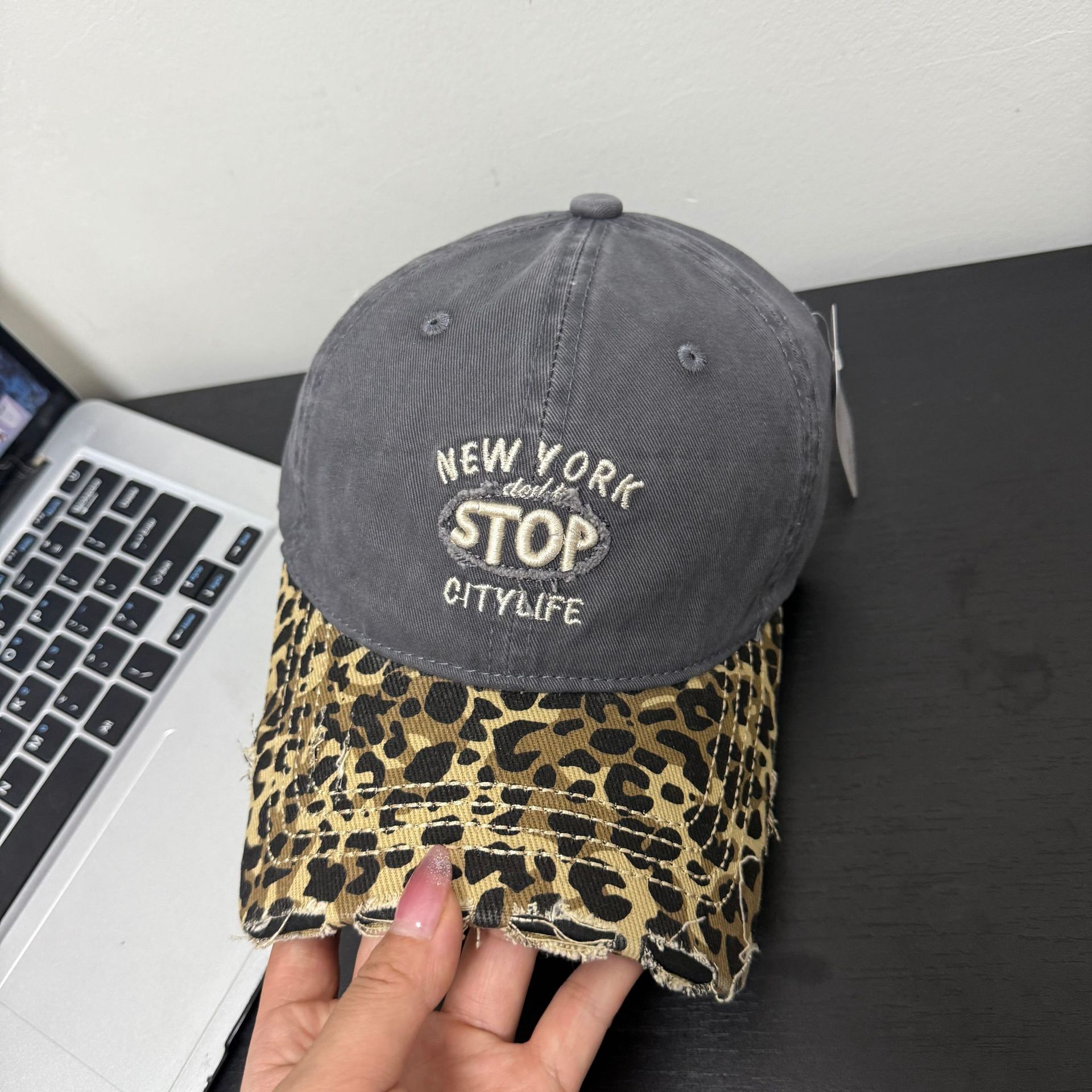 帽子韩版甜酷风潮牌美式豹纹水洗棒球帽女潮牌stop刺绣鸭舌帽
