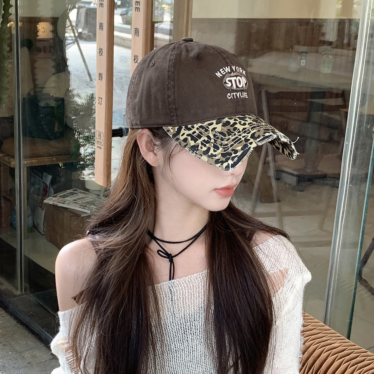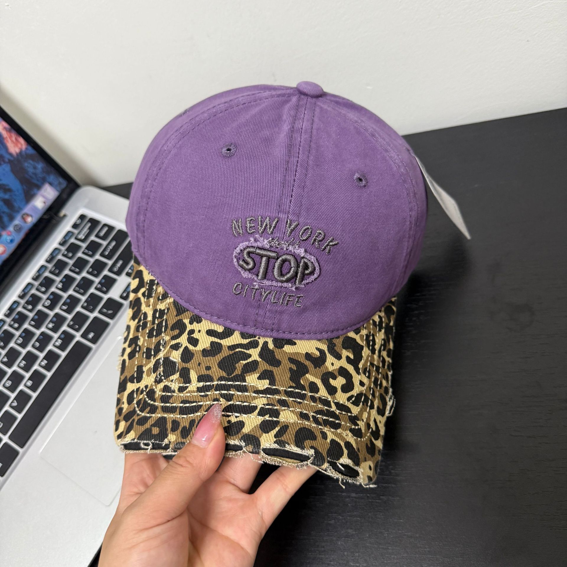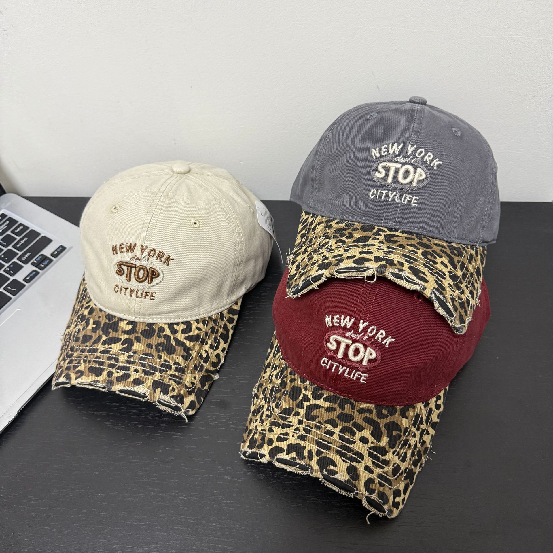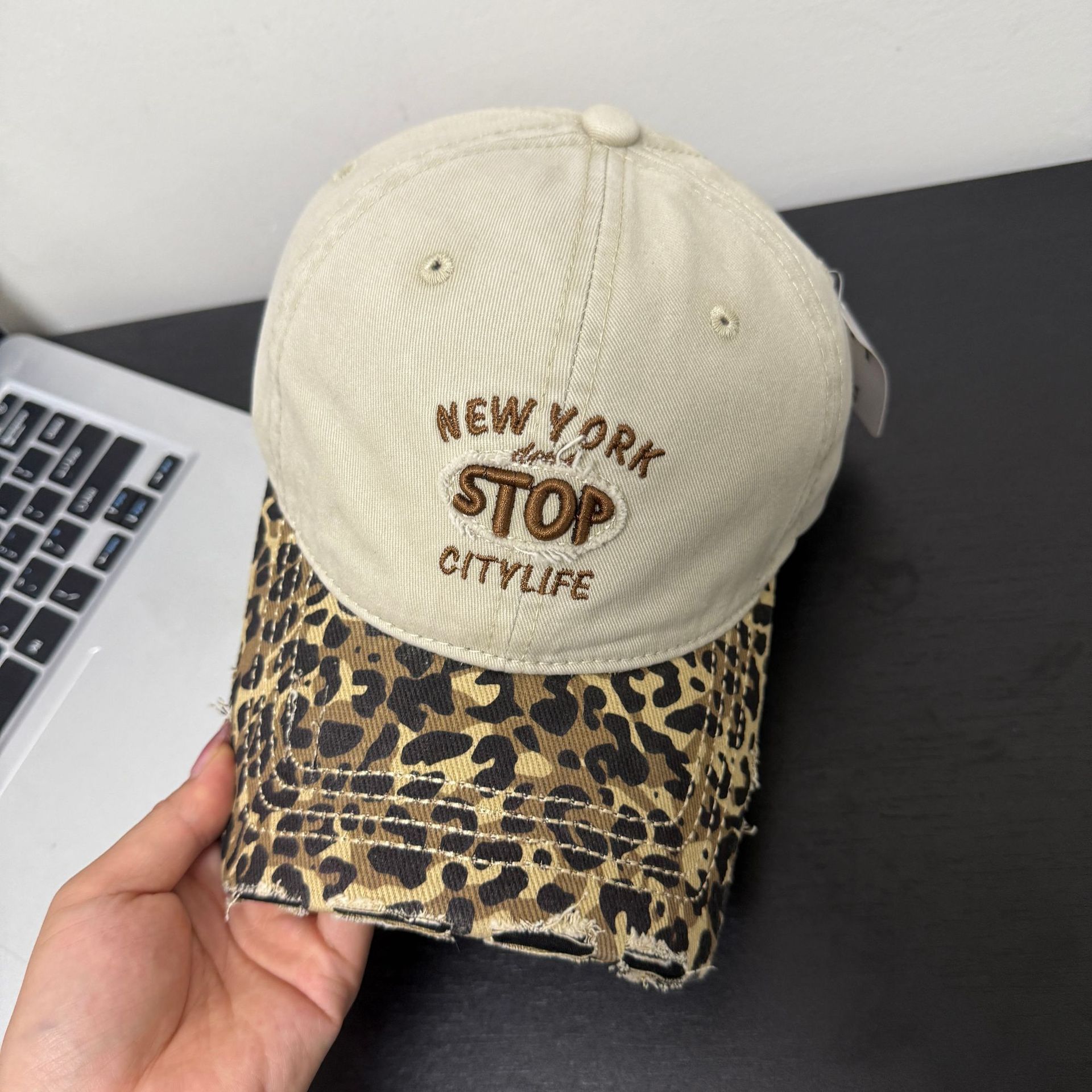 帽子韩版甜酷风潮牌美式豹纹水洗棒球帽女潮牌stop刺绣鸭舌帽