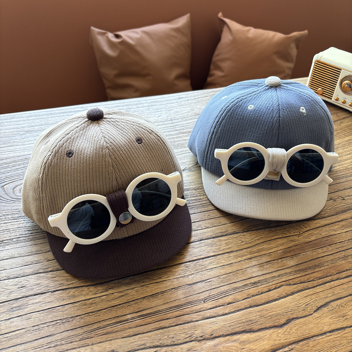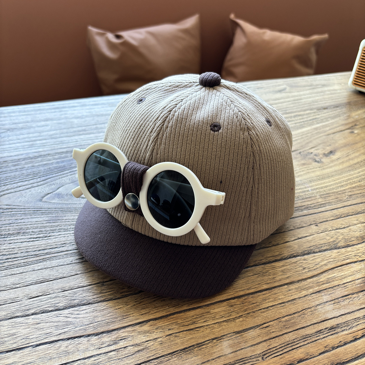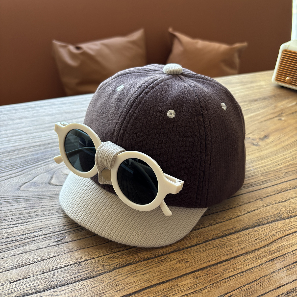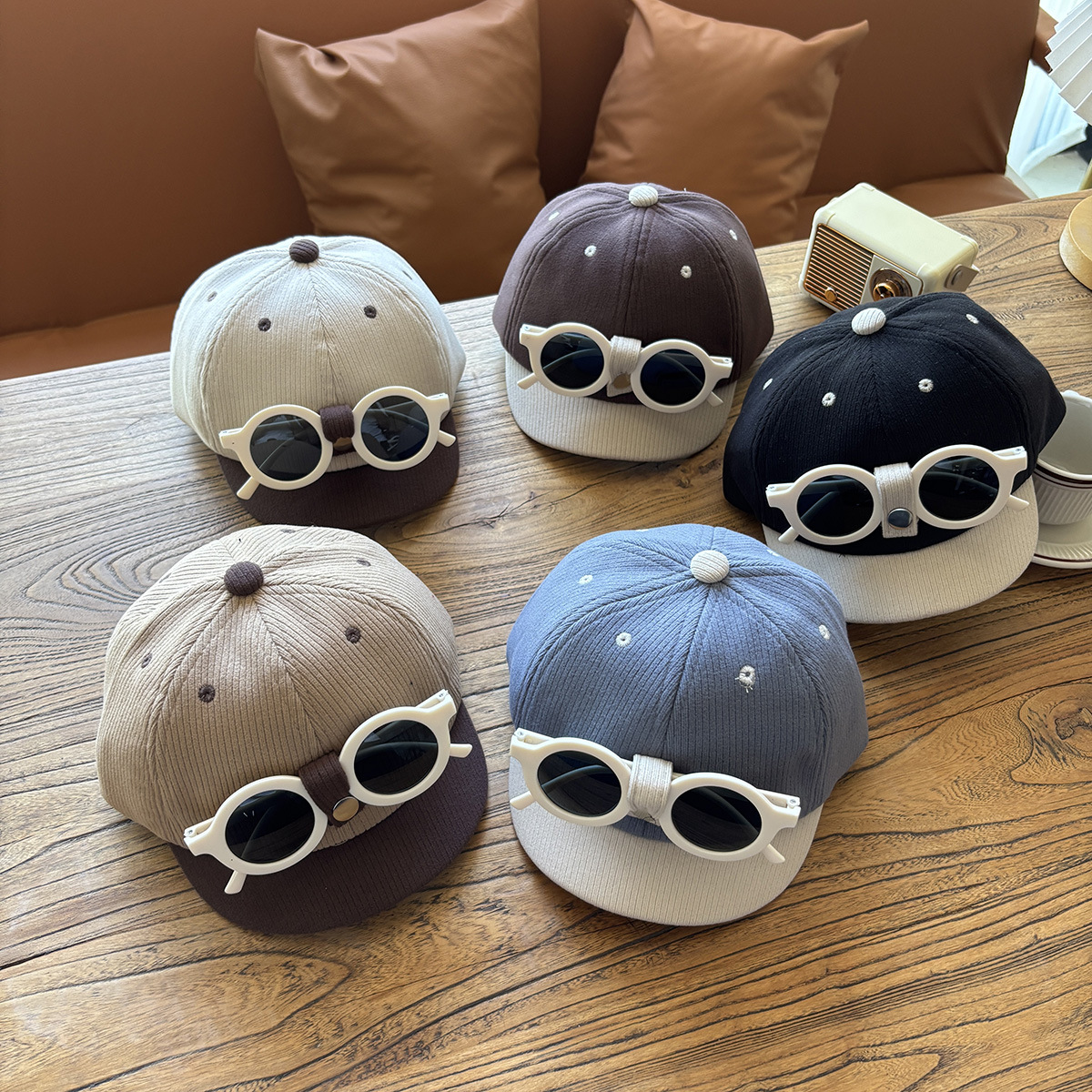 宝宝帽子男秋冬帅气潮酷眼镜棉呢短檐棒球帽1-3岁韩版儿童鸭舌帽