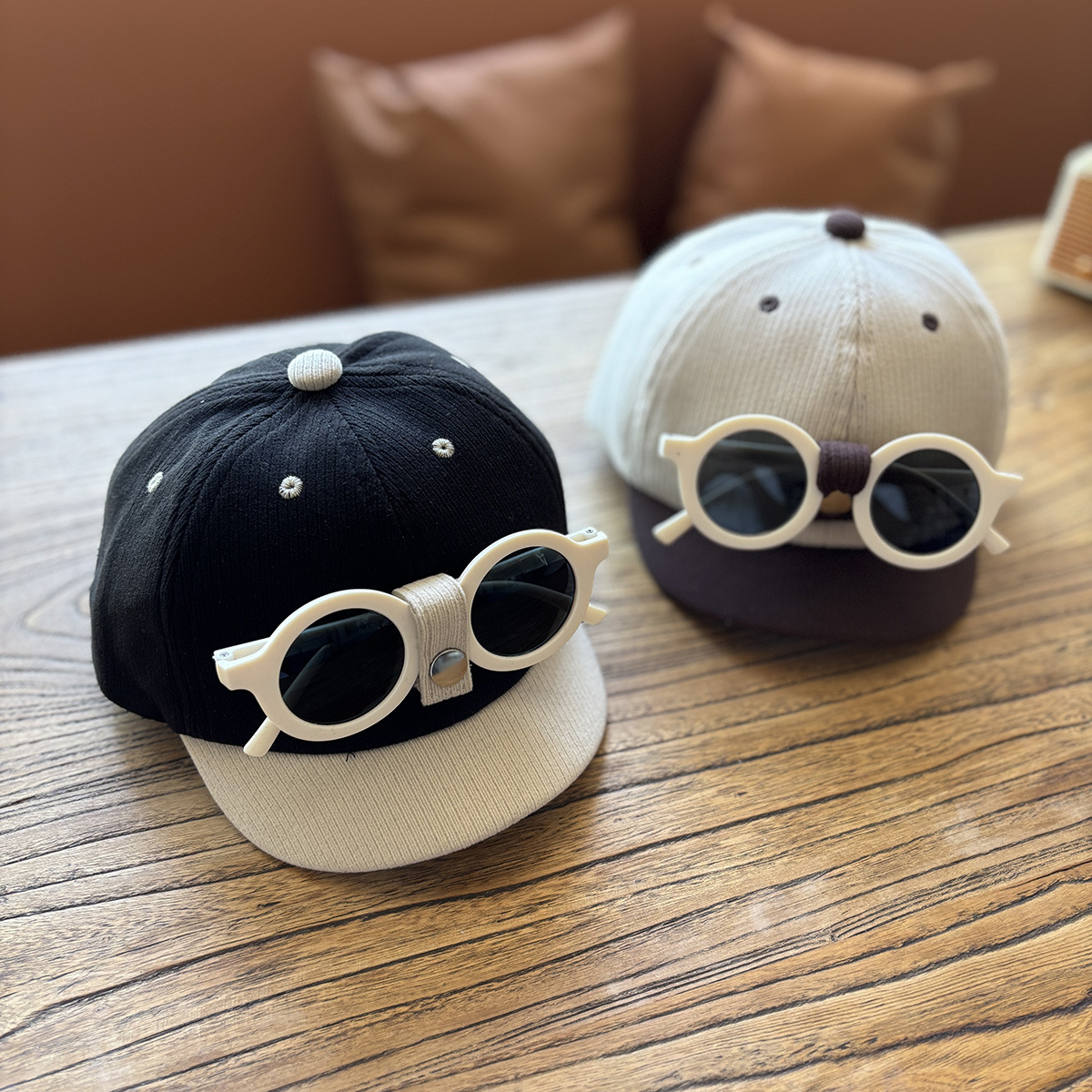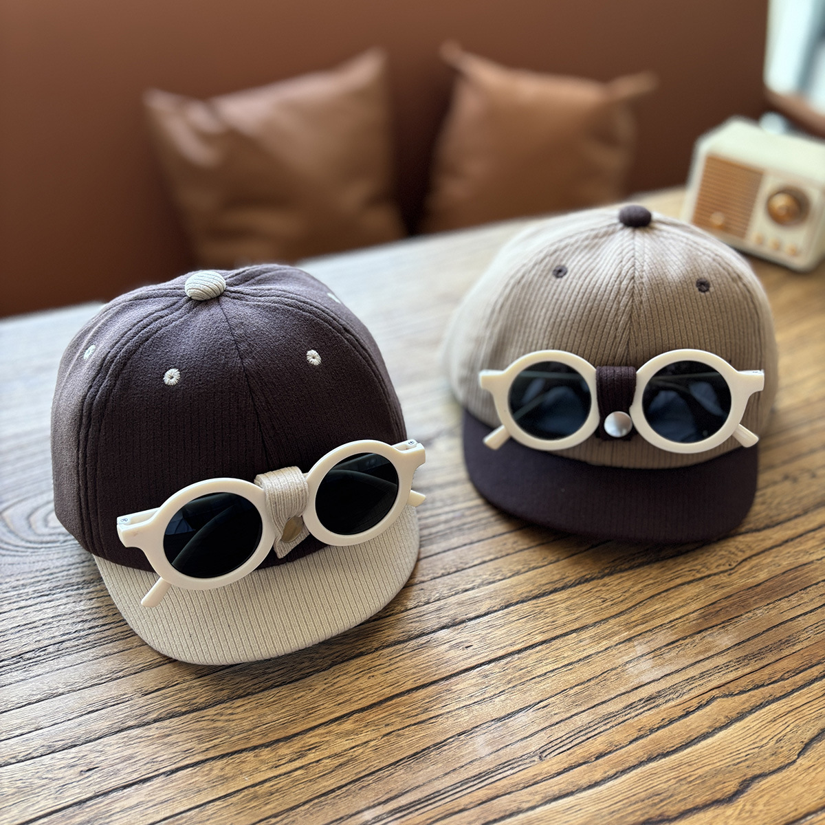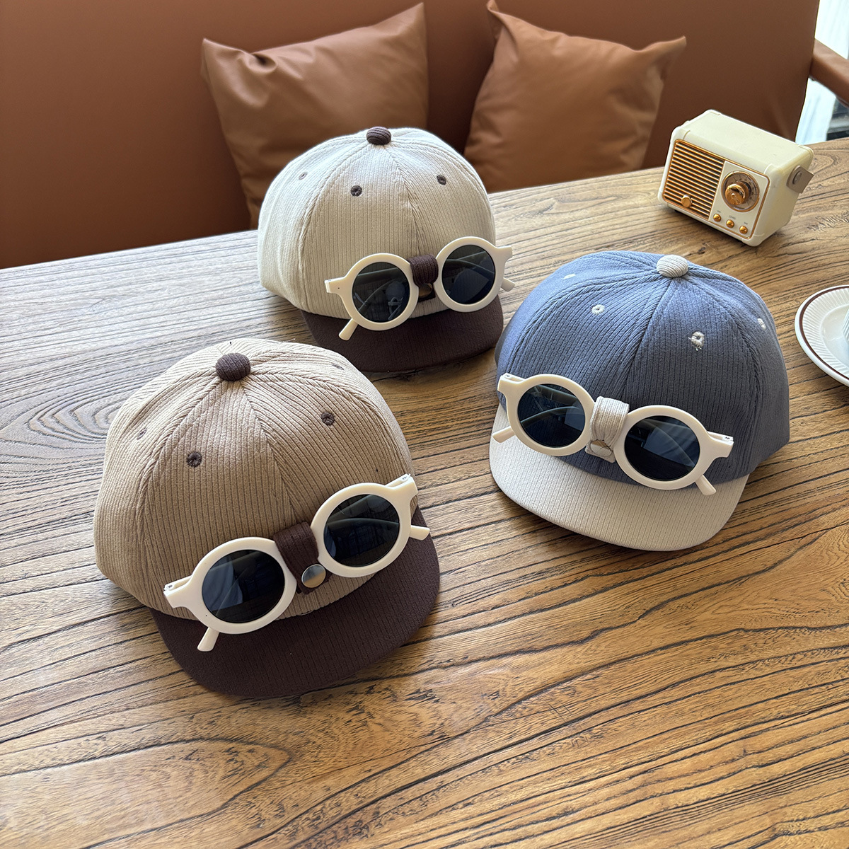宝宝帽子男秋冬帅气潮酷眼镜棉呢短檐棒球帽1-3岁韩版儿童鸭舌帽