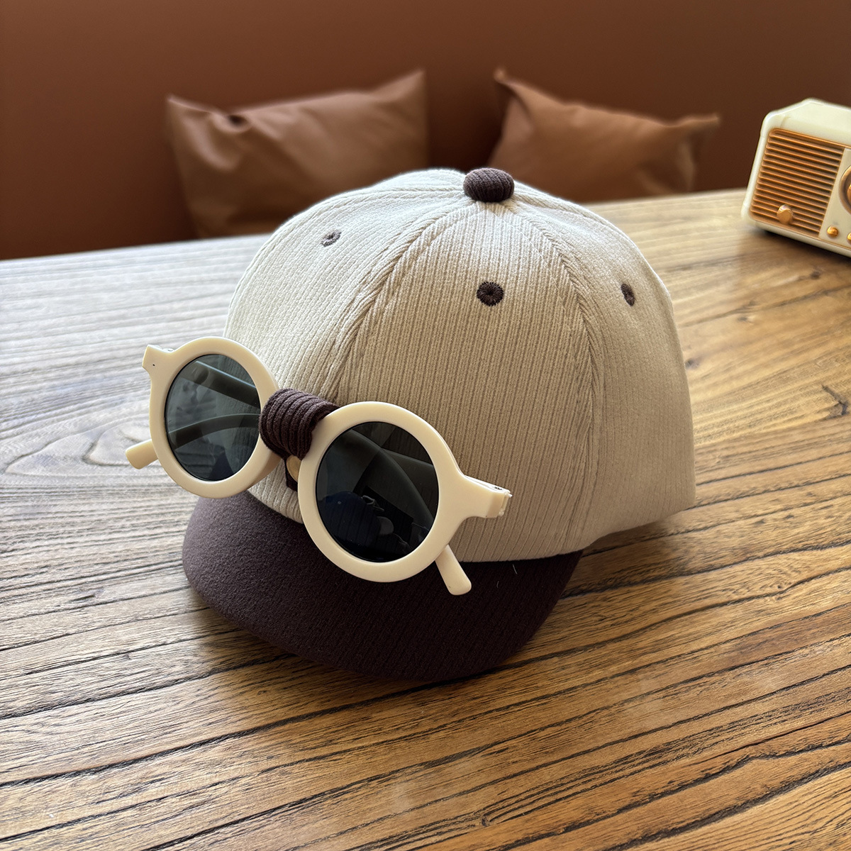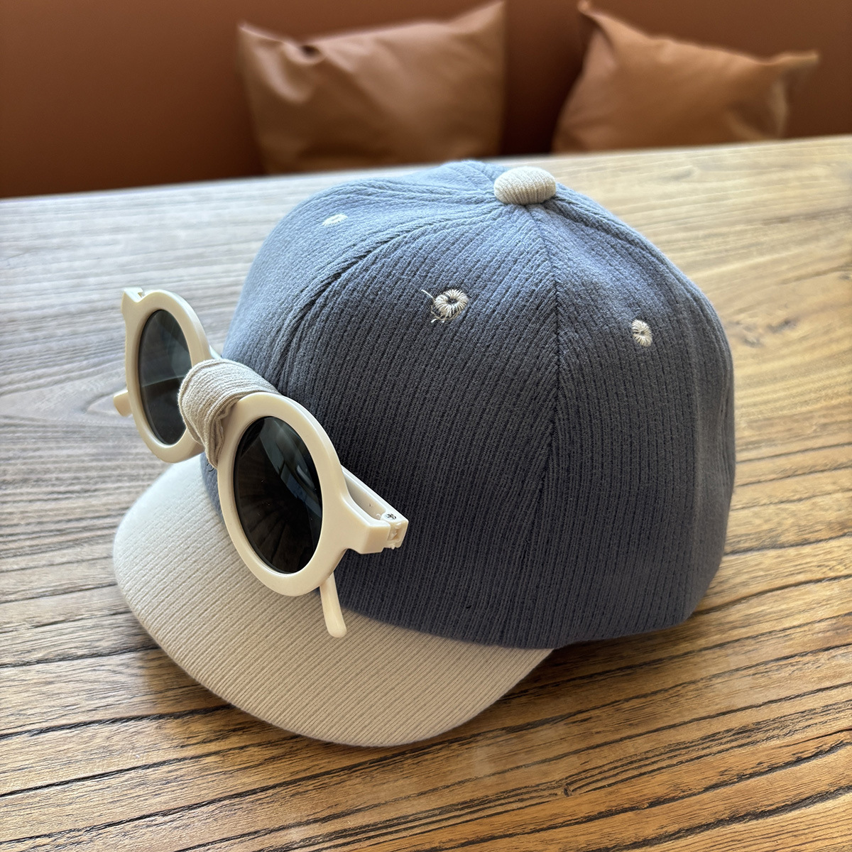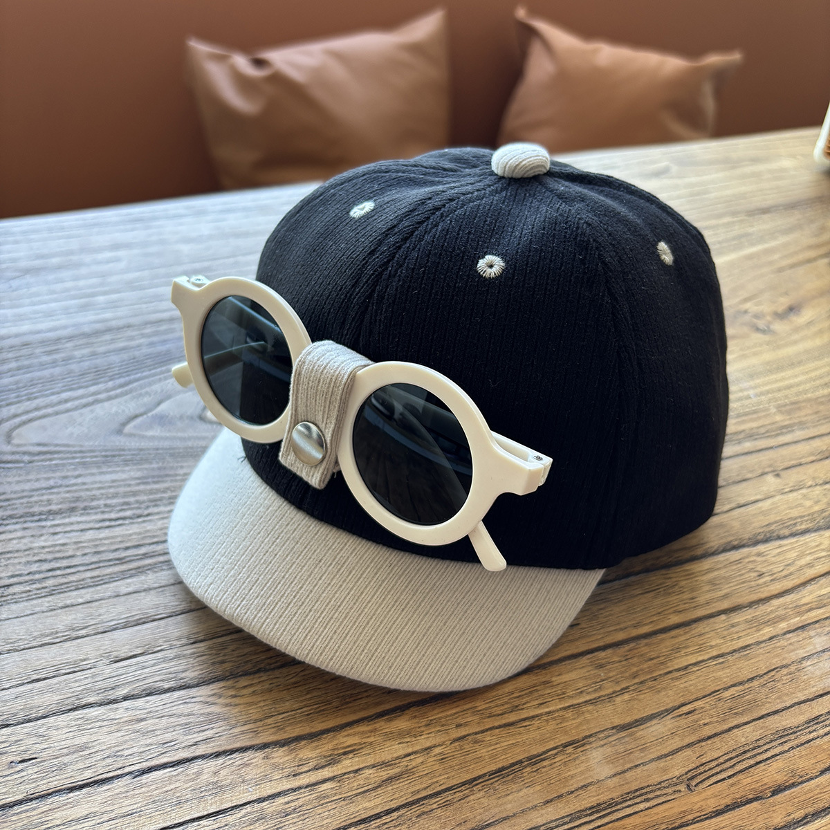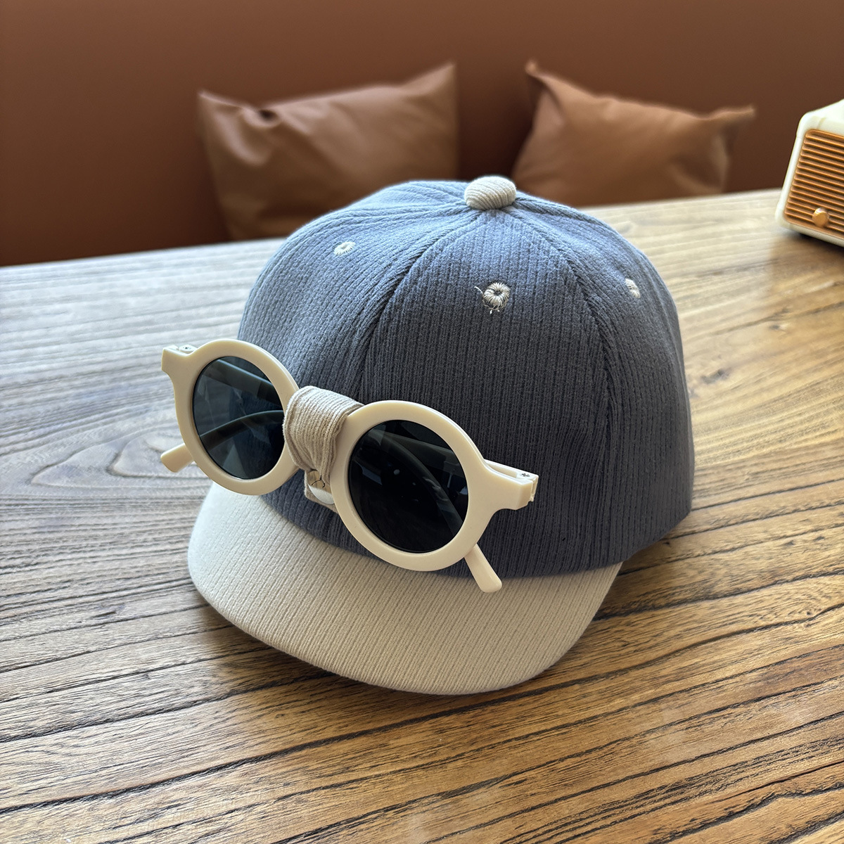 宝宝帽子男秋冬帅气潮酷眼镜棉呢短檐棒球帽1-3岁韩版儿童鸭舌帽