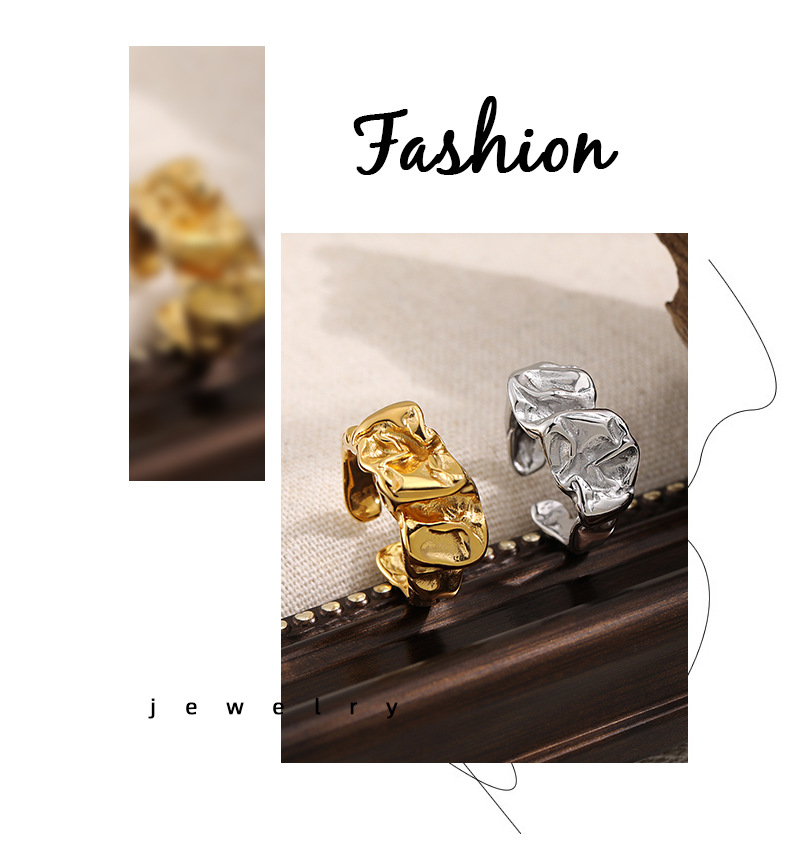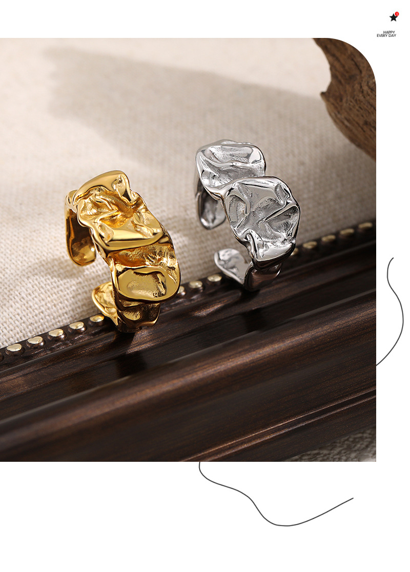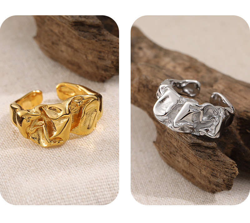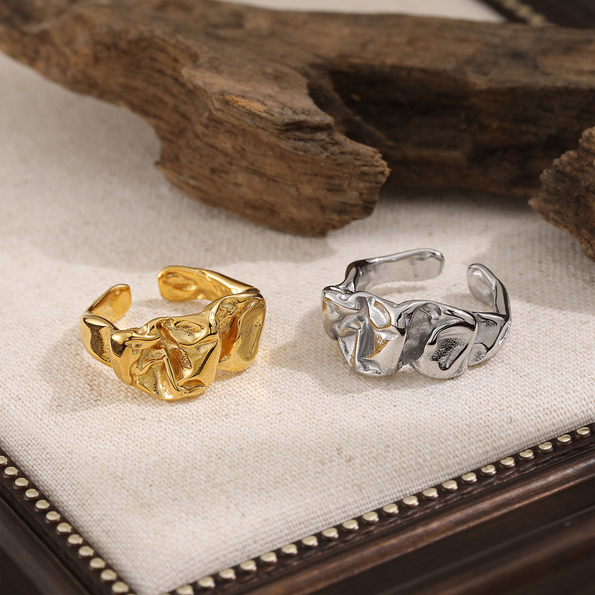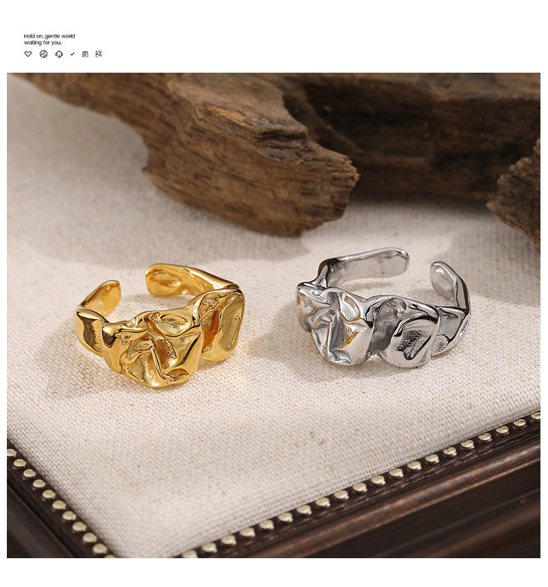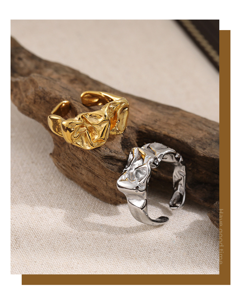 欧美时尚火山岩纹皱褶戒指不规则个性设计ins高级感钛钢开口指环