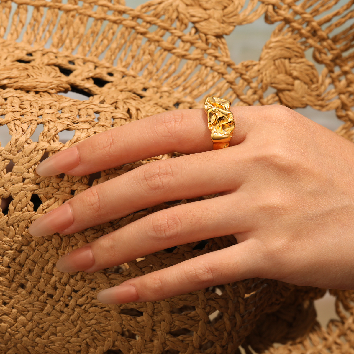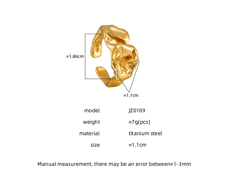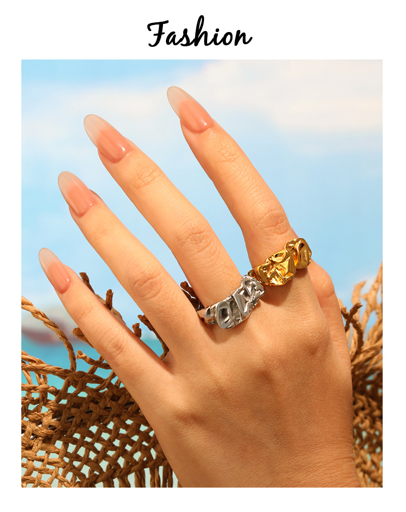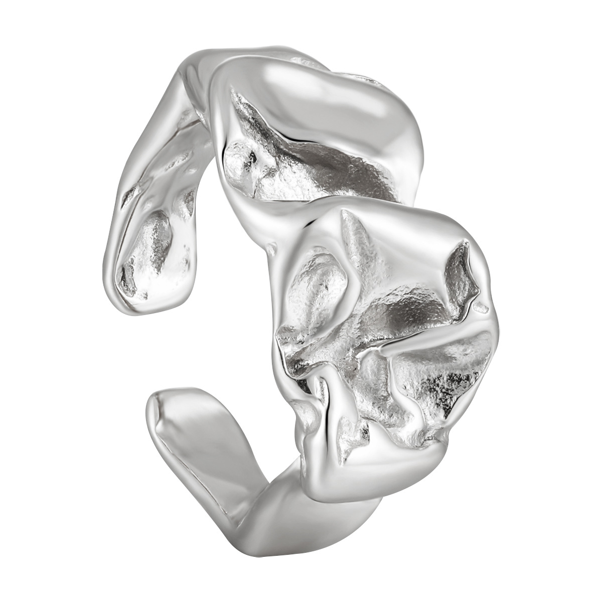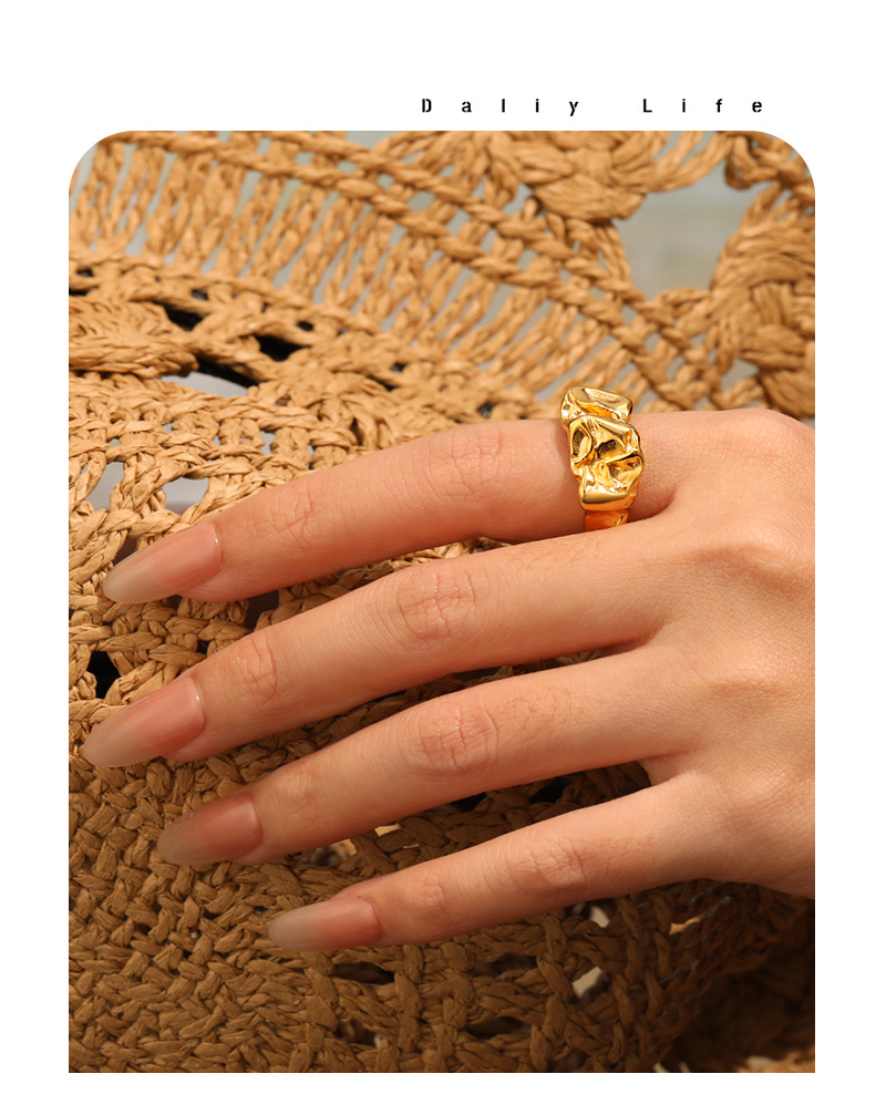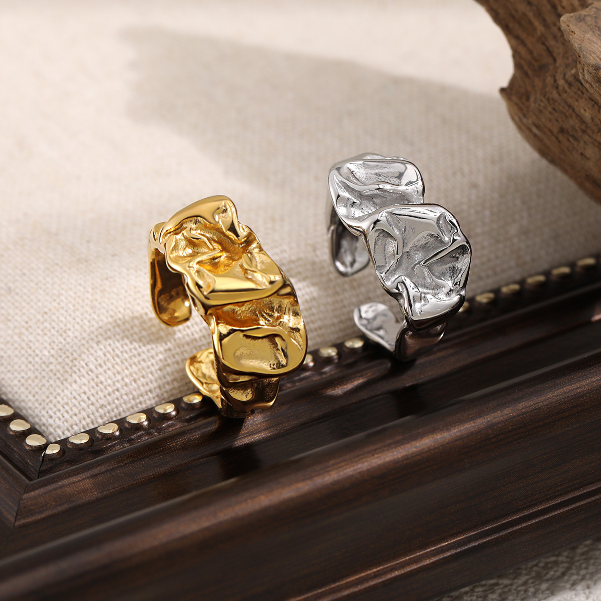 欧美时尚火山岩纹皱褶戒指不规则个性设计ins高级感钛钢开口指环