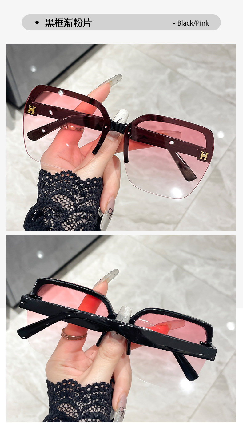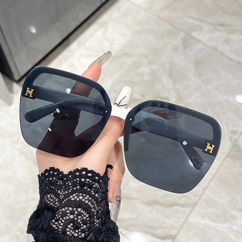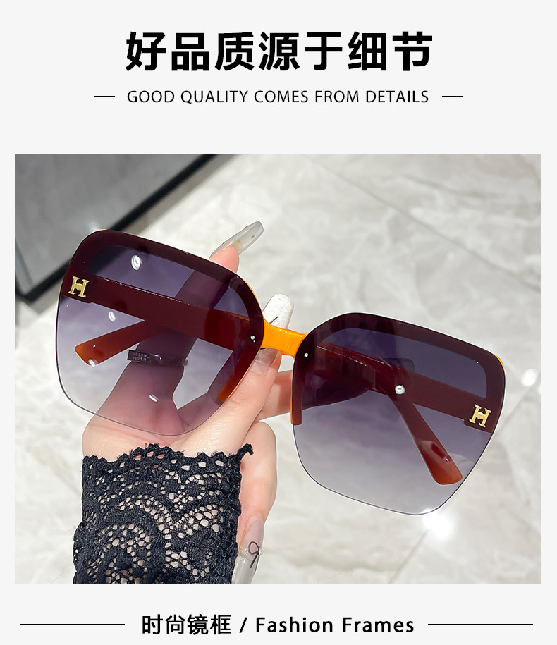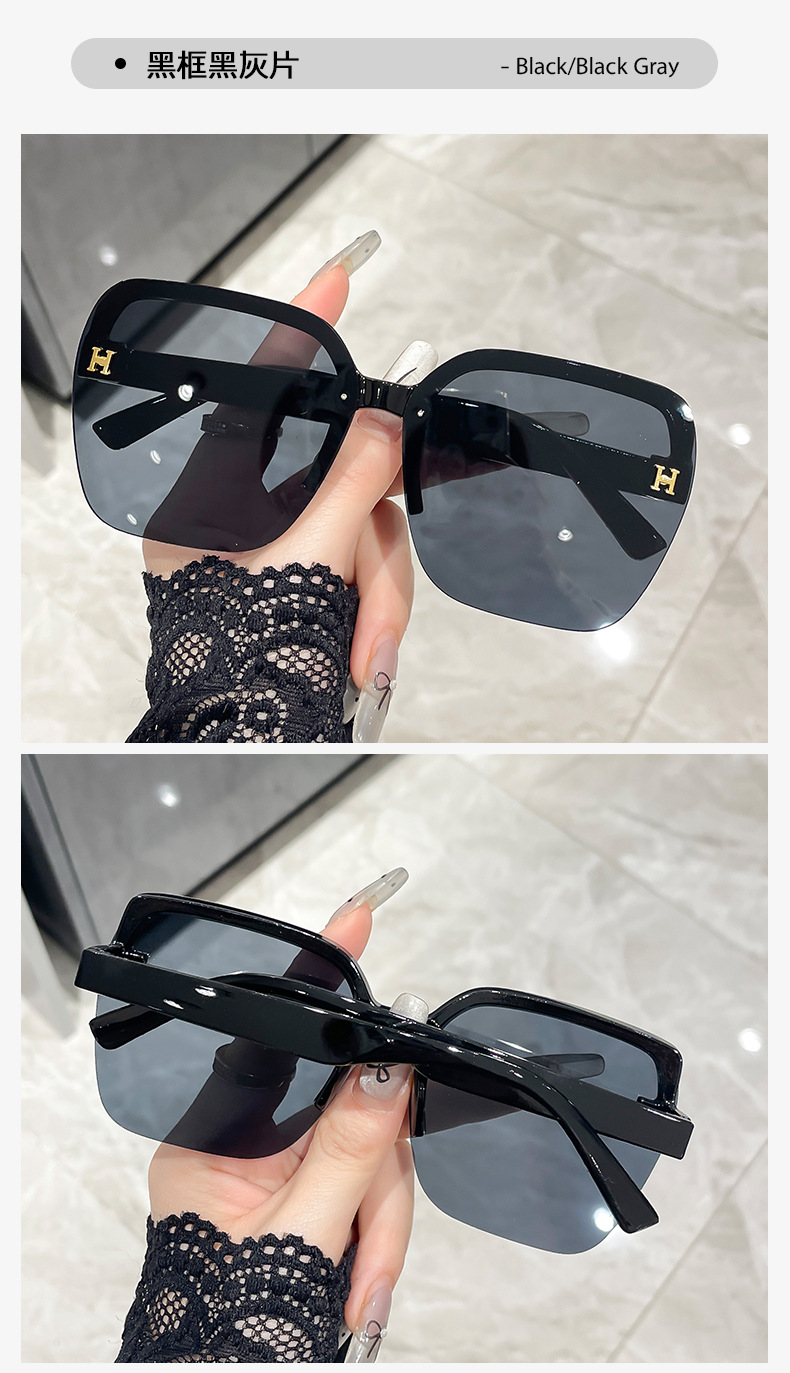 新款H半框高级感防晒显瘦高清太阳眼镜 时尚小香风防紫外线遮阳镜
