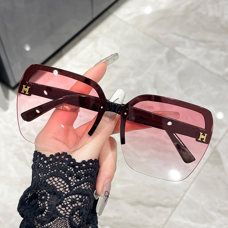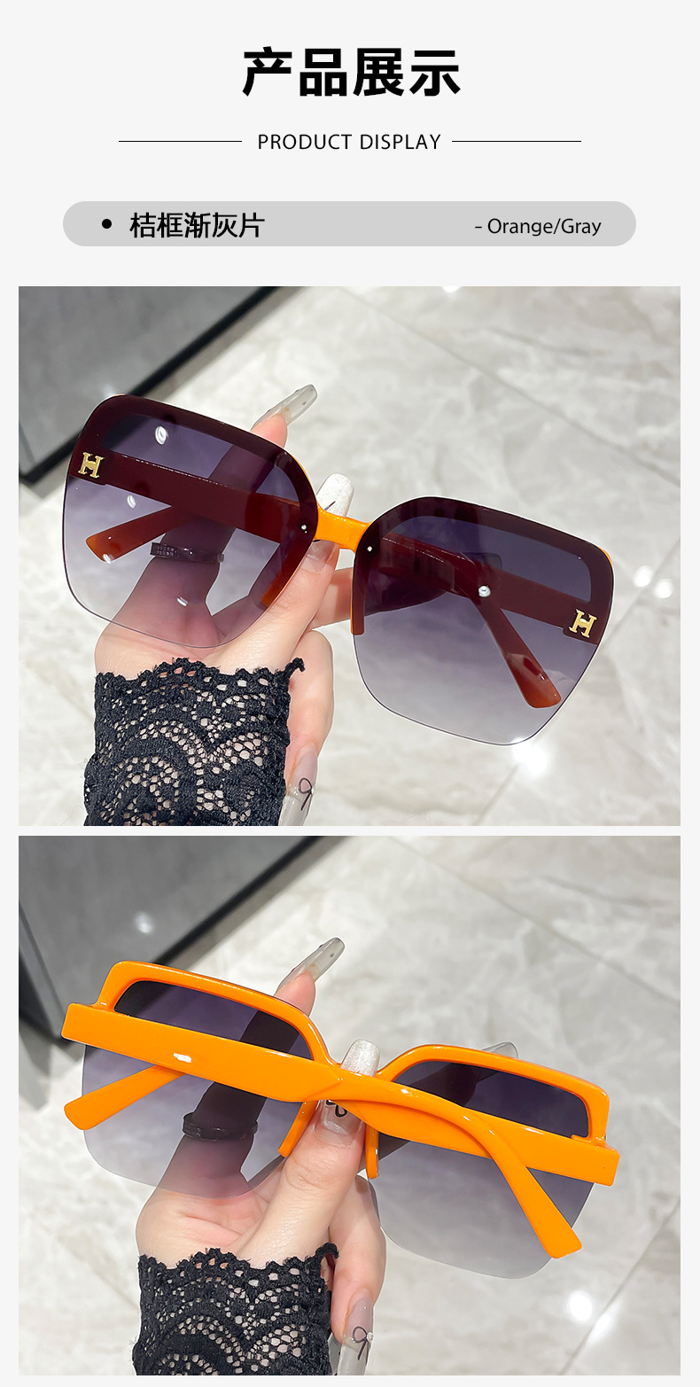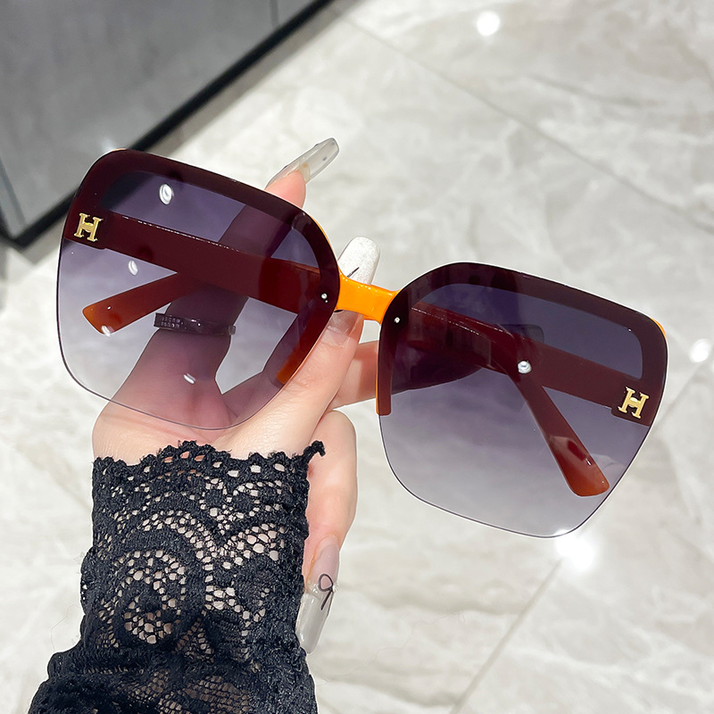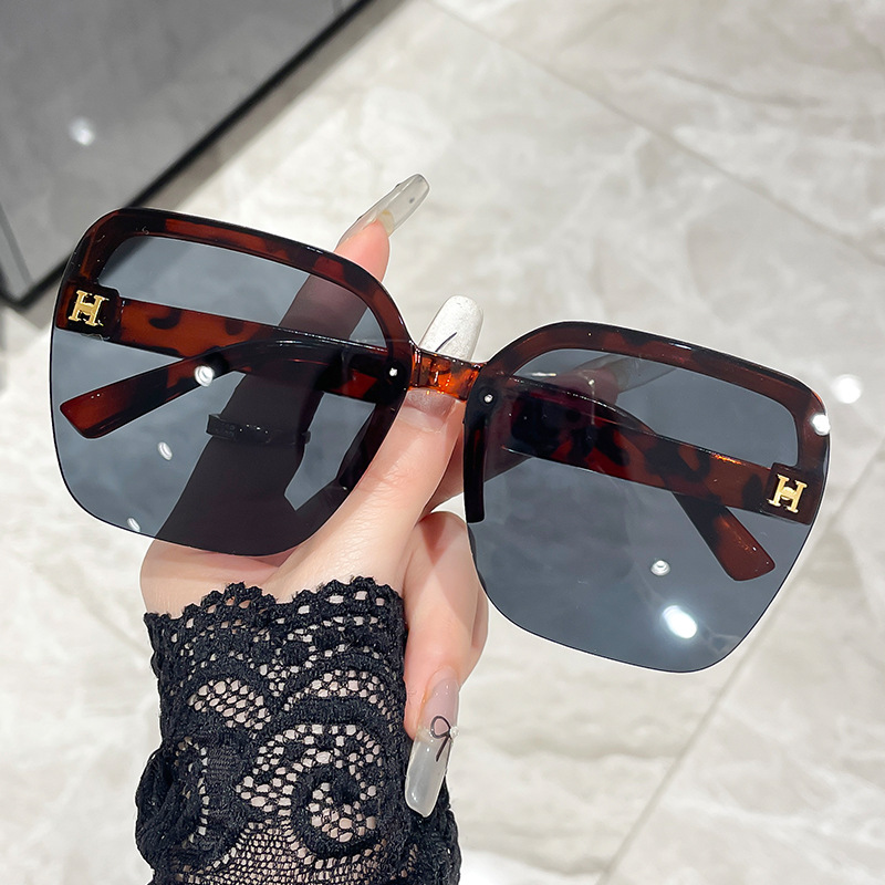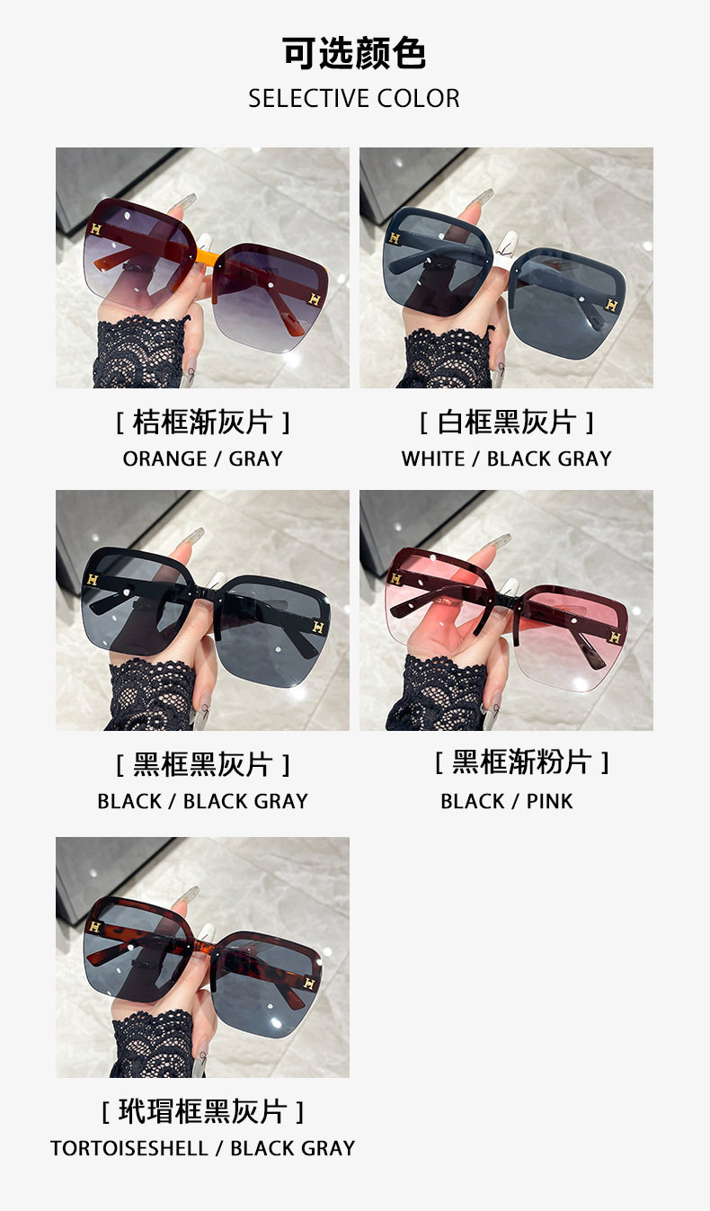 新款H半框高级感防晒显瘦高清太阳眼镜 时尚小香风防紫外线遮阳镜