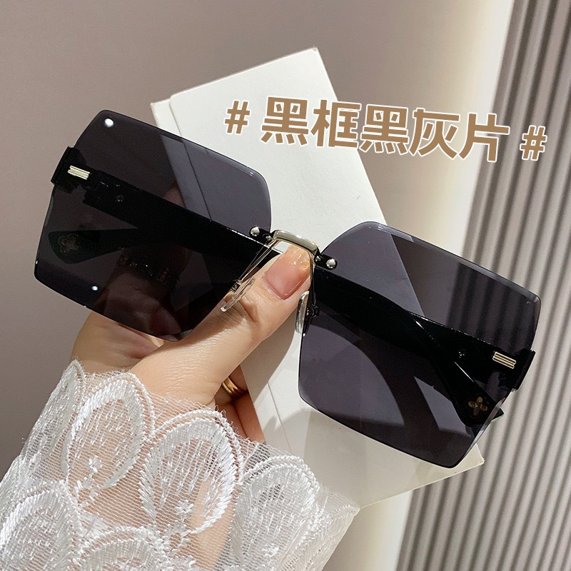 新款女潮大框显瘦墨镜无框切边防晒太阳镜网红拍照高级感眼镜