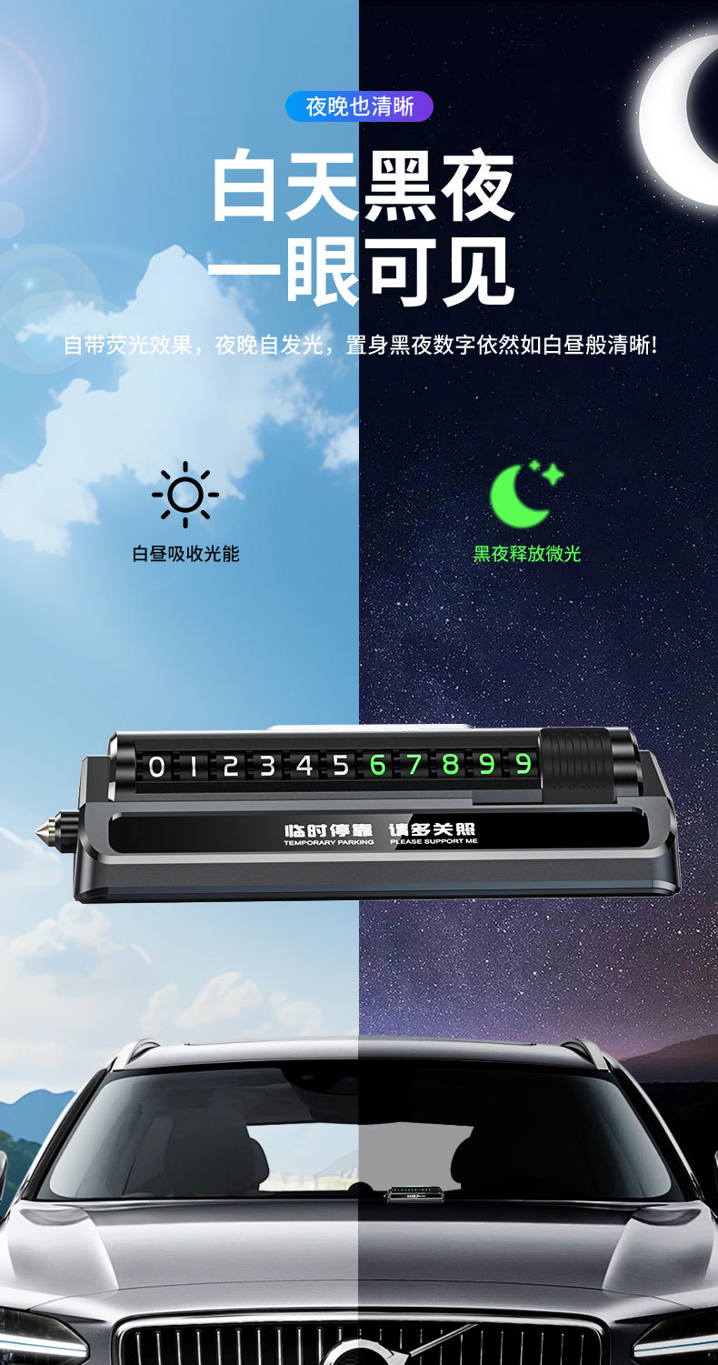 H3车载临时停车号码牌导航手机支架挪车号码牌汽车用破窗影藏数字
