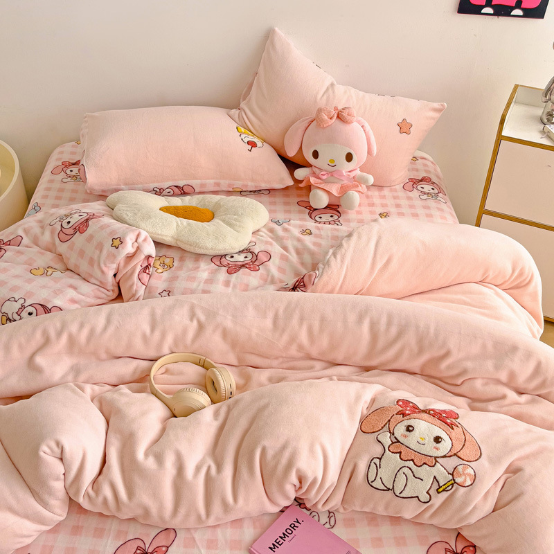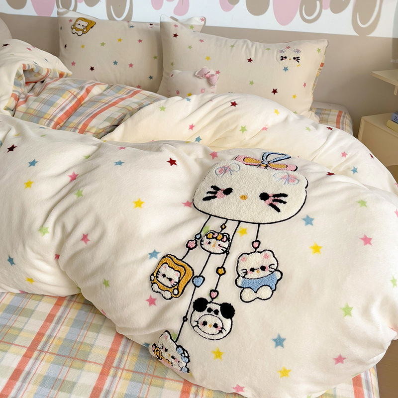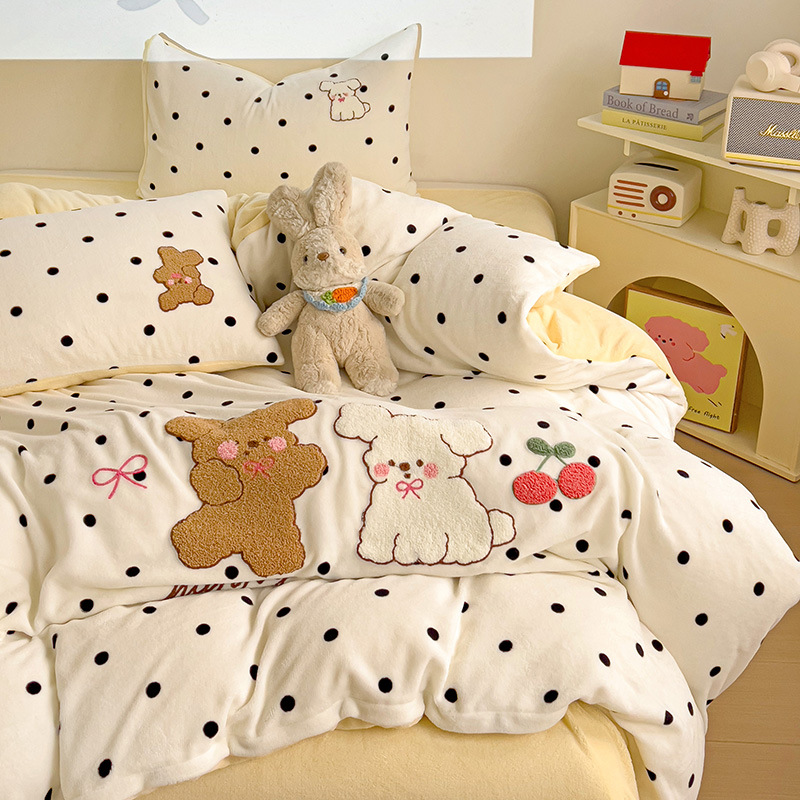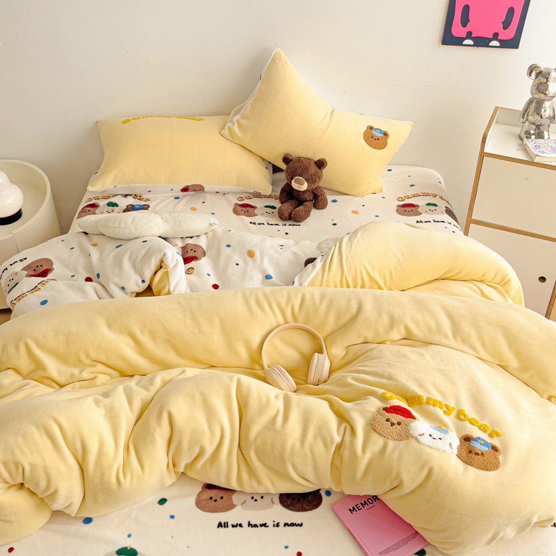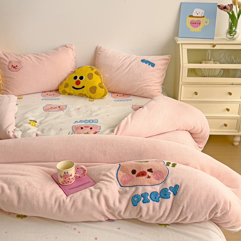 A类牛奶绒床上四件套毛巾绣冬季加厚珊瑚绒被套床单笠宿舍三4件套
