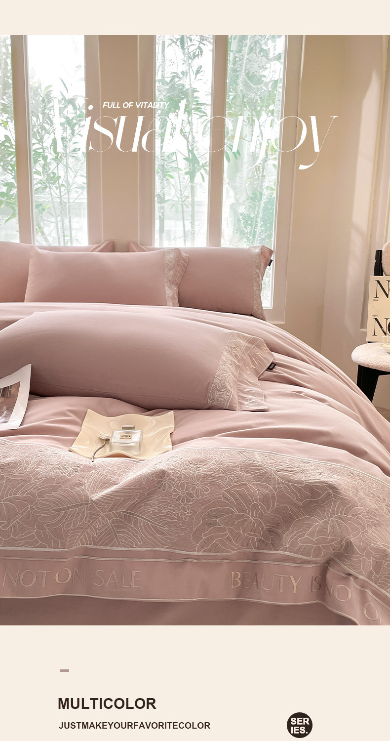 | 1.8m fitted sheet quilt cover plus-sized four-piece set (recommended with 220 * 240cm duvet insert)(1.8m床笠款被套加大四件套(建议搭配220*240cm被芯)) | USD $73.97 | 886 set available |