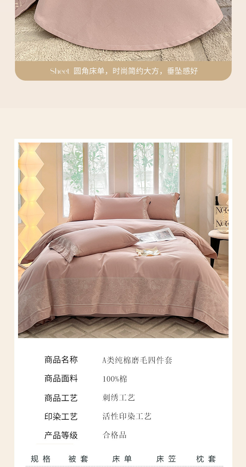 | 1.8m fitted sheet four-piece set (recommended with 200 * 230cm duvet insert)(1.8m床笠款四件套(建议搭配200*230cm被芯)) | USD $69.72 | 885 set available |