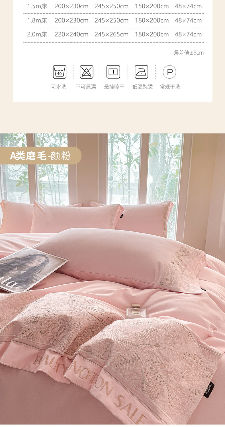 | 1.8m fitted sheet four-piece set (recommended with 200 * 230cm duvet insert)(1.8m床笠款四件套(建议搭配200*230cm被芯)) | USD $69.72 | 866 set available |