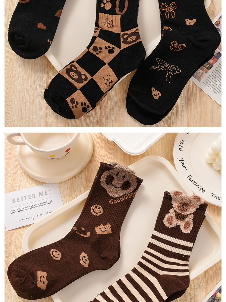 秋冬袜子女中筒袜黑色百搭韩版长筒袜涤棉羽毛纱毛绒小熊袜ins潮