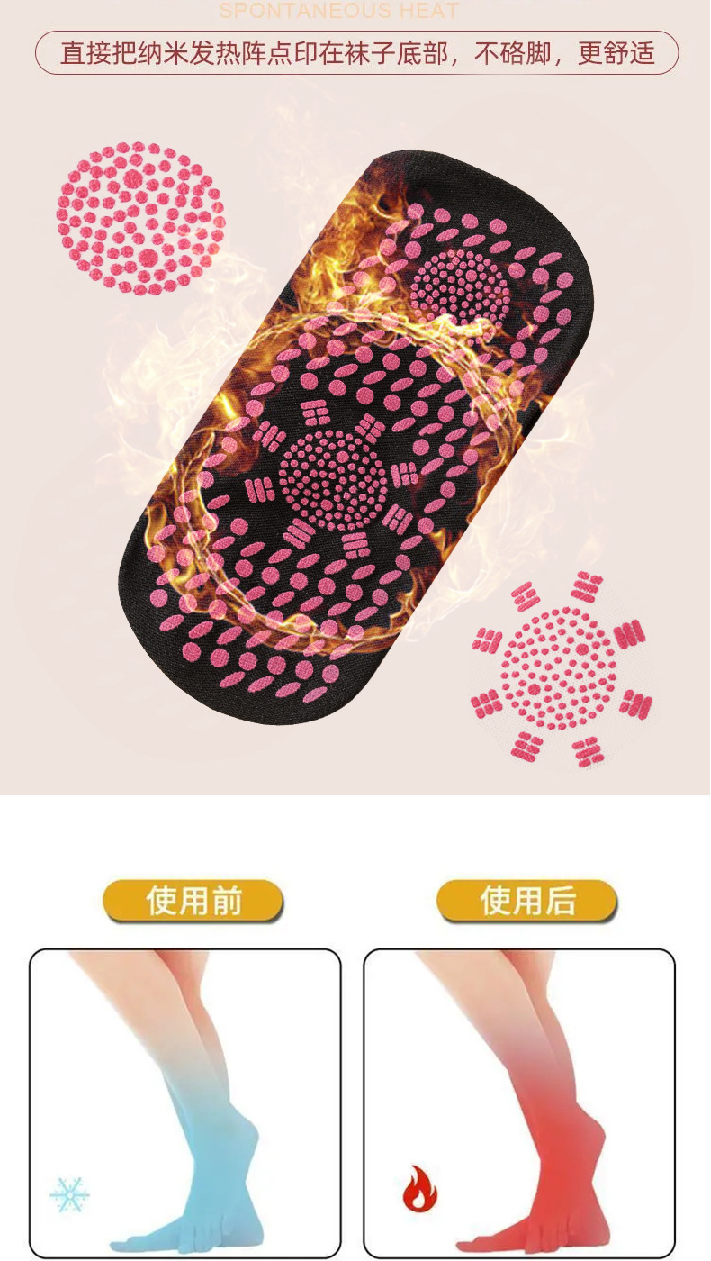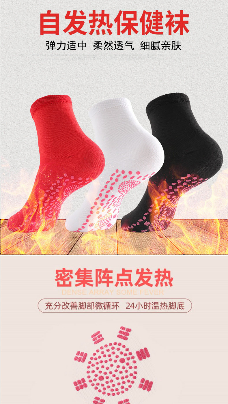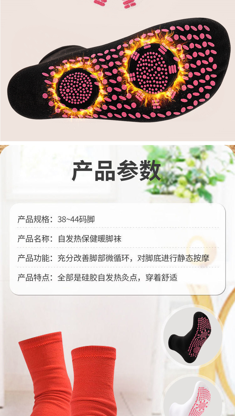 七乐单色可定暖脚保健按摩袜中筒防寒地板袜发热款男女袜厂家批发