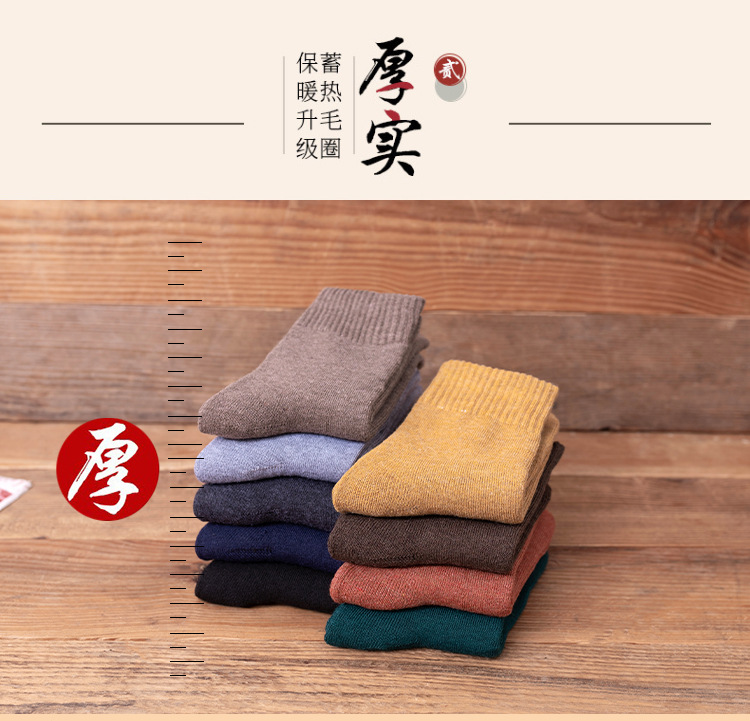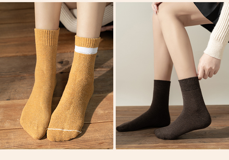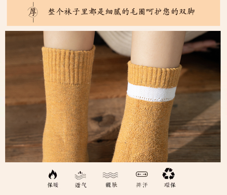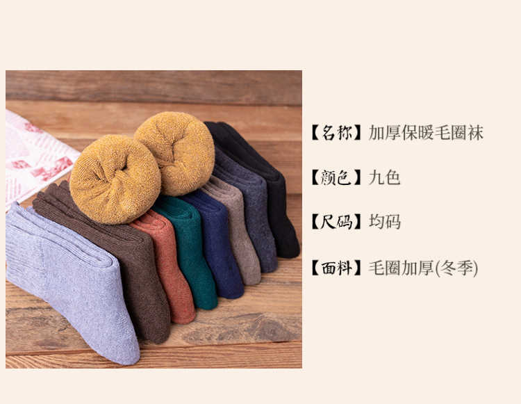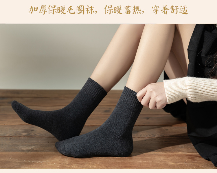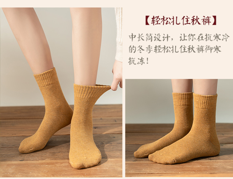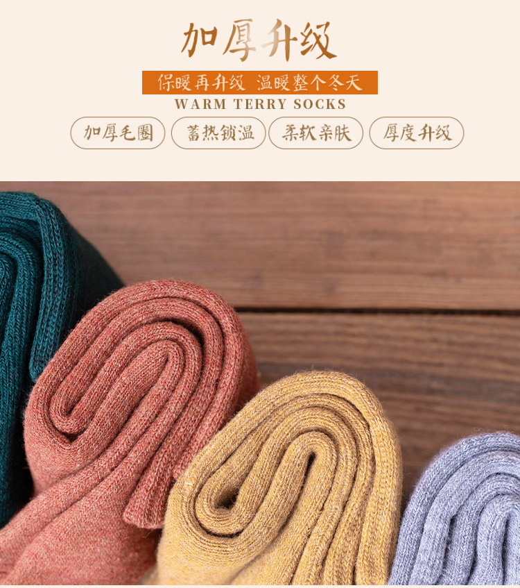秋冬款女士中筒袜纯色ins潮流百搭长袜加厚加绒保暖毛圈袜堆堆袜