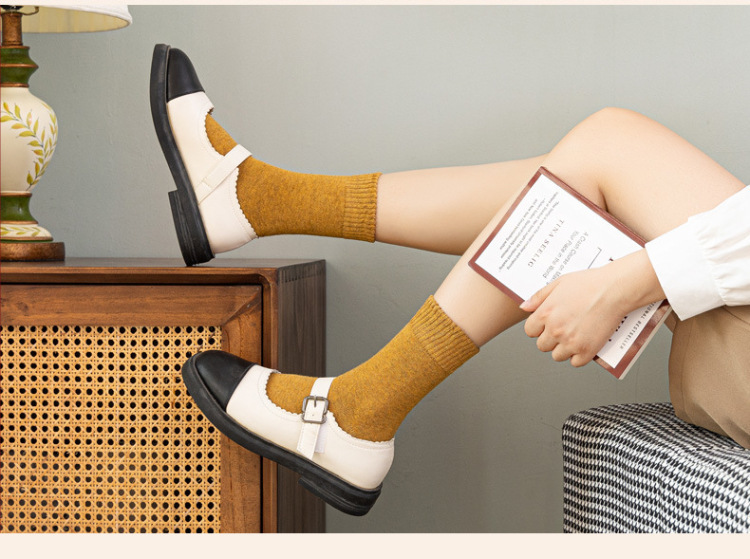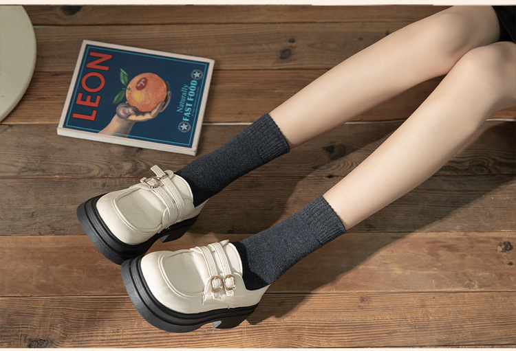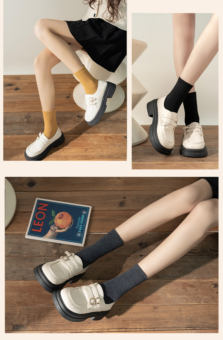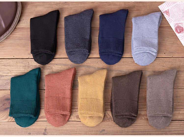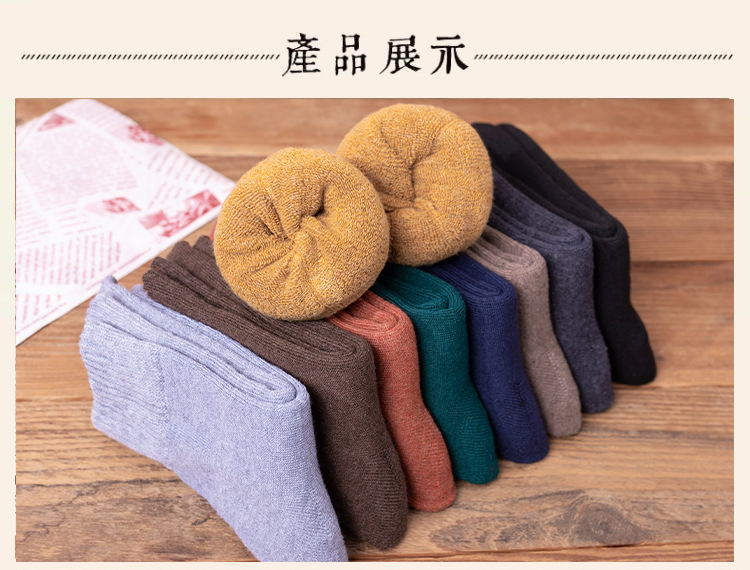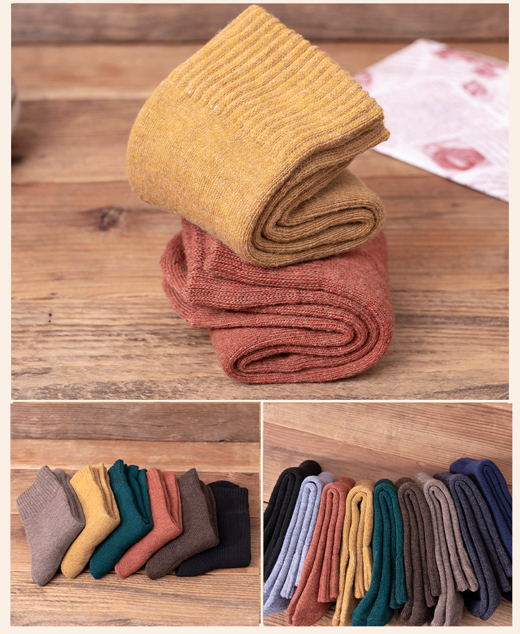 秋冬款女士中筒袜纯色ins潮流百搭长袜加厚加绒保暖毛圈袜堆堆袜