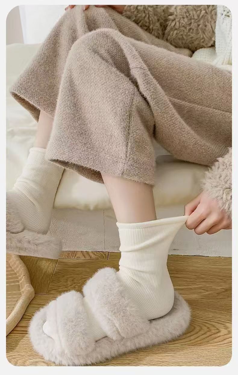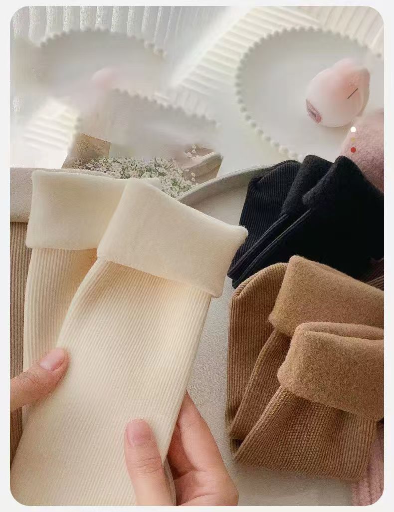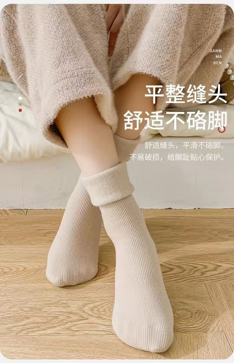 袜子女大地色雪地袜秋冬季竖条中筒袜加绒加厚保暖地板袜工厂直销