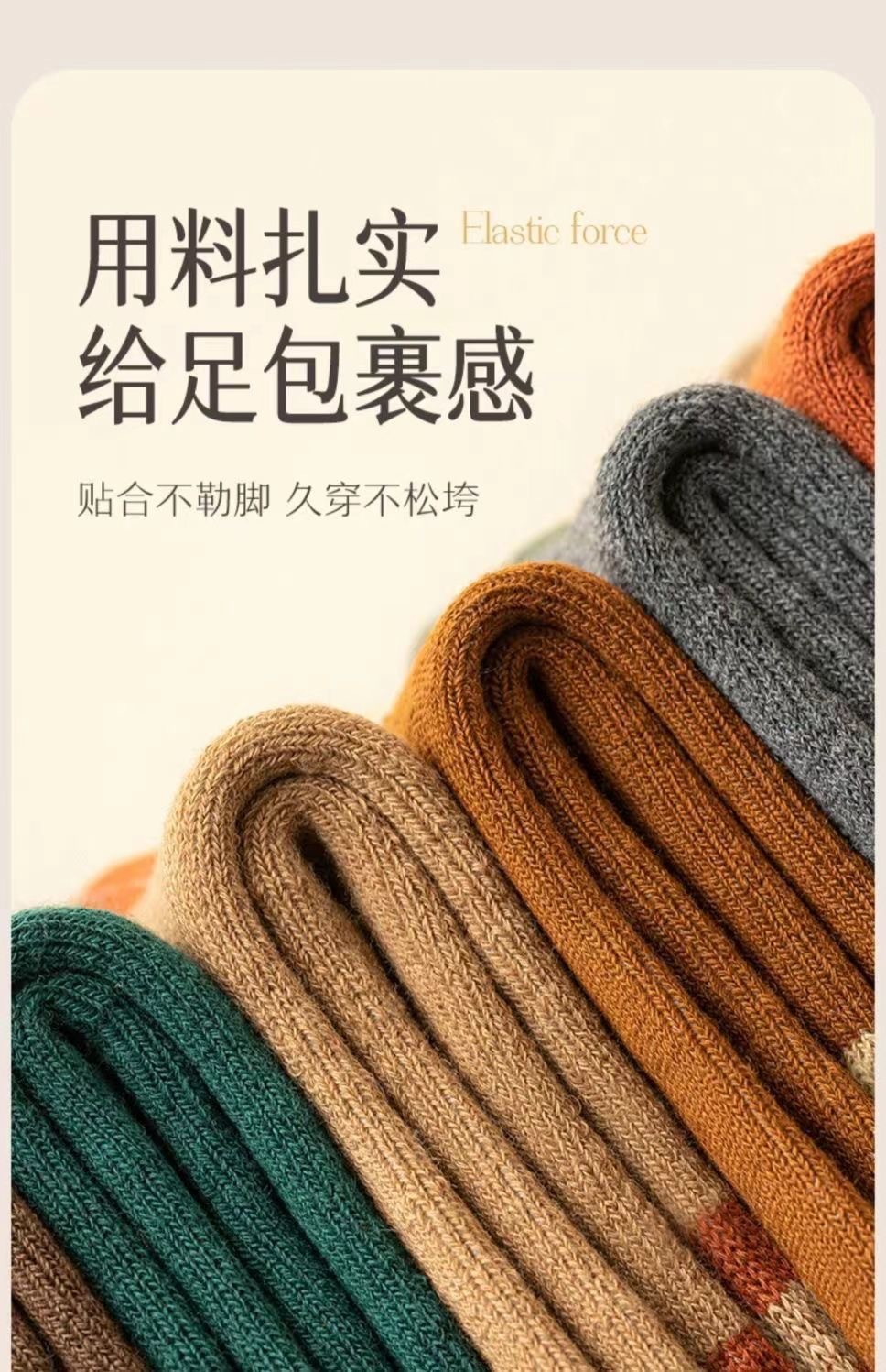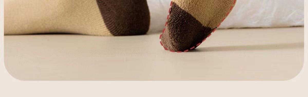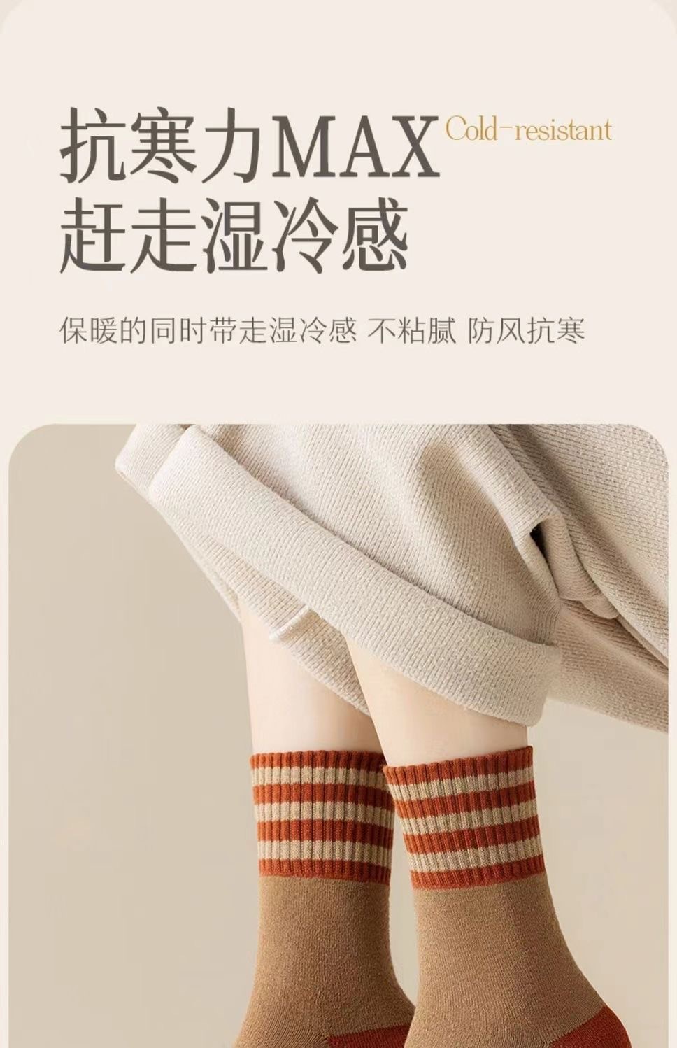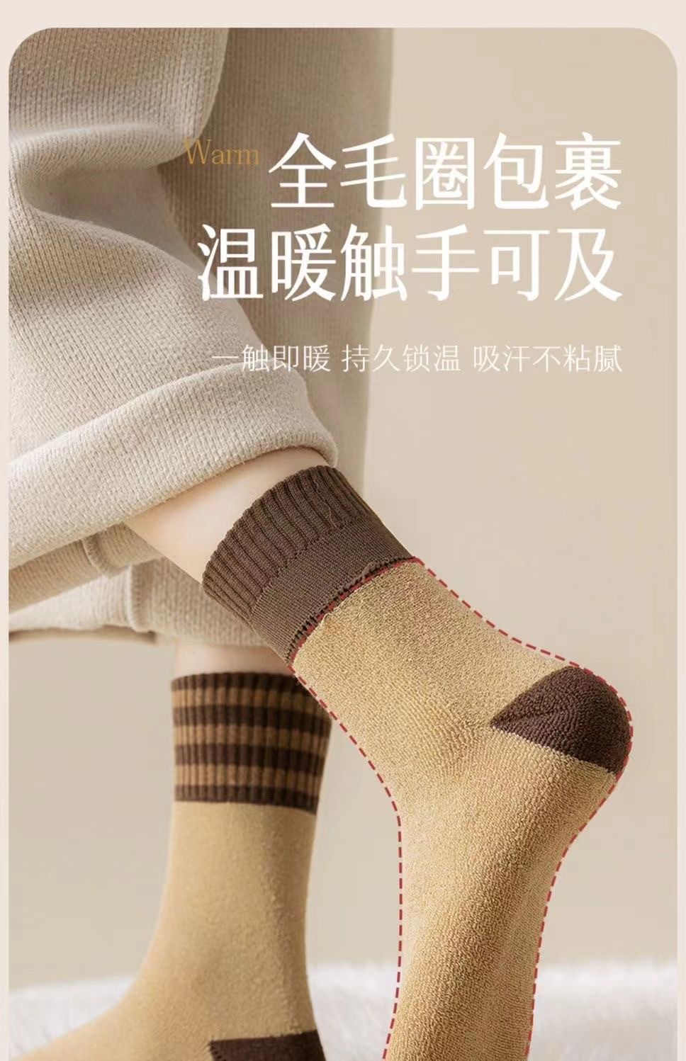 袜子女秋冬中筒袜加绒加厚保暖拼色毛巾地板袜休闲罗口横杠毛圈袜