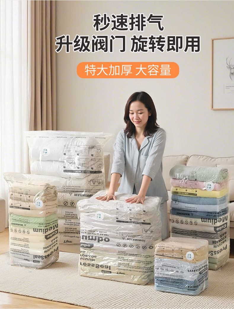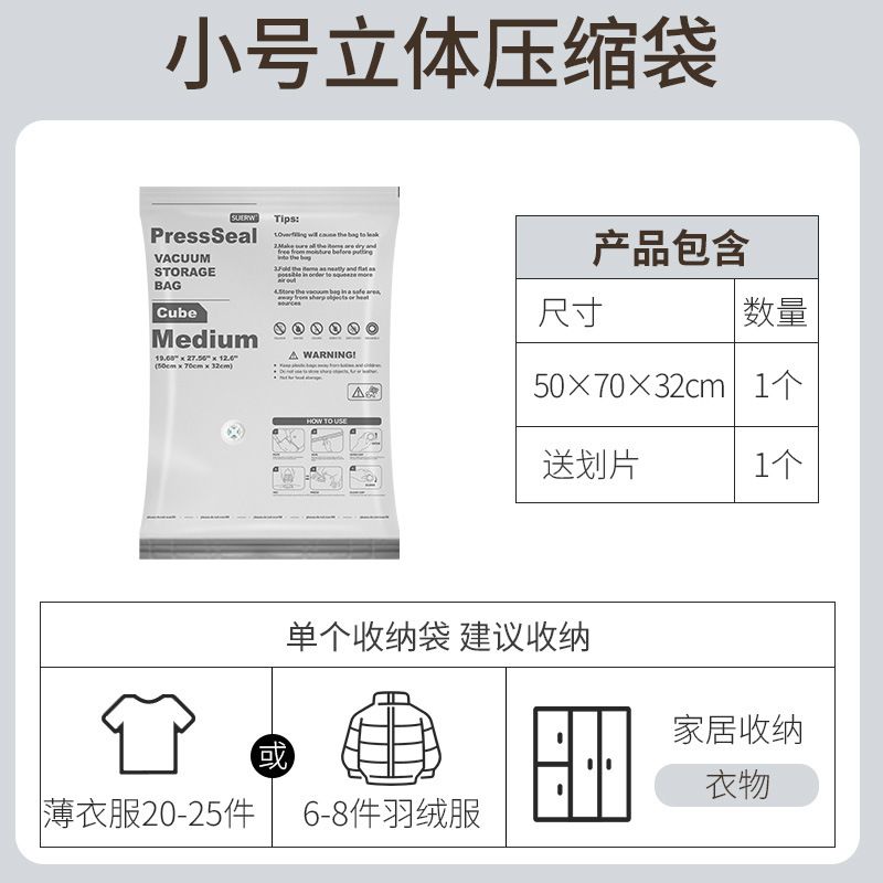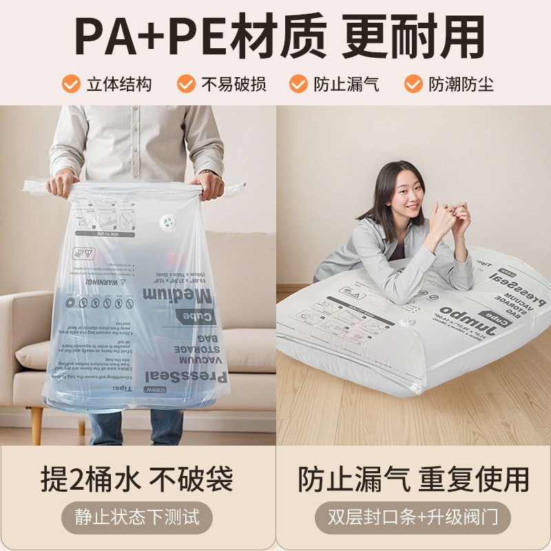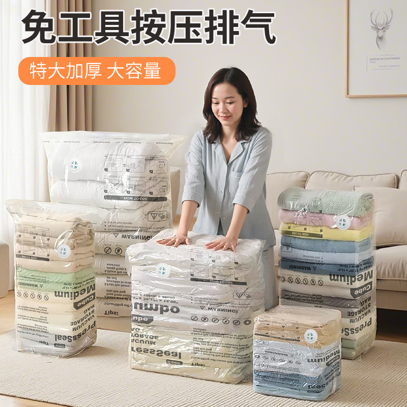 加厚立体真空压缩袋免抽气羽绒服衣服打包袋抽真空收纳袋被子专用