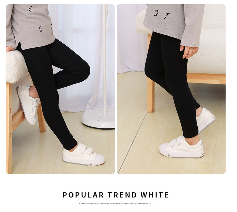 女大童打底裤春秋白色加厚纯色宝宝裤子秋款黑色纯棉儿童长裤外穿
