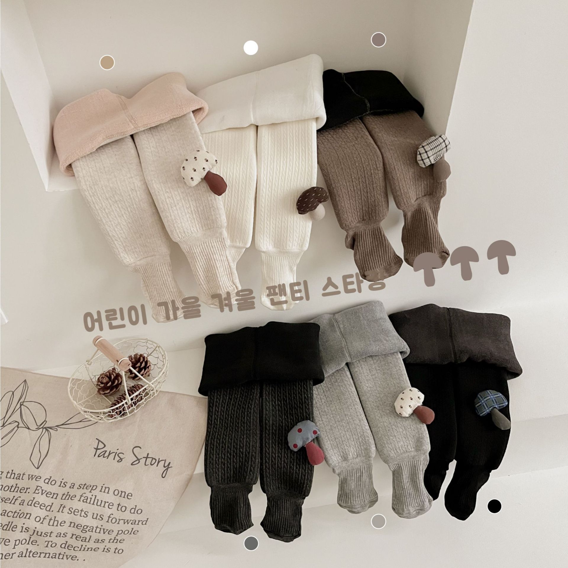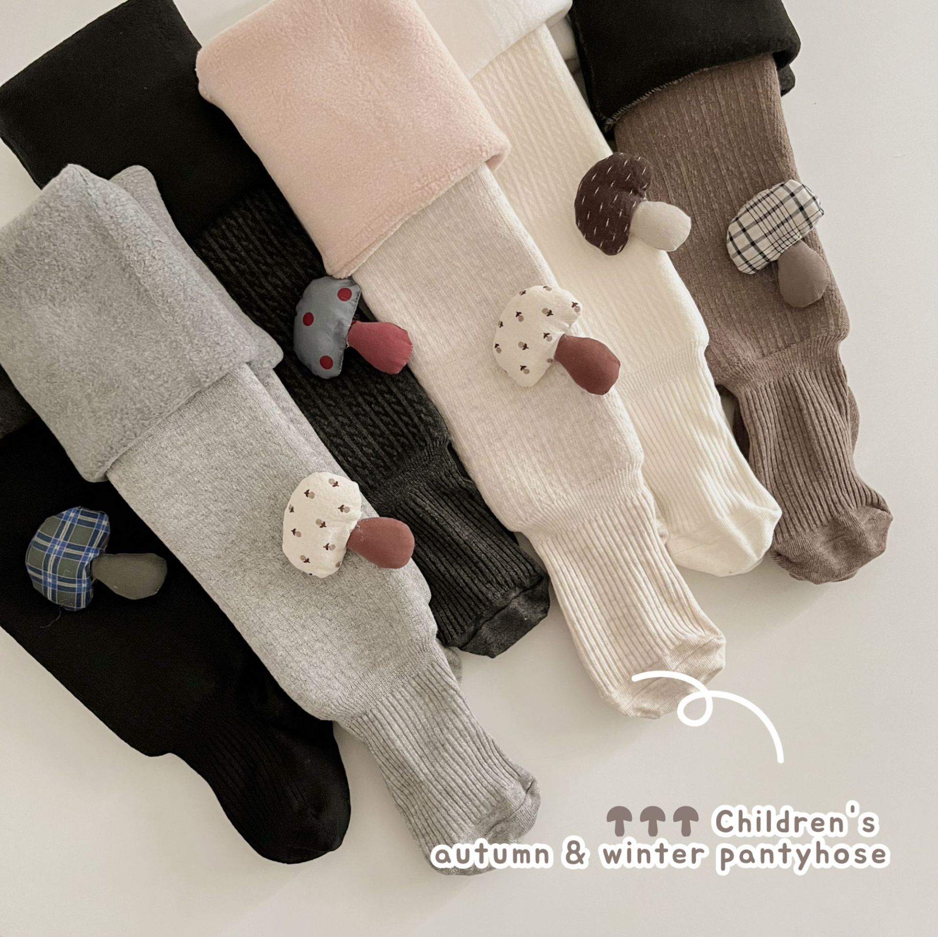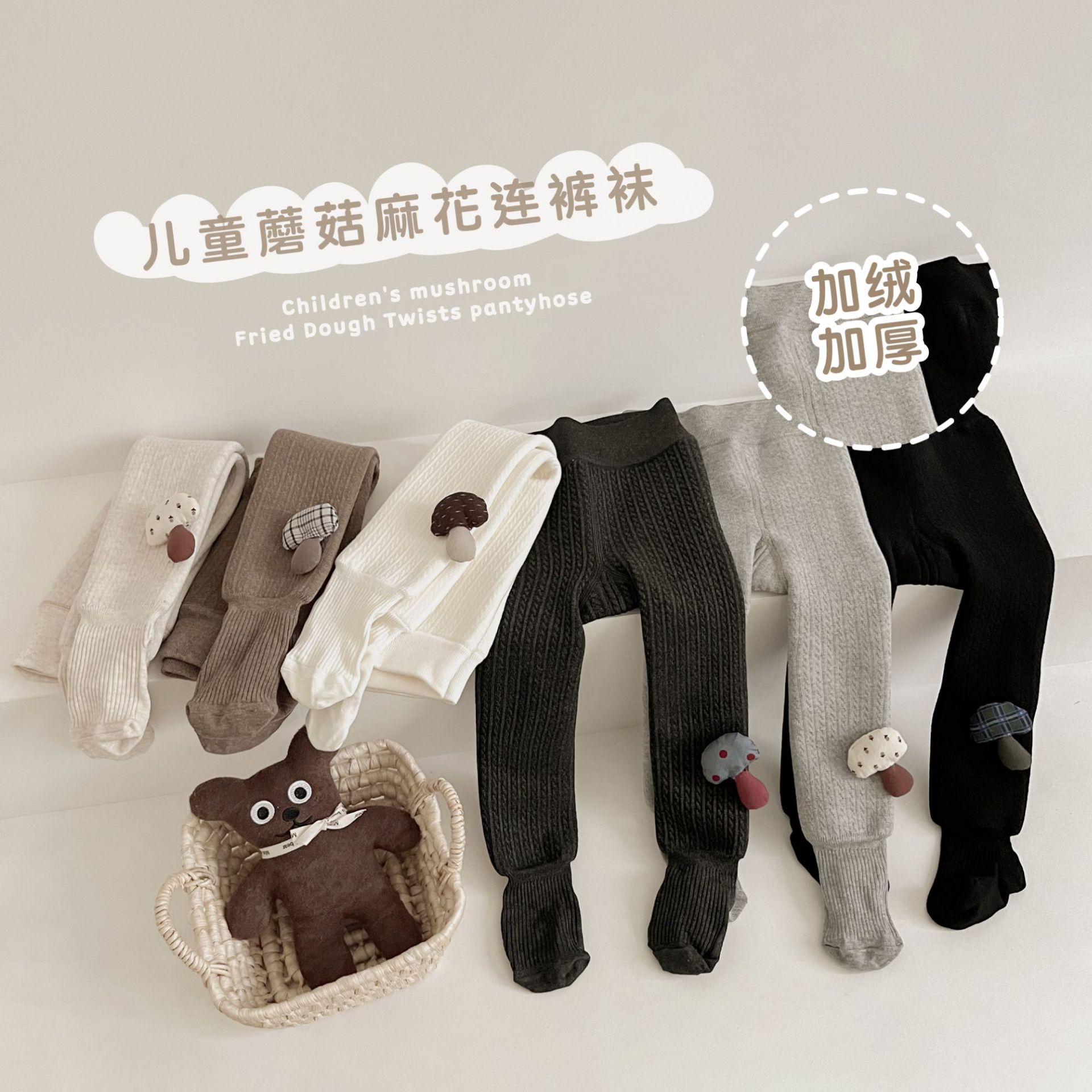 女童打底裤冬季加绒加厚韩系蘑菇儿童连裤袜宝宝婴儿保暖针织袜裤