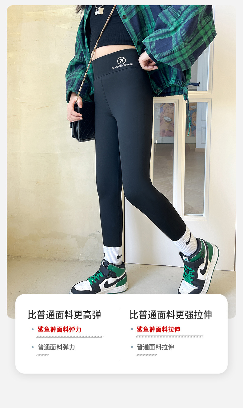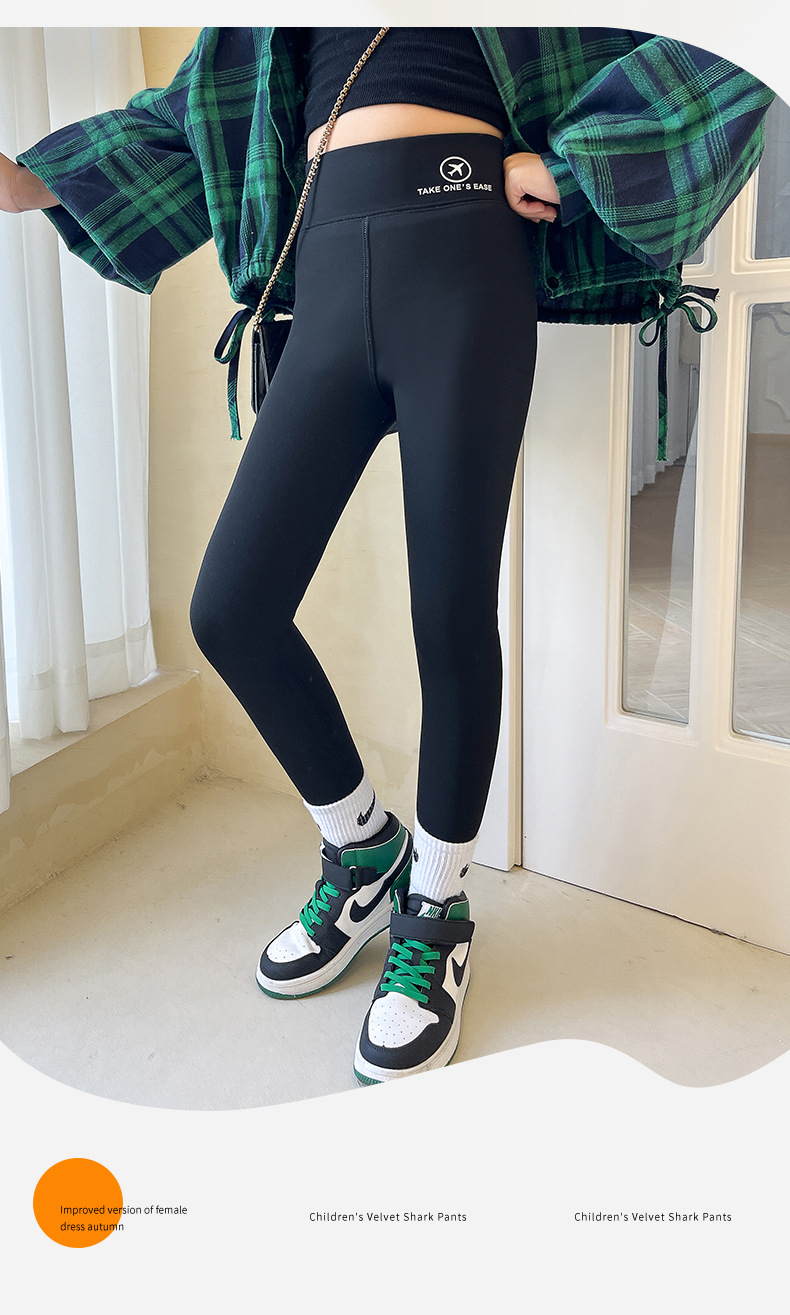 秋冬薄绒儿童鲨鱼裤女童打底裤外穿高弹修身保暖一体绒芭比裤高腰