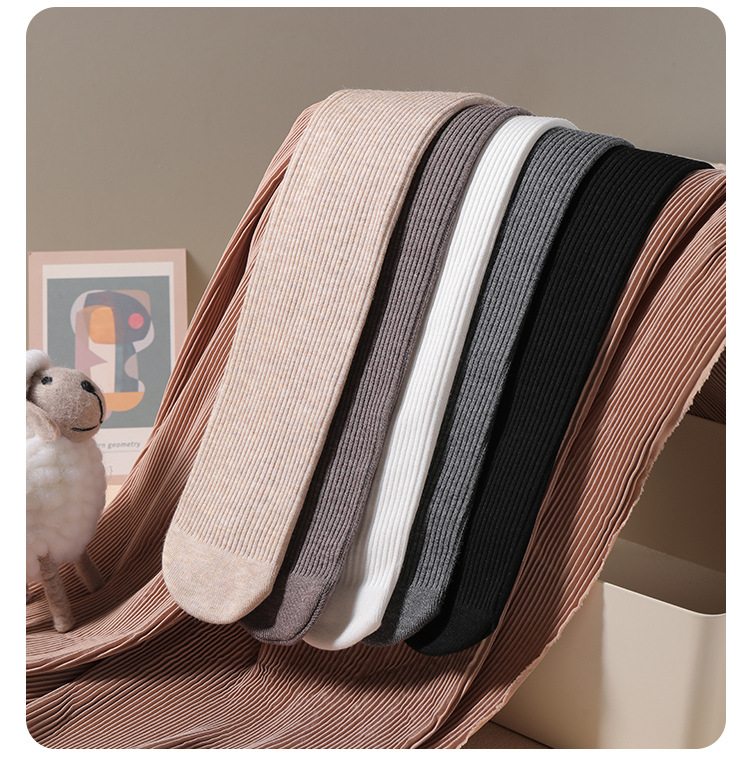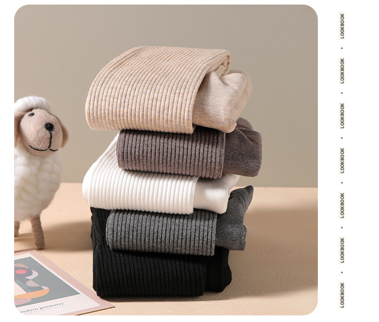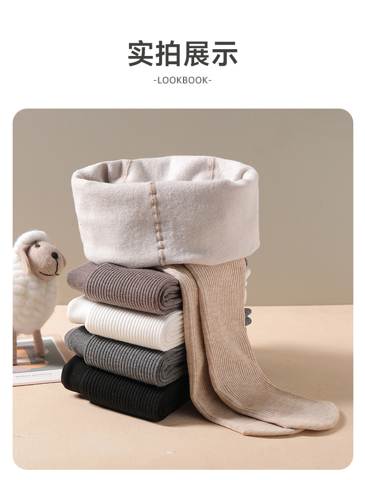 跨境秋冬新款薄绒竖条纯色女童连裤袜加绒保暖儿童打底袜裤保暖袜