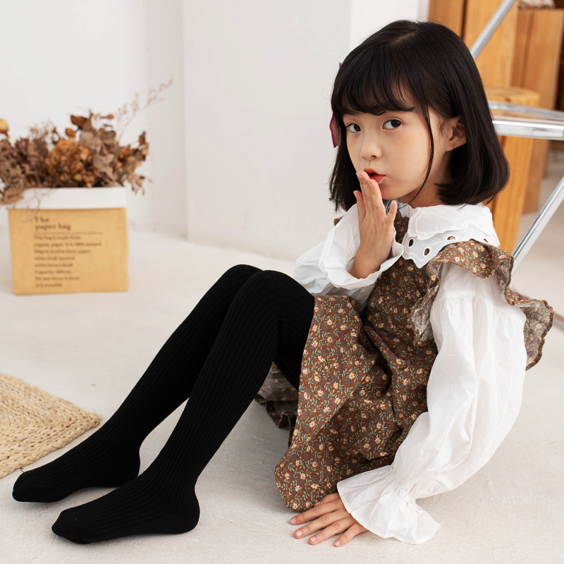 秋冬韩版女童打底裤纯色中厚宝宝磨毛加绒保暖袜竖条纹儿童连裤袜