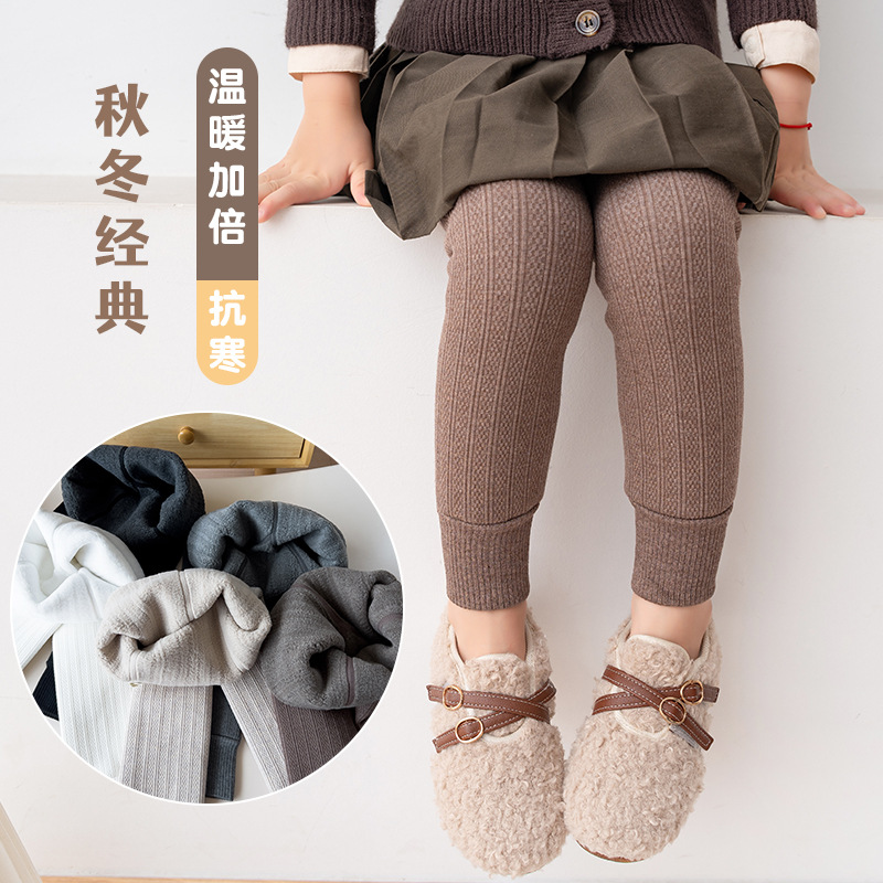 儿童打底裤加绒加厚新款秋冬竖条纹V腰阳离子护腰洋气外穿踩脚裤