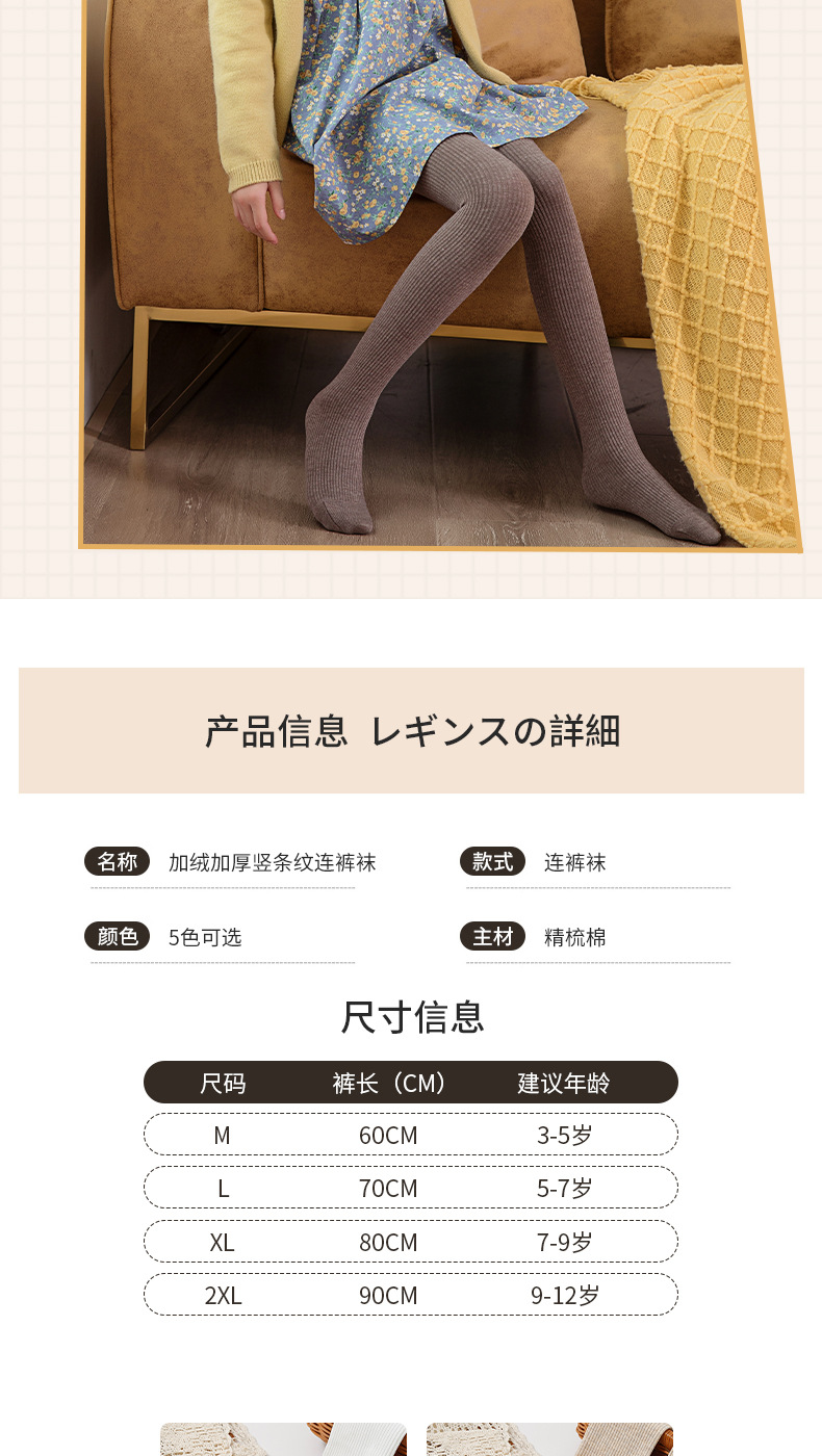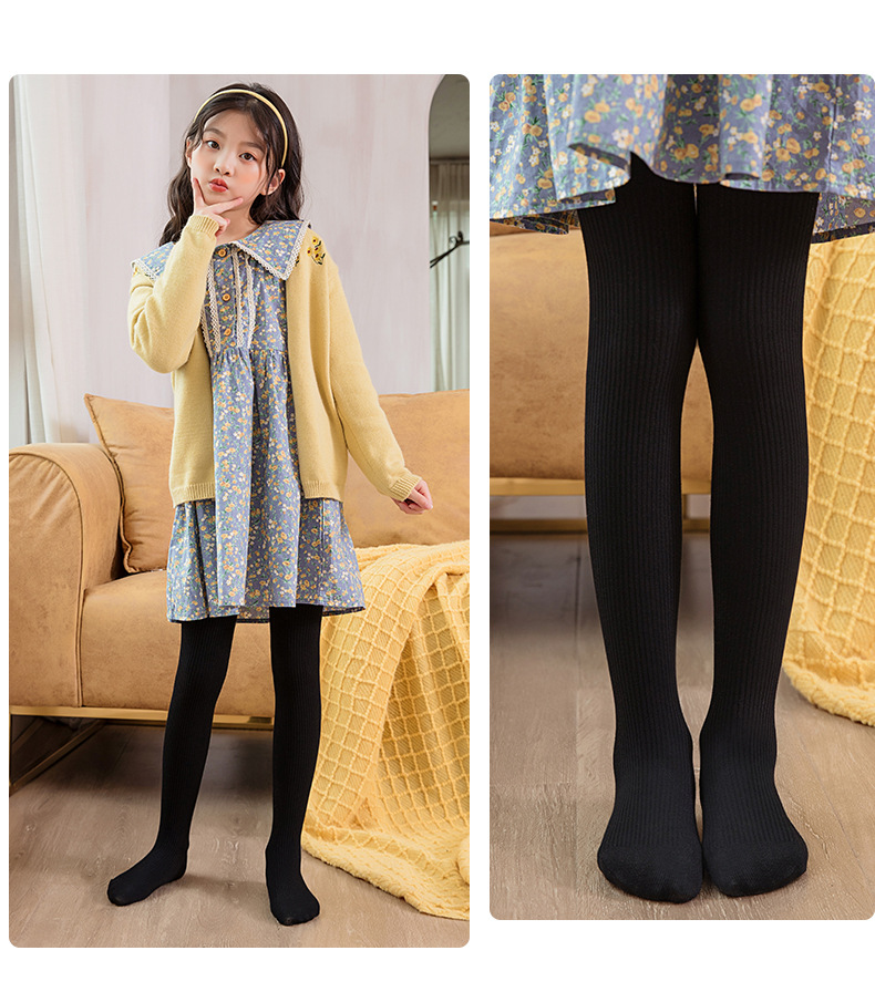 秋冬新款儿童连裤袜加绒加厚竖条女童打底裤磨毛精梳棉宝宝舞蹈袜