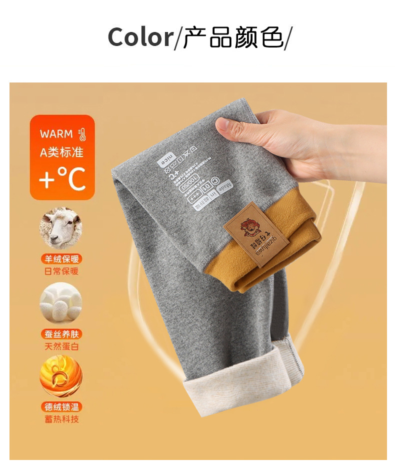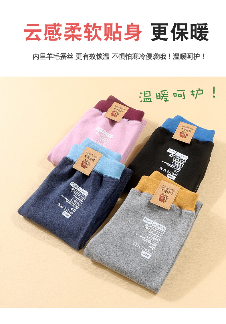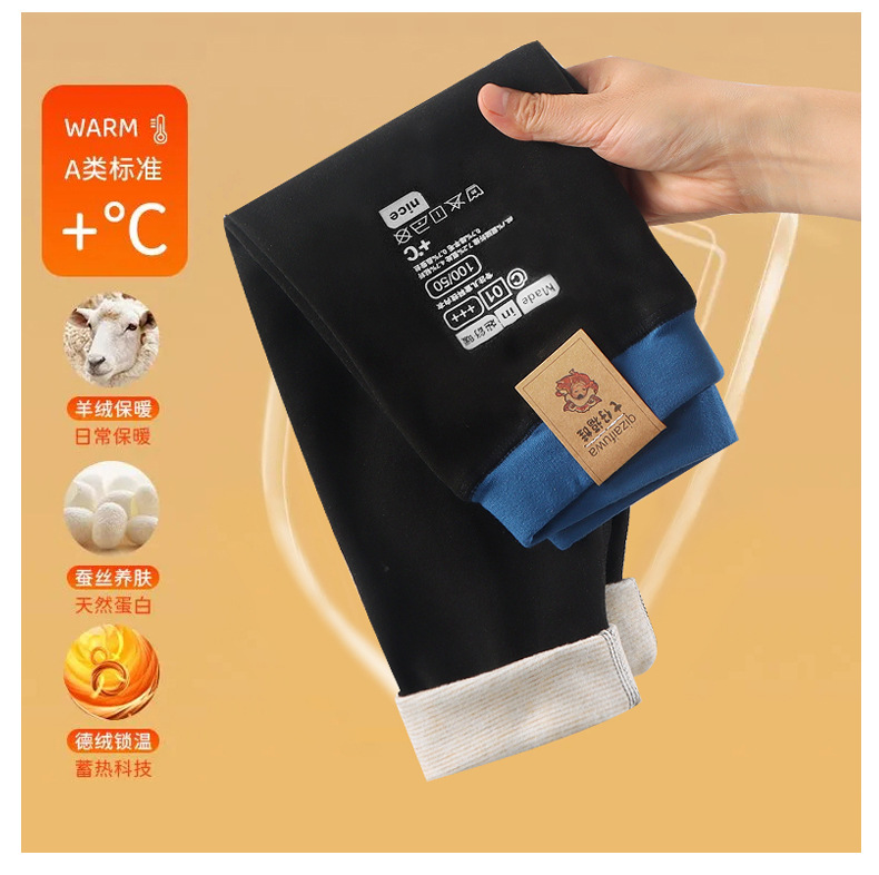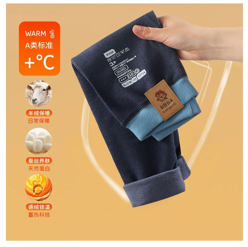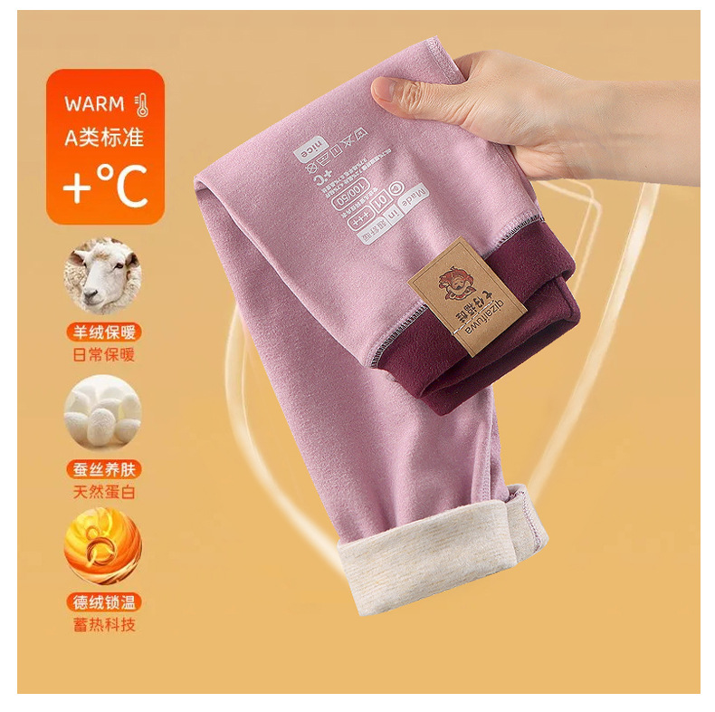 儿童打底裤男女童秋冬羊绒蚕丝德绒保暖裤子中大童无骨撞色秋裤潮