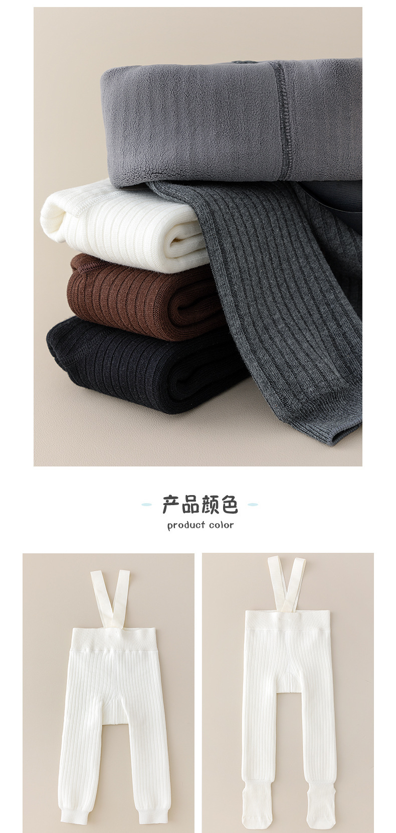 儿童摇粒绒背带打底裤冬季加厚宝宝打底裤保暖裤男童女童棉毛裤