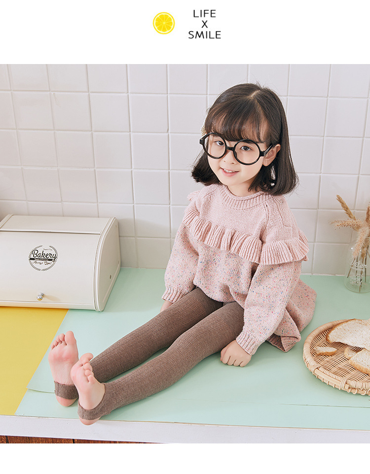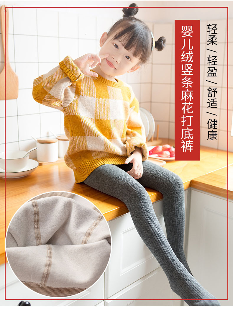 春秋薄绒女童打底裤麻花纹宝宝袜白色踩脚舞蹈袜儿童保暖连裤袜