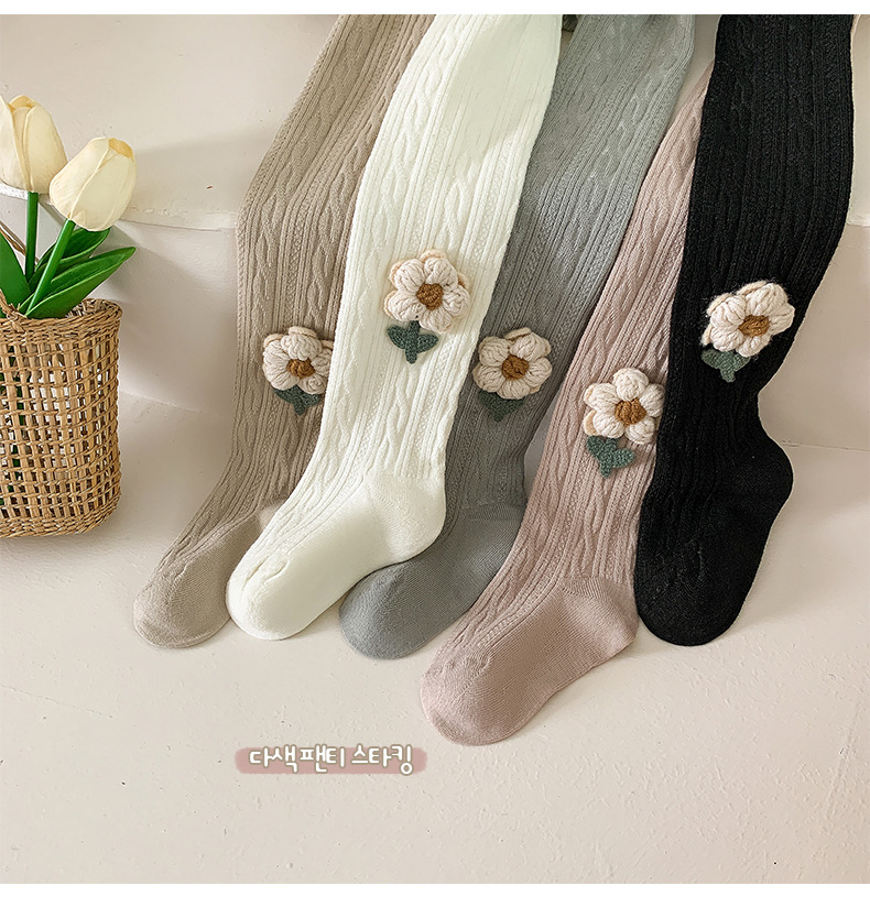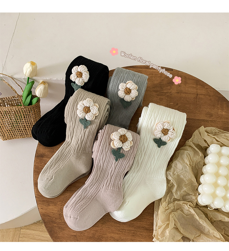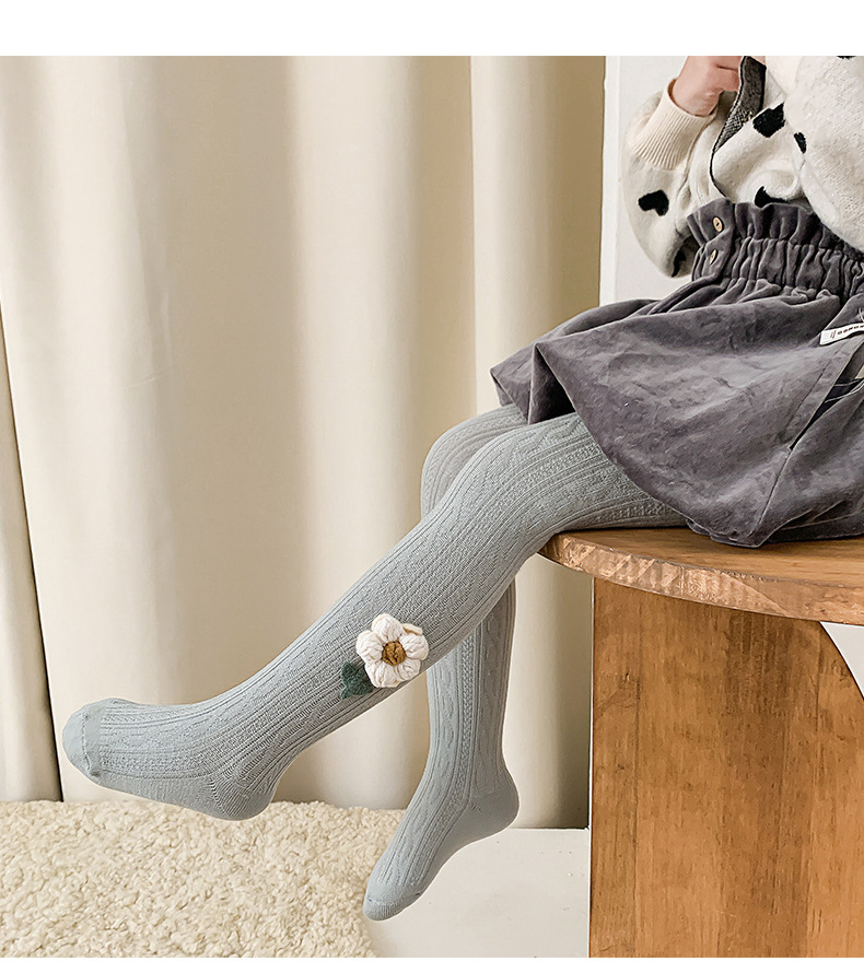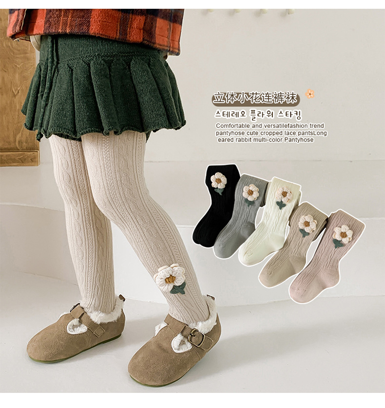 薄绒儿童小花配饰保暖连裤袜棉加厚磨毛女童打底裤袜宝宝婴儿袜子